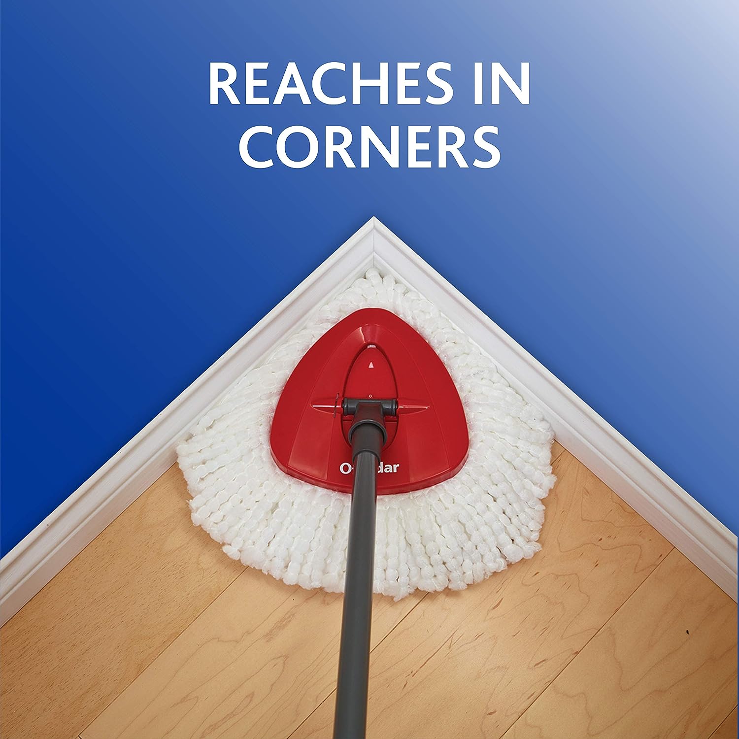 • REACHES IN CORNERS: Due to the patented triangle mop-head and ability to rotate 360 degrees, the EasyWring Mop can reach and clean deep into corners, under furniture, alongside baseboards, and between tile.