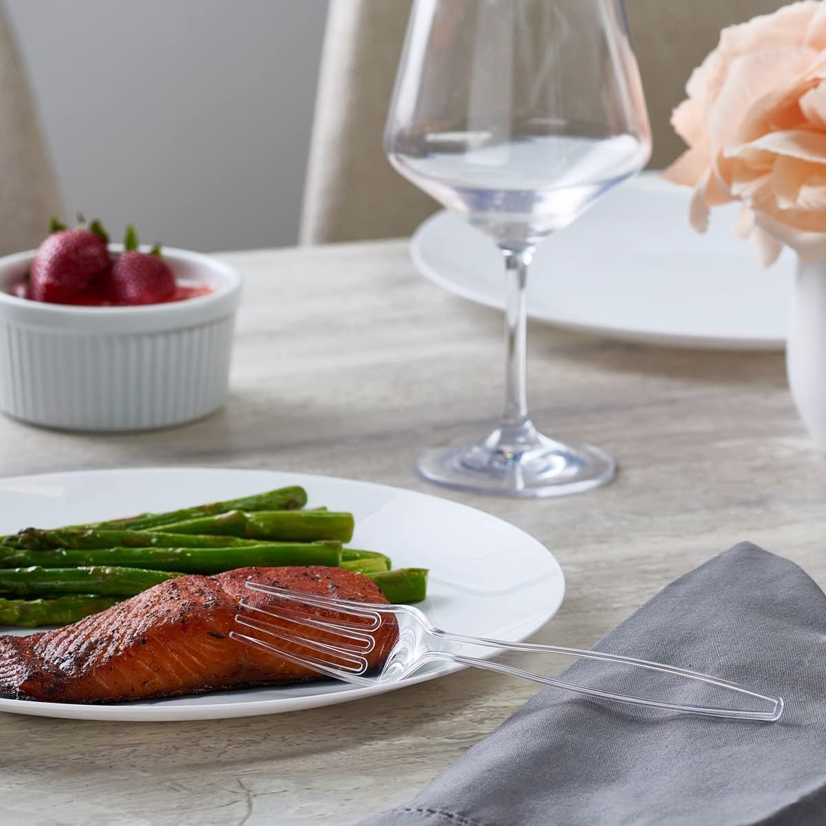 - Clear Plastic Forks - 100 count pack of heavyweight clear plastic forks that serve you better. Serving, portioning, measuring- events, dinner or a casual brunch- meet the ever versatile spoon.
