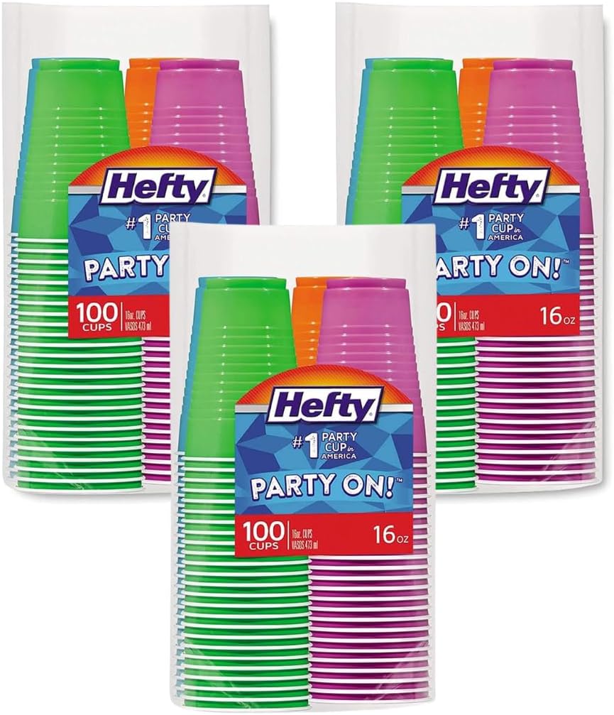 - ASSORTED PARTY CUPS: This package includes 100 count 16 ounce Hefty Party on disposable cups in assorted colors.