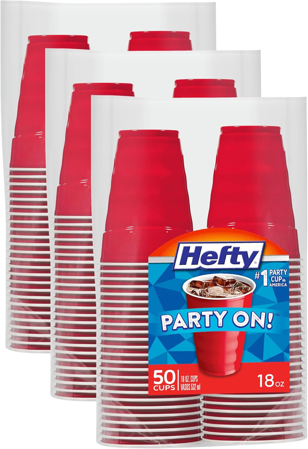 - RED PARTY CUPS—This package includes 50 count 18 ounce Hefty Party On! disposable cups in red