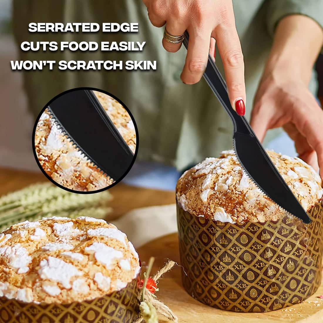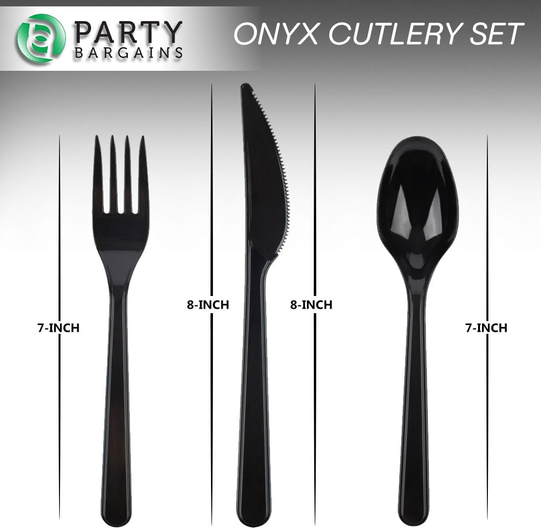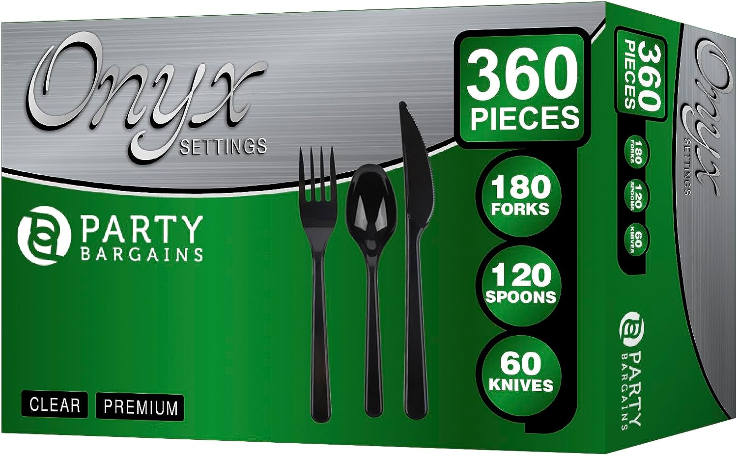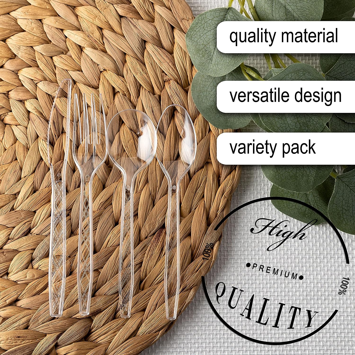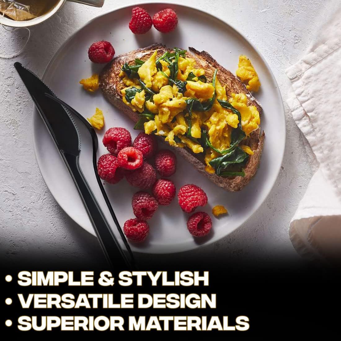 • ✅DURABLE: Heavy duty plasticware. Knives slice without breaking, strong forks spear food, spoons for hot or cold liquids.