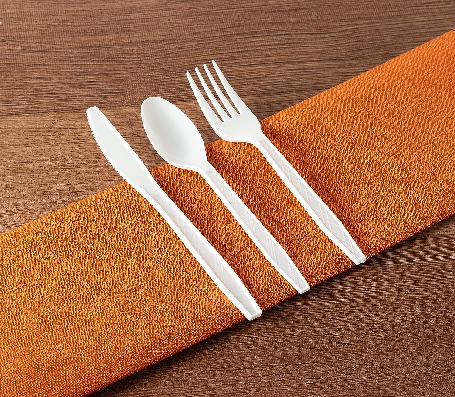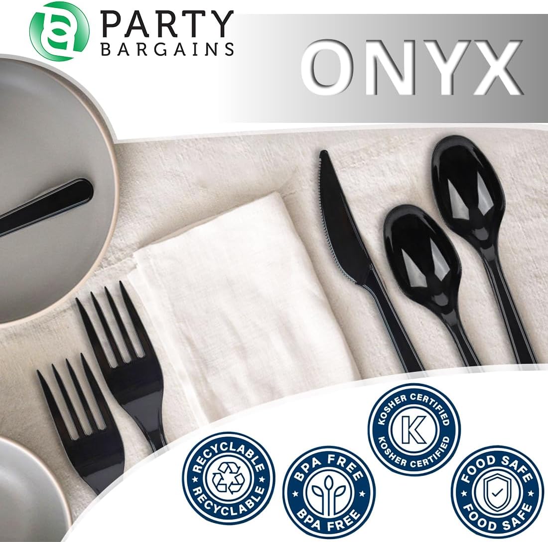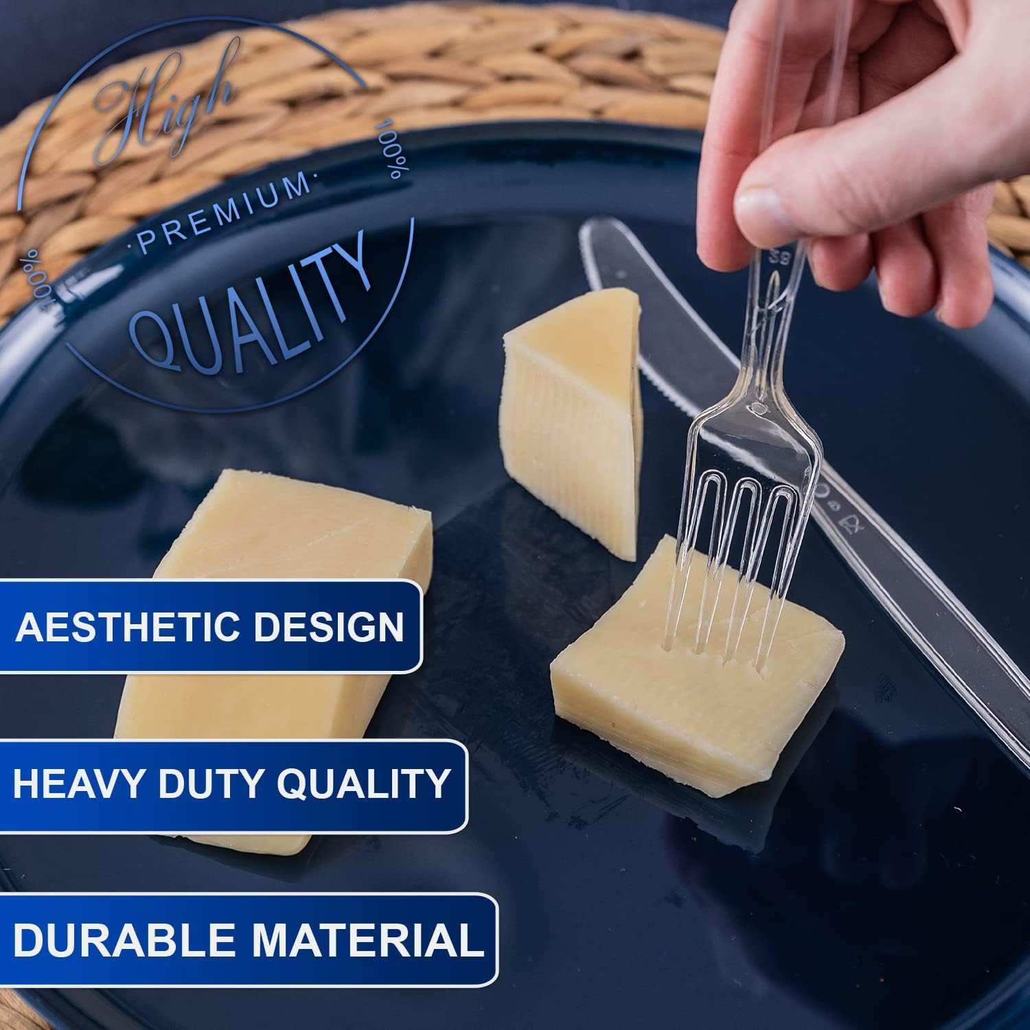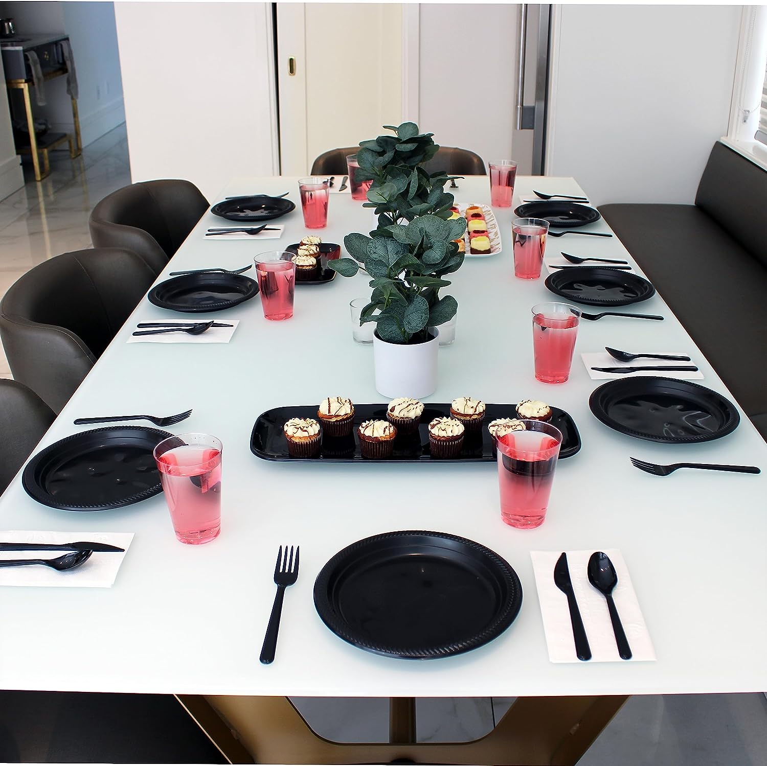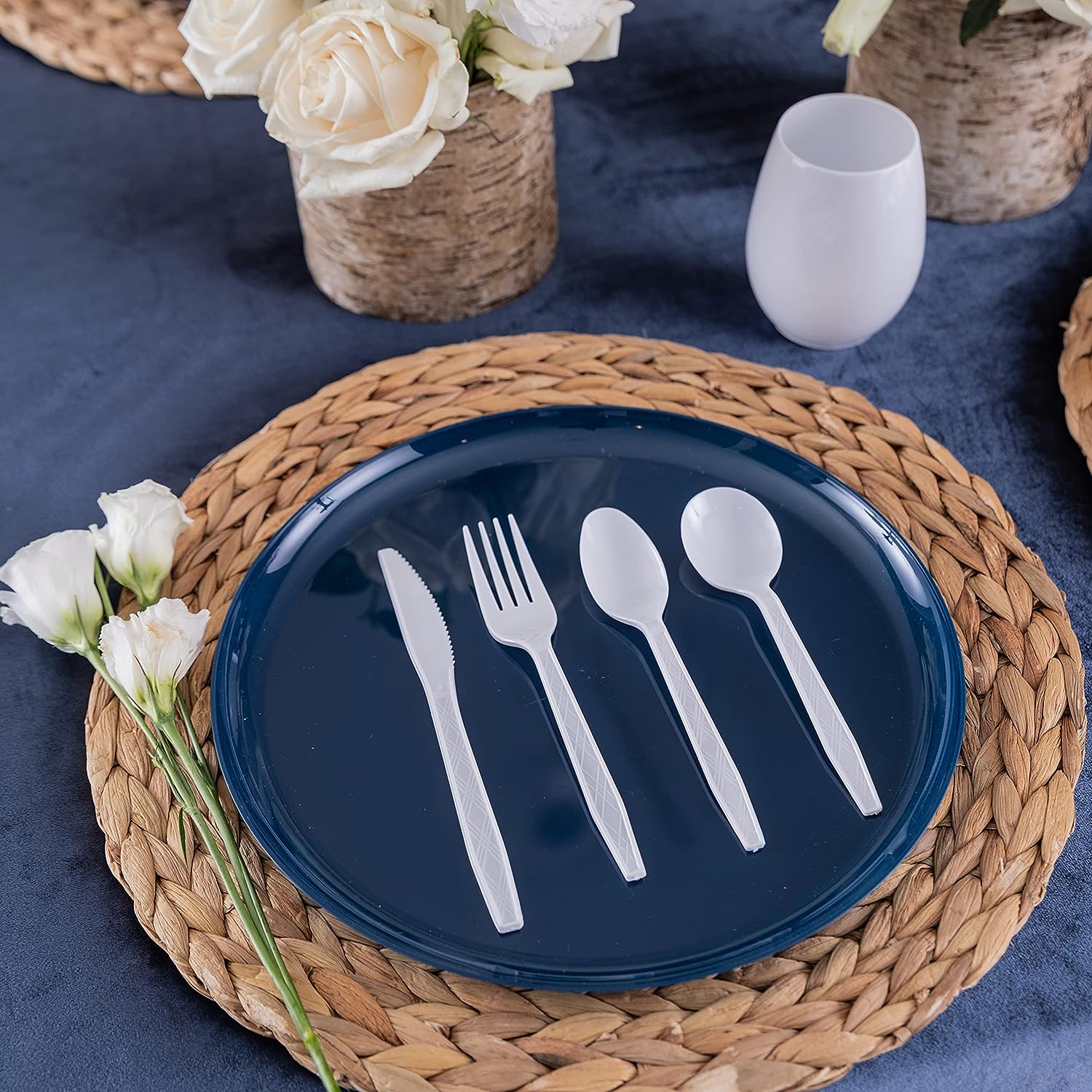 • ✅DURABLE: Heavy duty plasticware. Knives slice without breaking, strong forks spear food, spoons for hot or cold liquids.