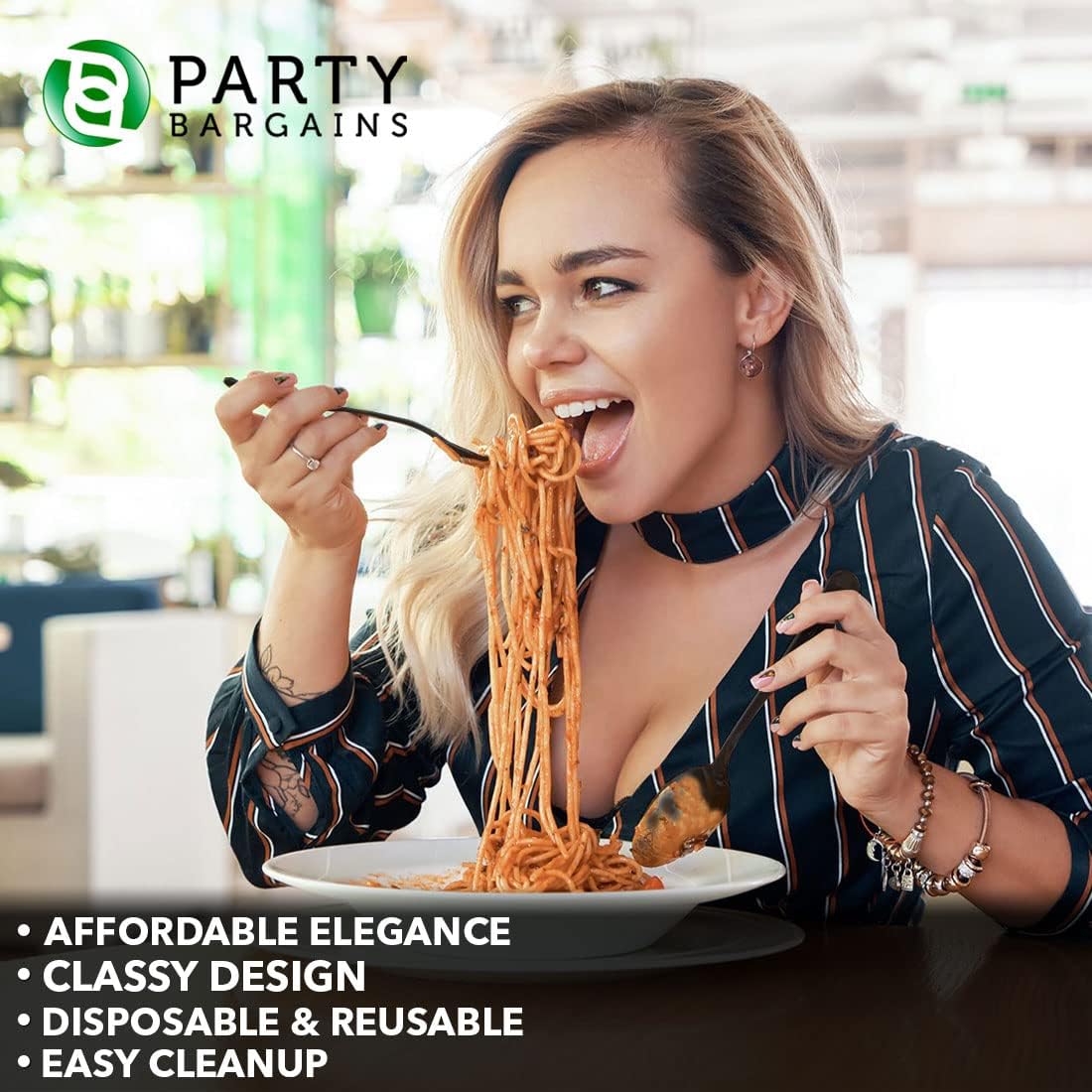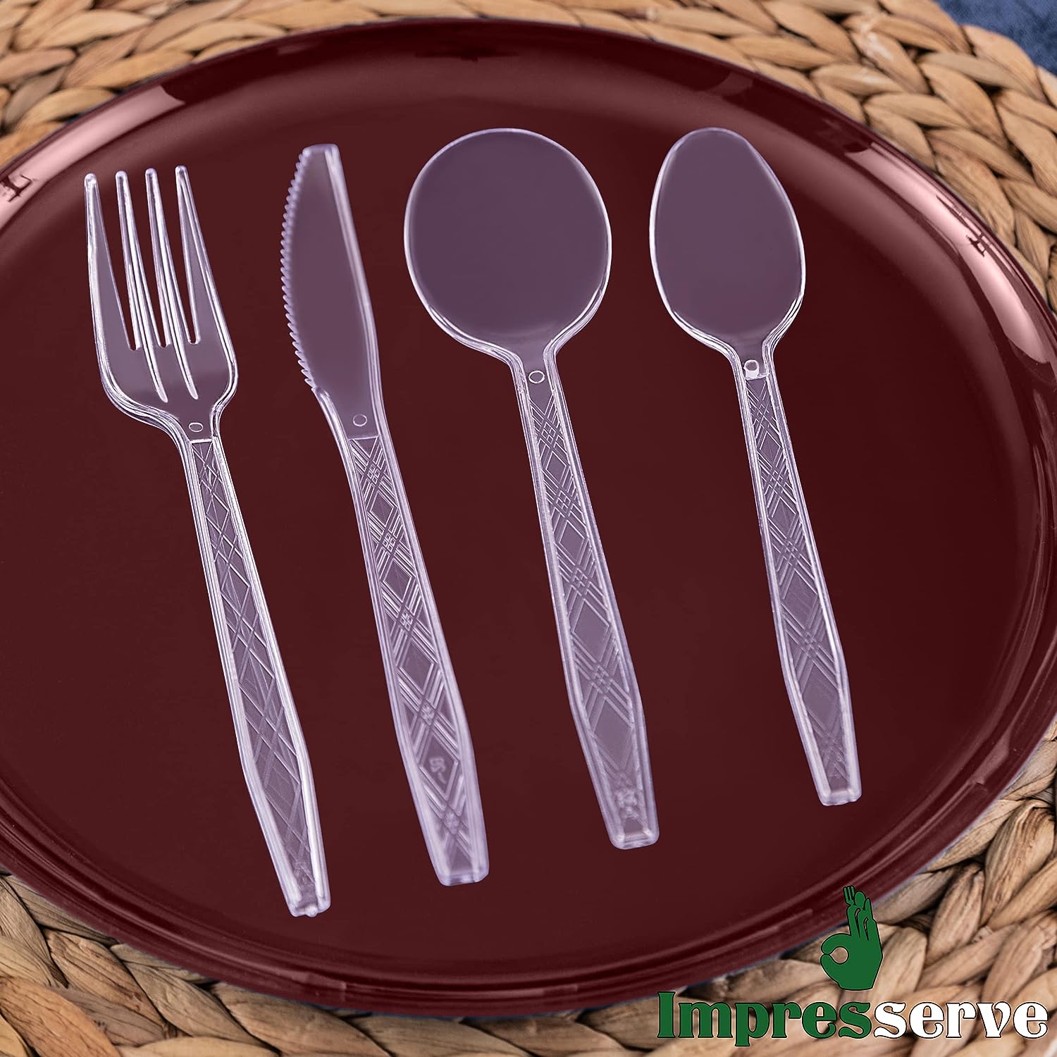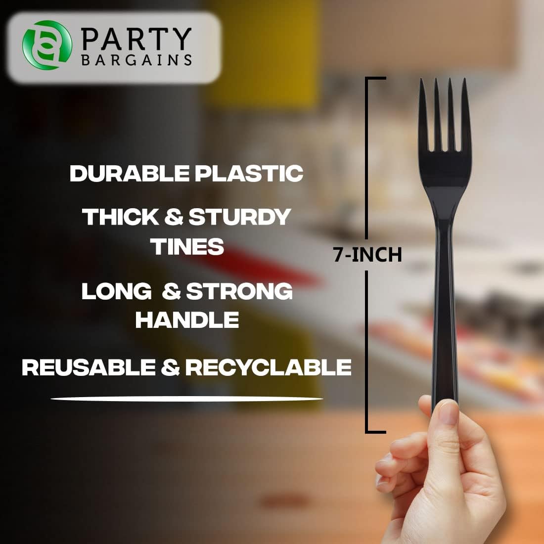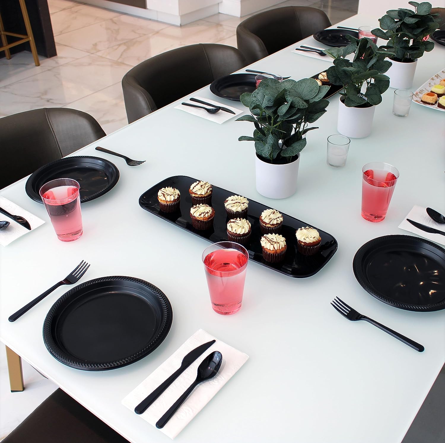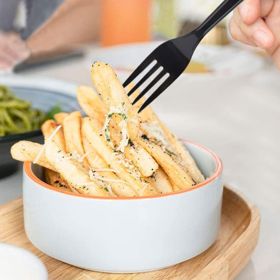 • ✅DURABLE: Heavy duty plasticware. Knives slice without breaking, strong forks spear food, spoons for hot or cold liquids.