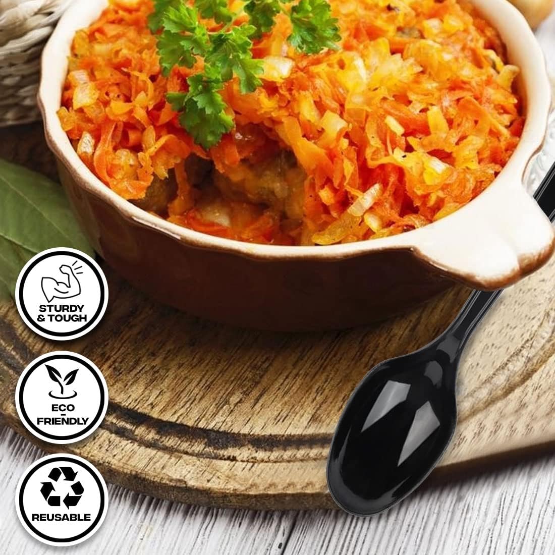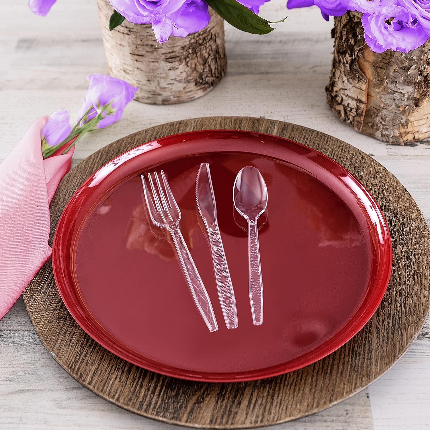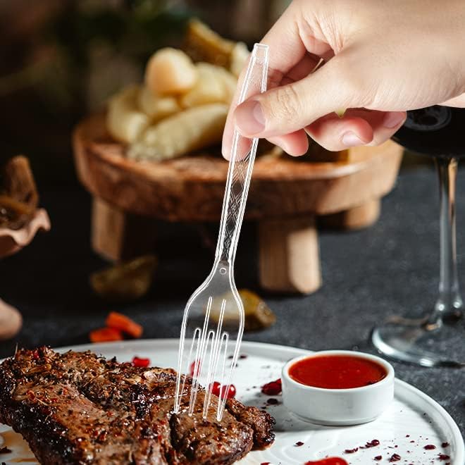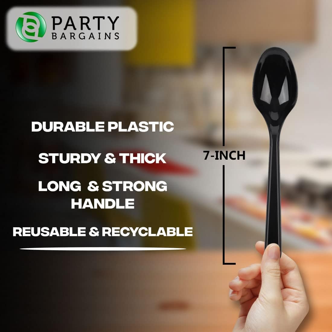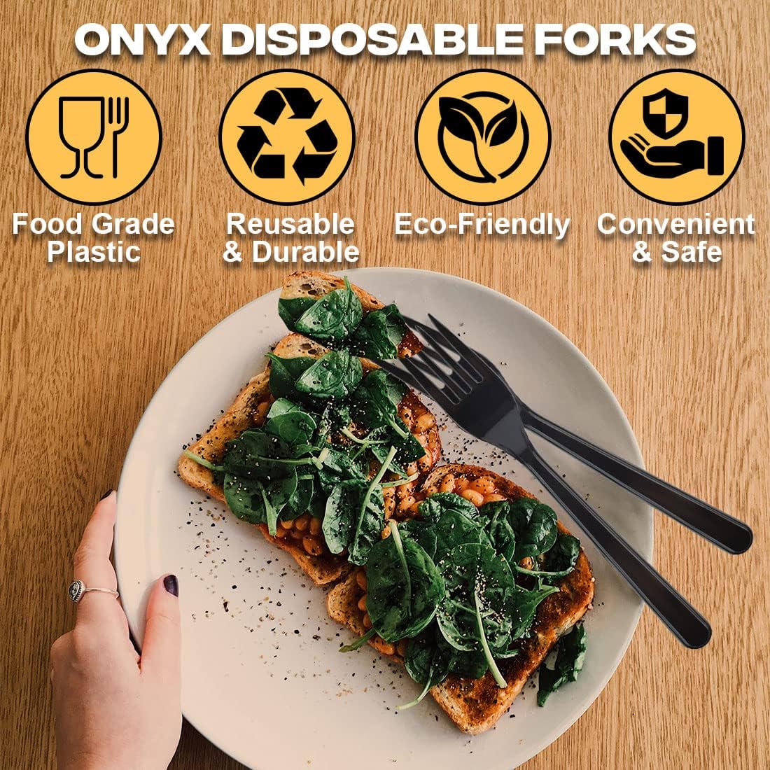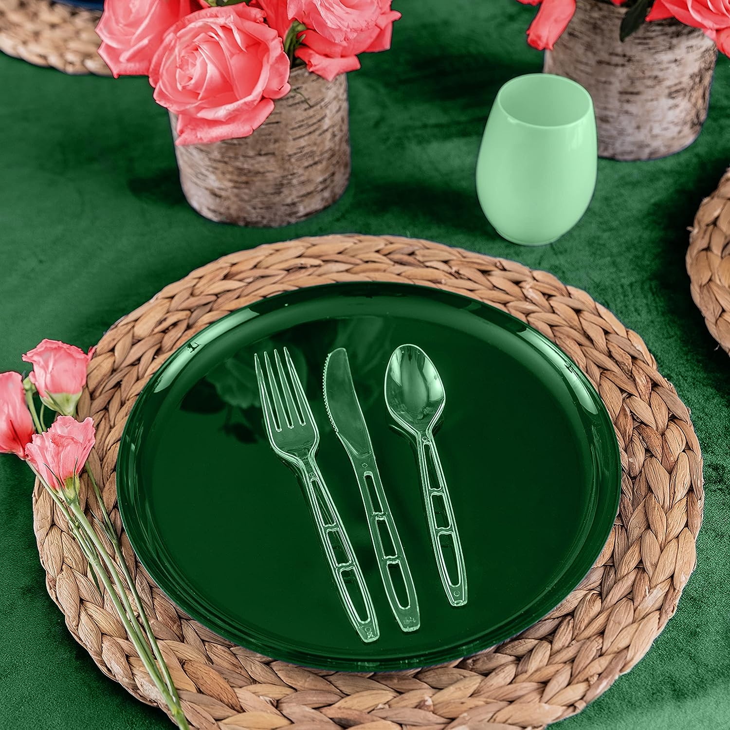 • ✅DURABLE: Heavy duty plasticware. Knives slice without breaking, strong forks spear food, spoons for hot or cold liquids.