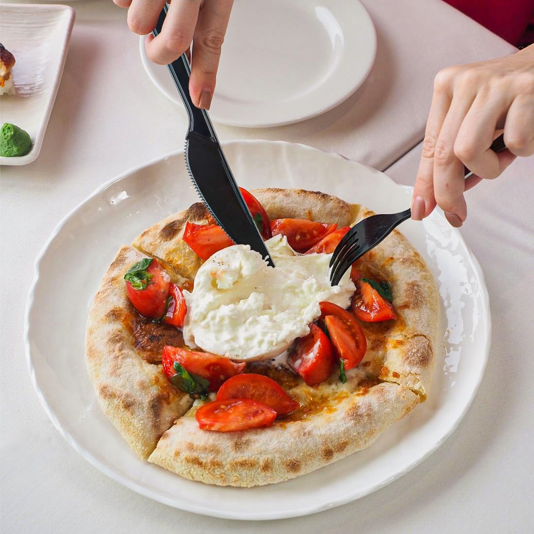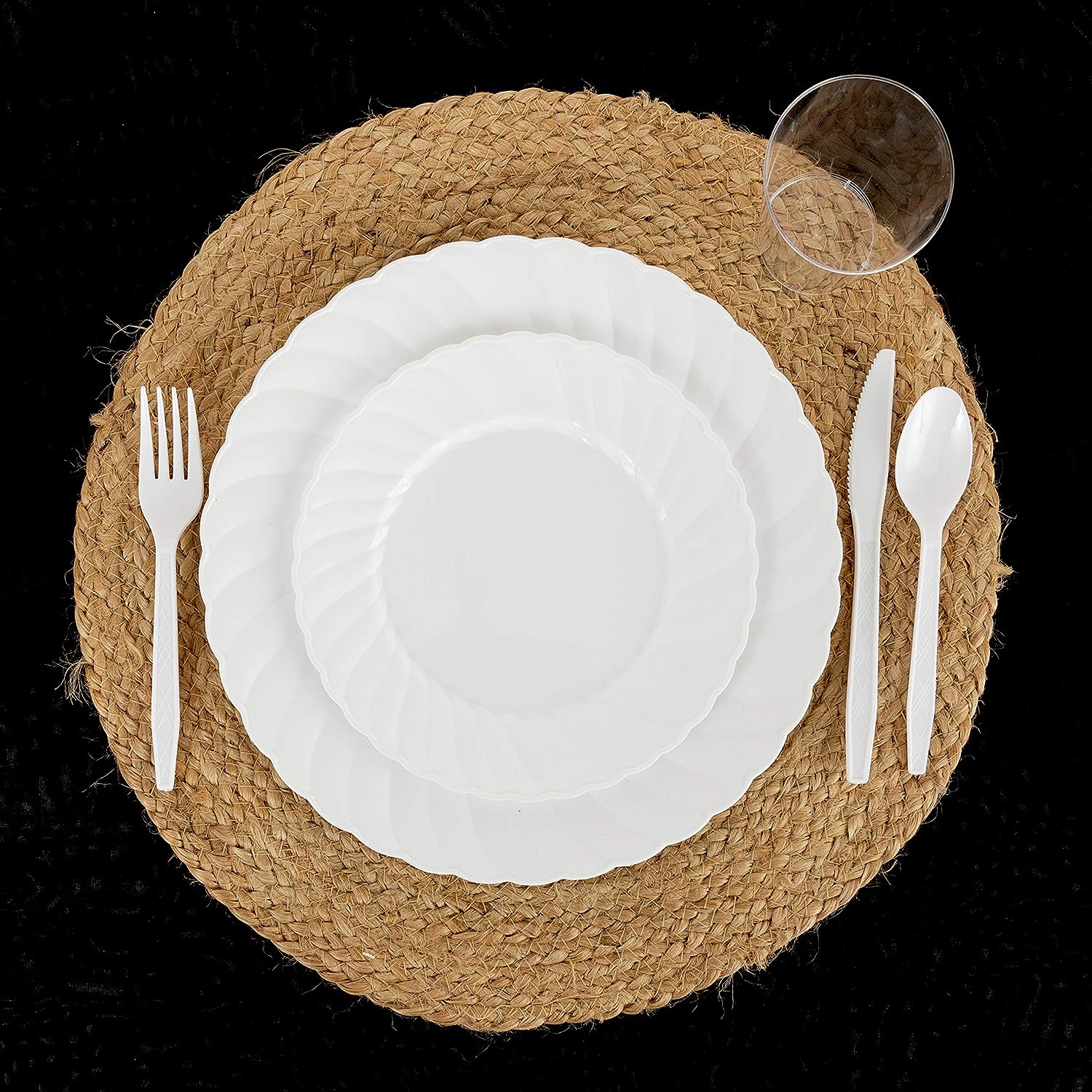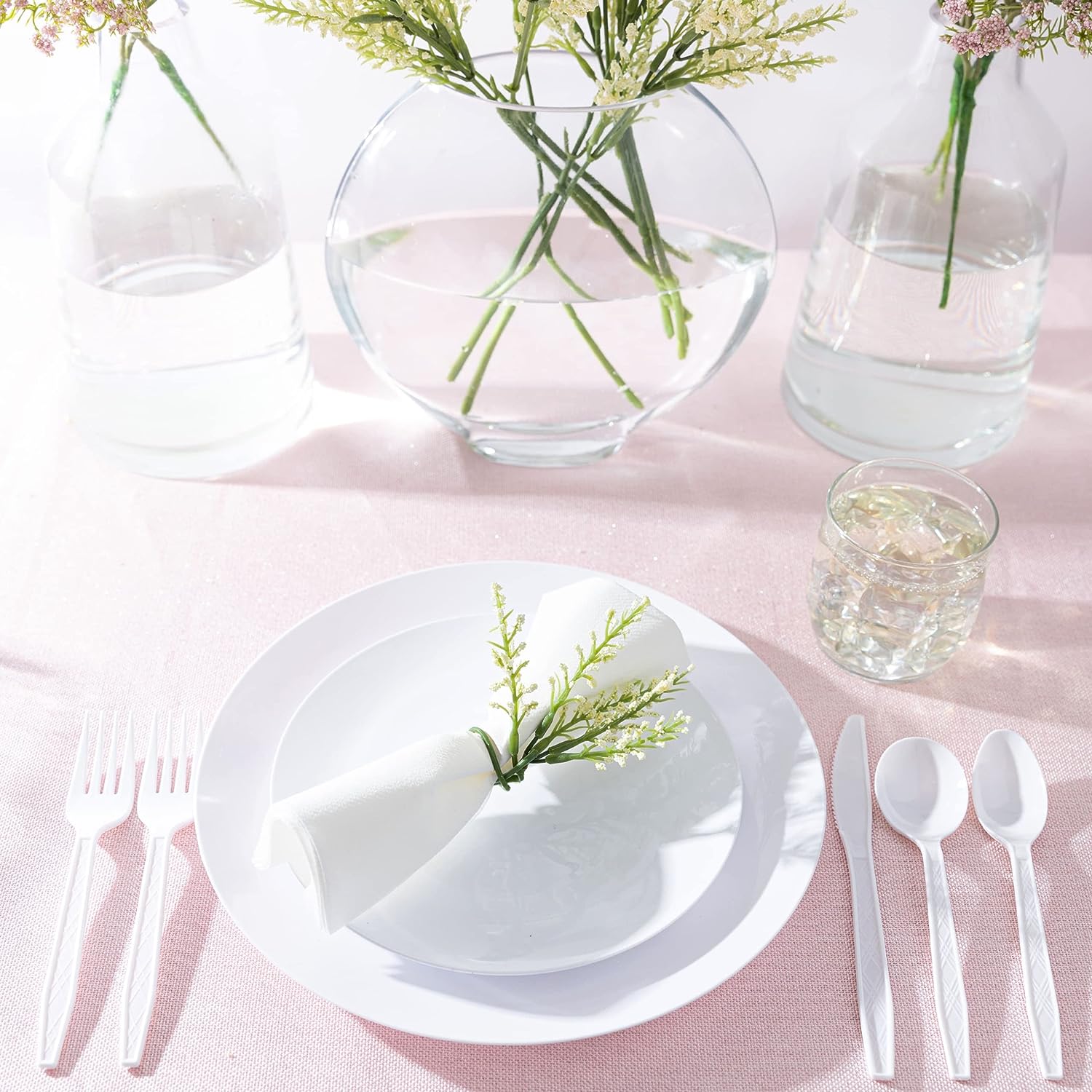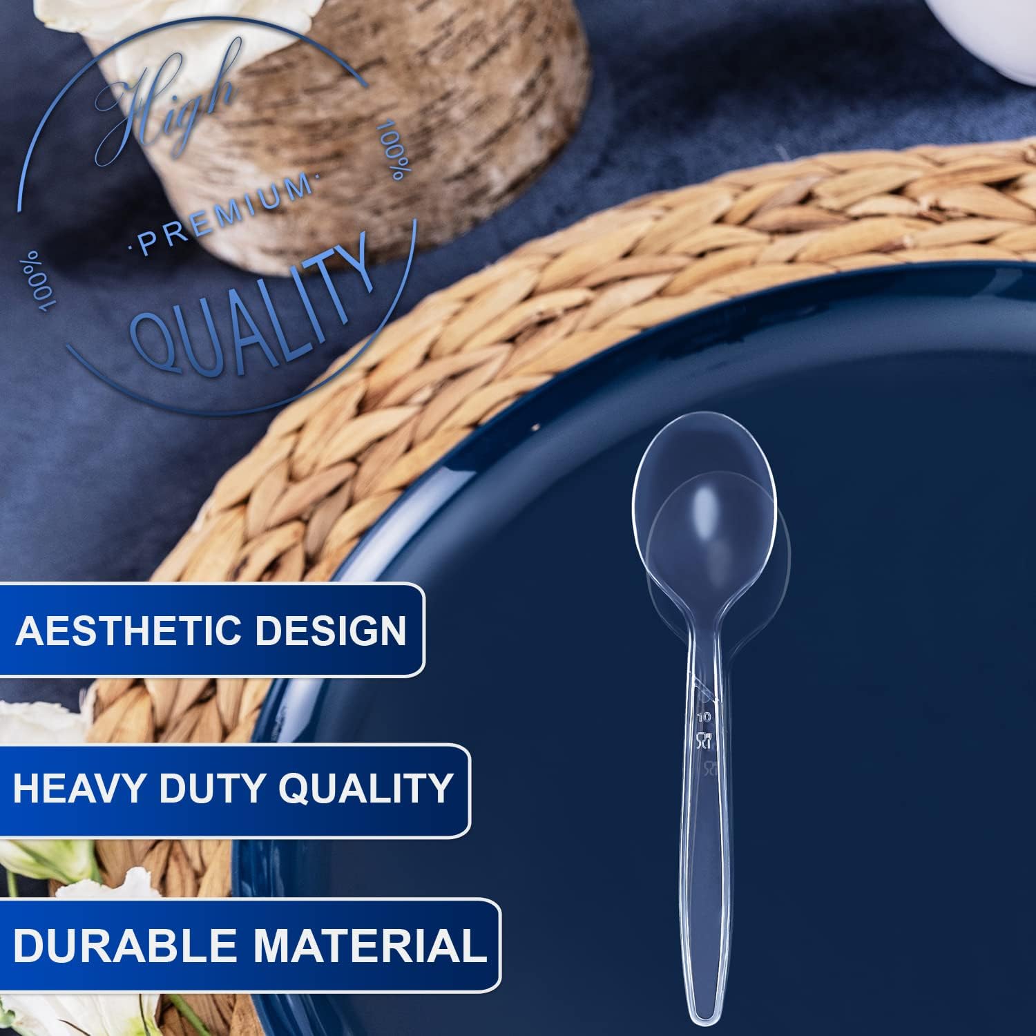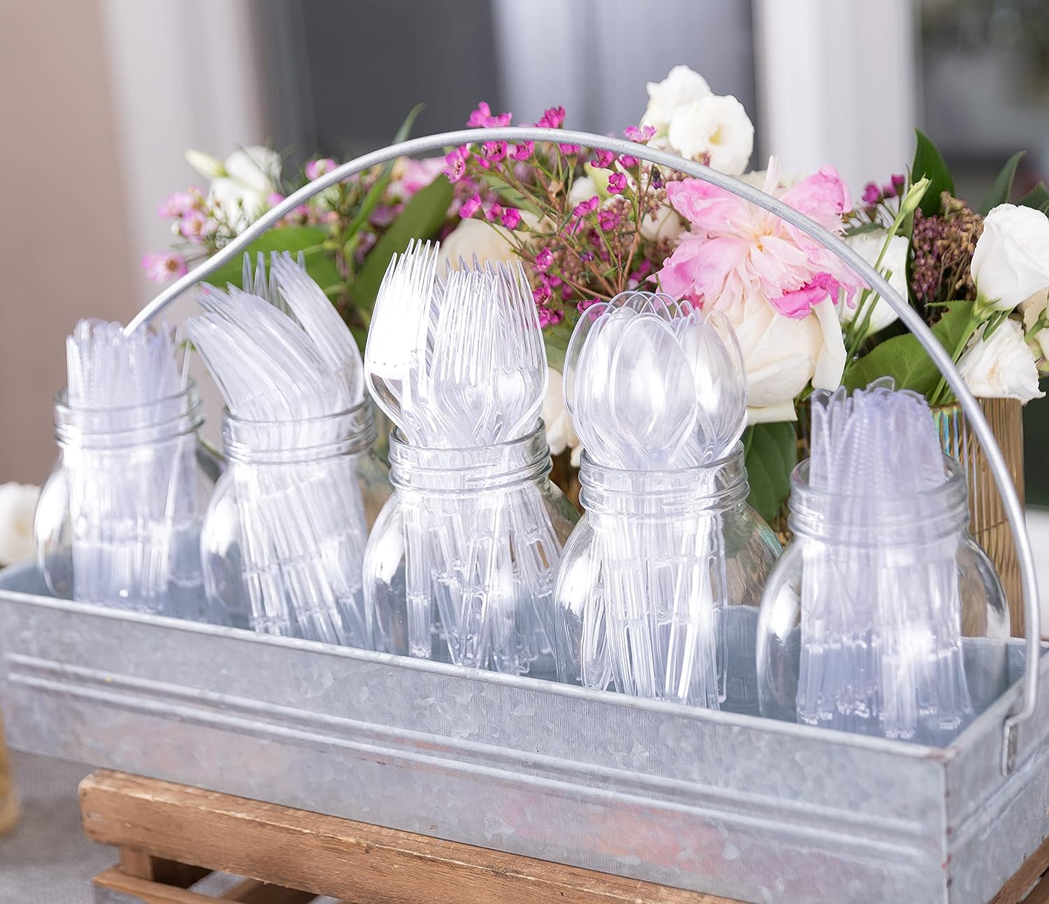 • ✅DURABLE: Heavy duty plasticware. Knives slice without breaking, strong forks spear food, spoons for hot or cold liquids.