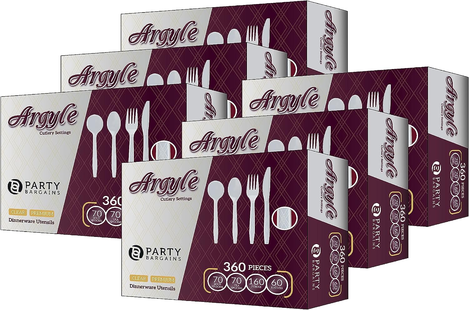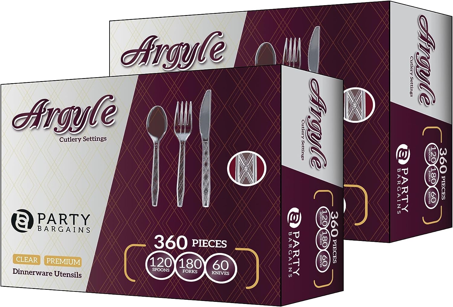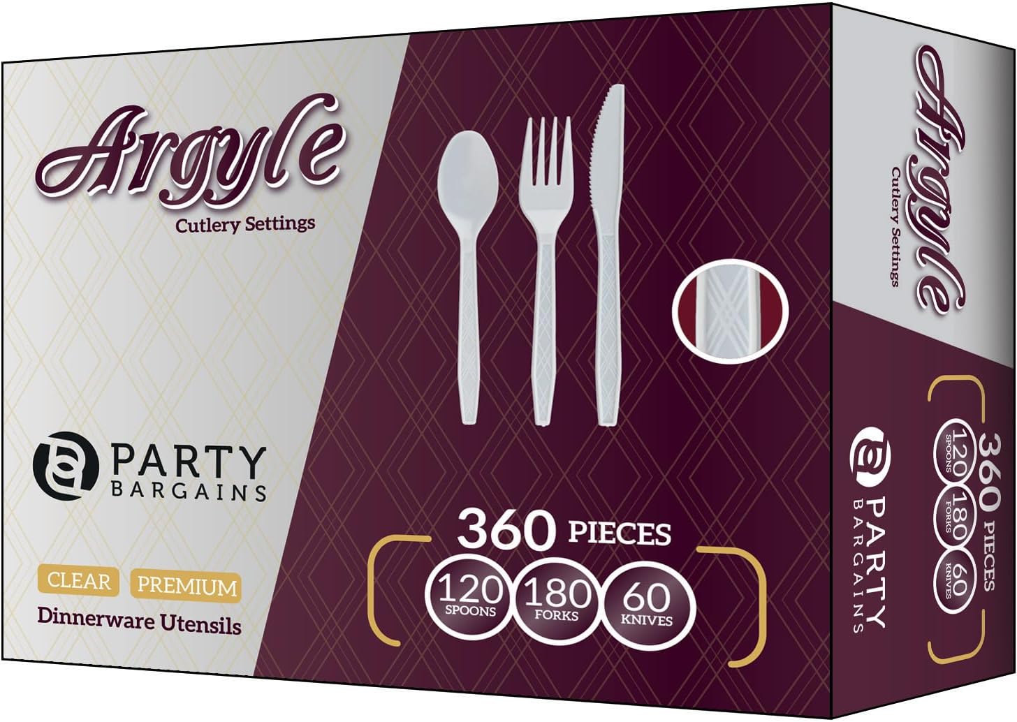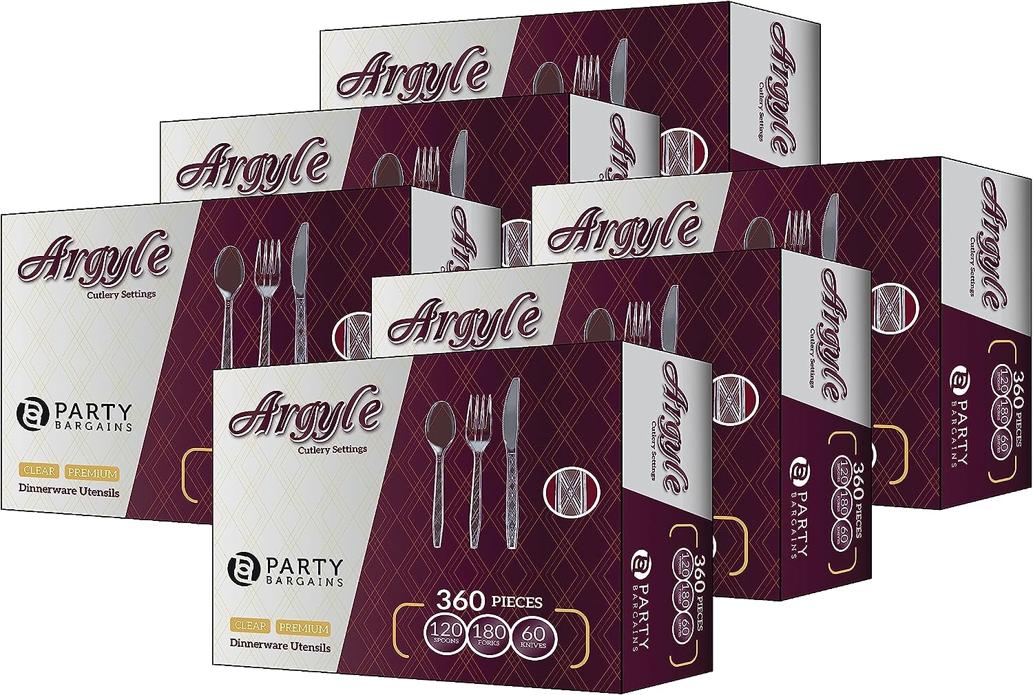 Party Bargains Disposable Cutlery set, SAPPHIRE Design, Clear Color, 360 Pieces: 180 Forks, 120 Spoons, 60 Knives