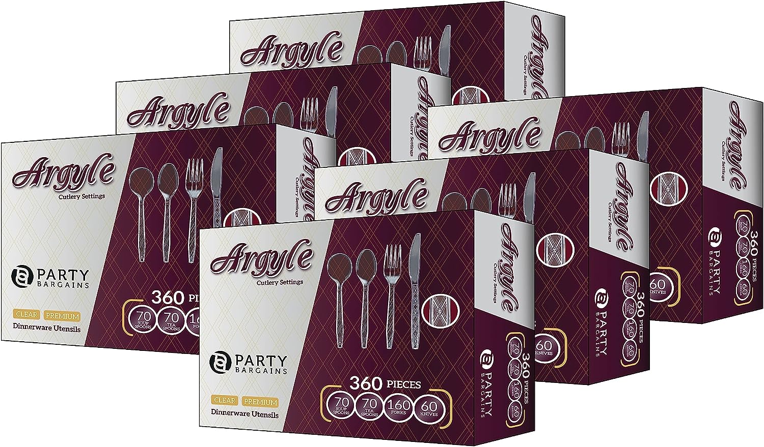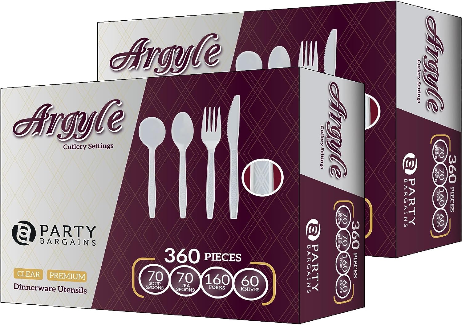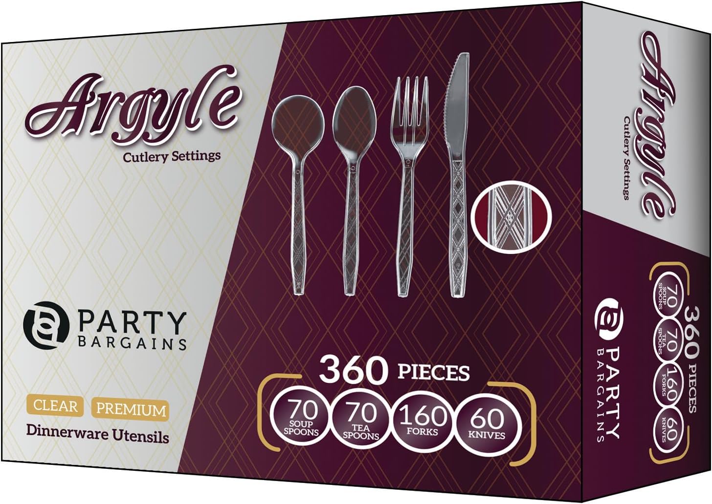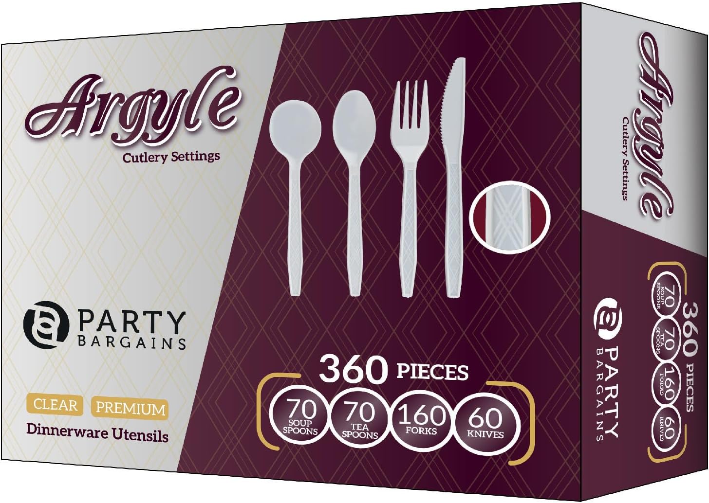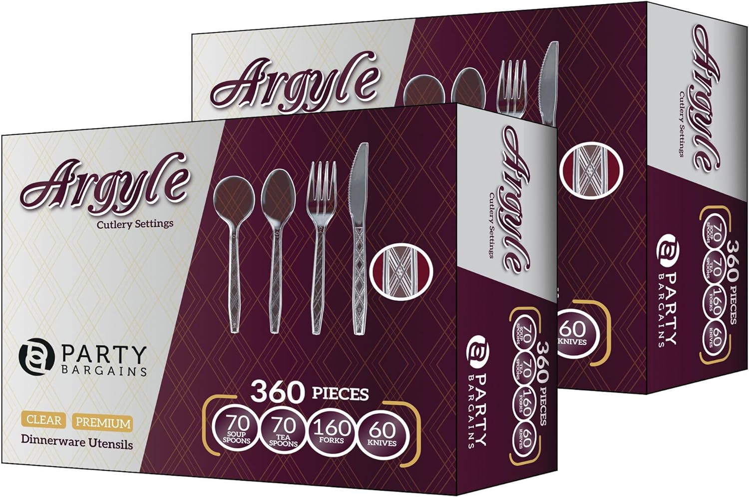 Party Bargains Disposable Cutlery set, SAPPHIRE Design, Clear Color, 360 Pieces: 180 Forks, 120 Spoons, 60 Knives