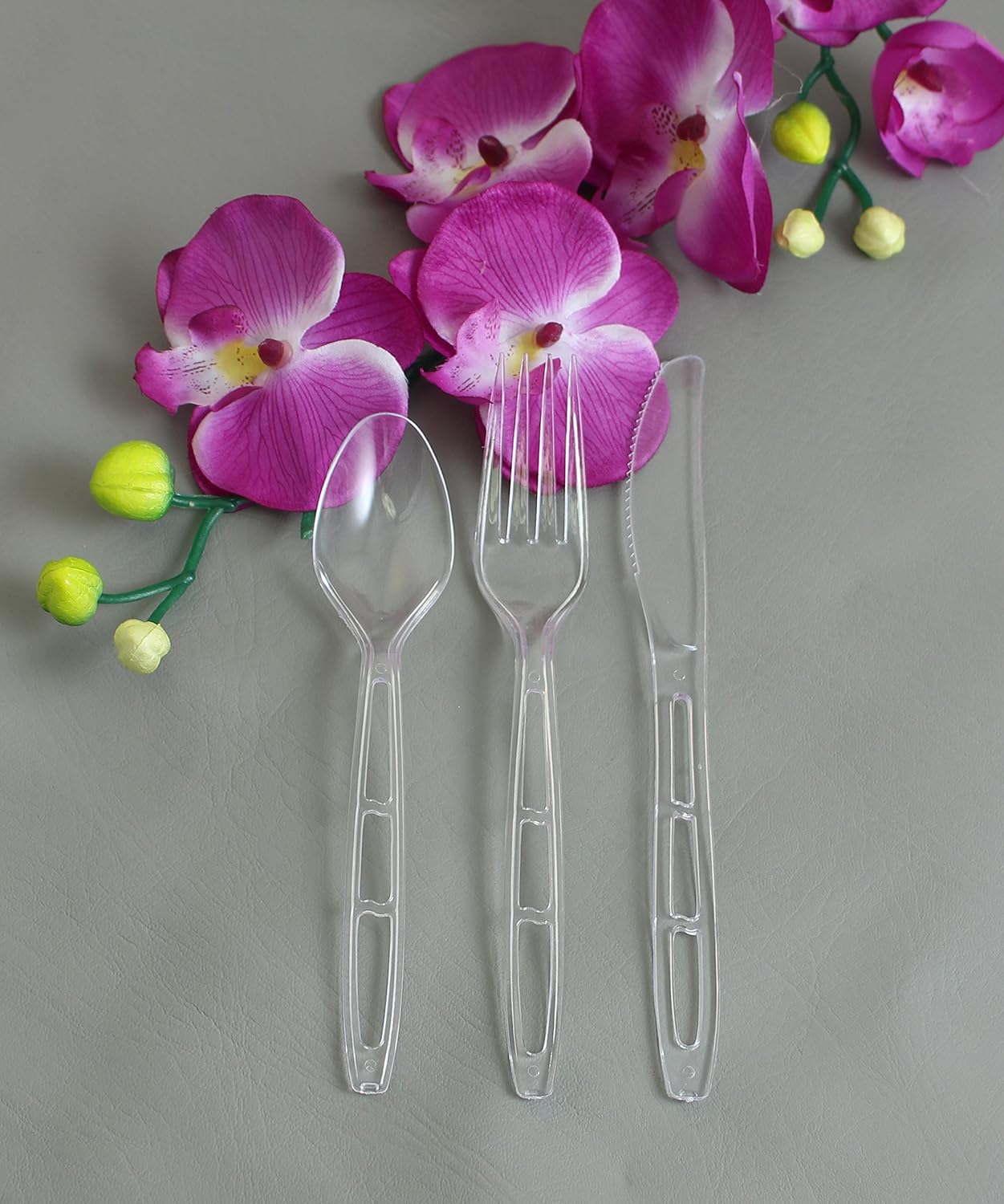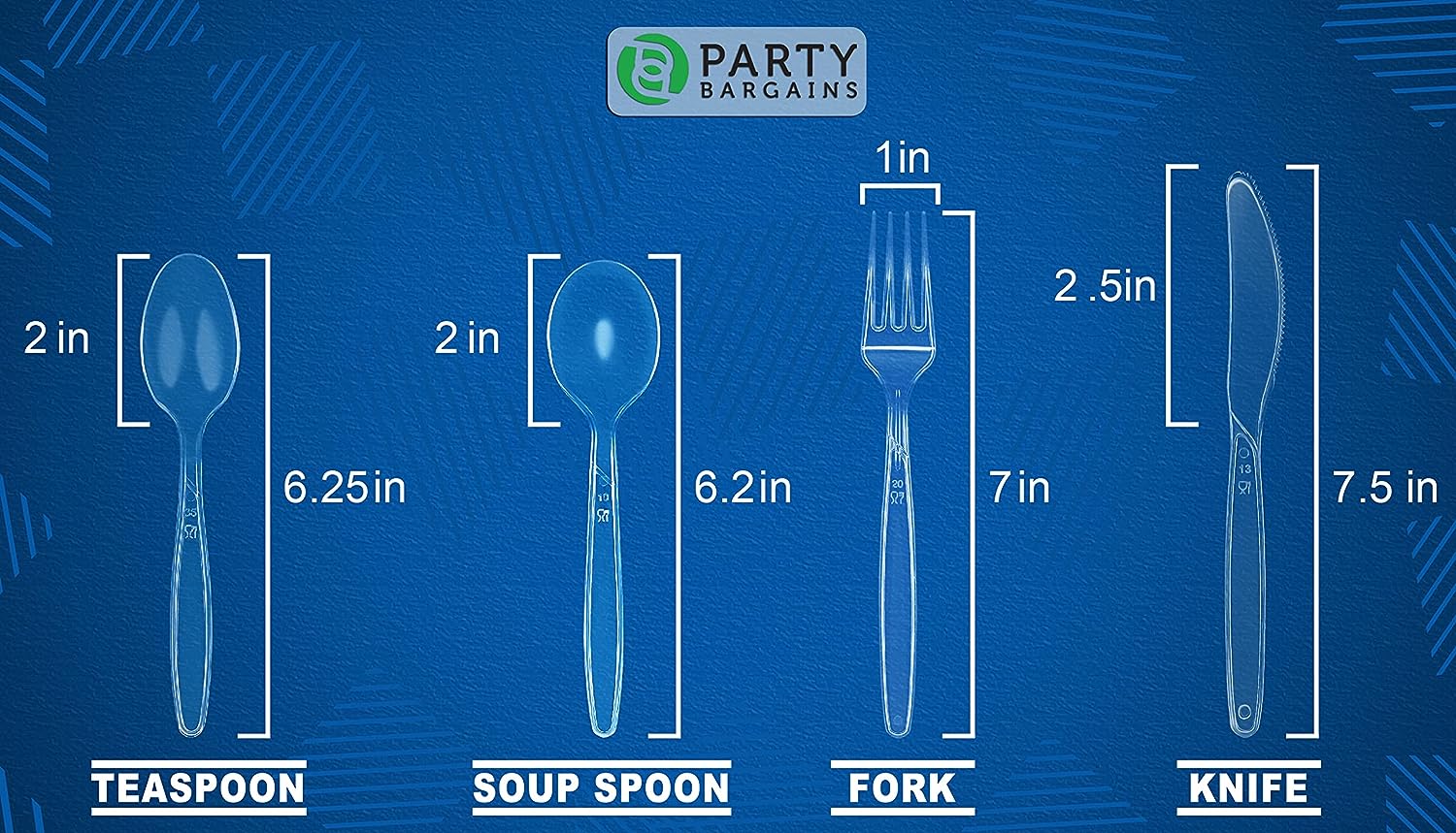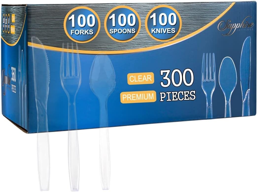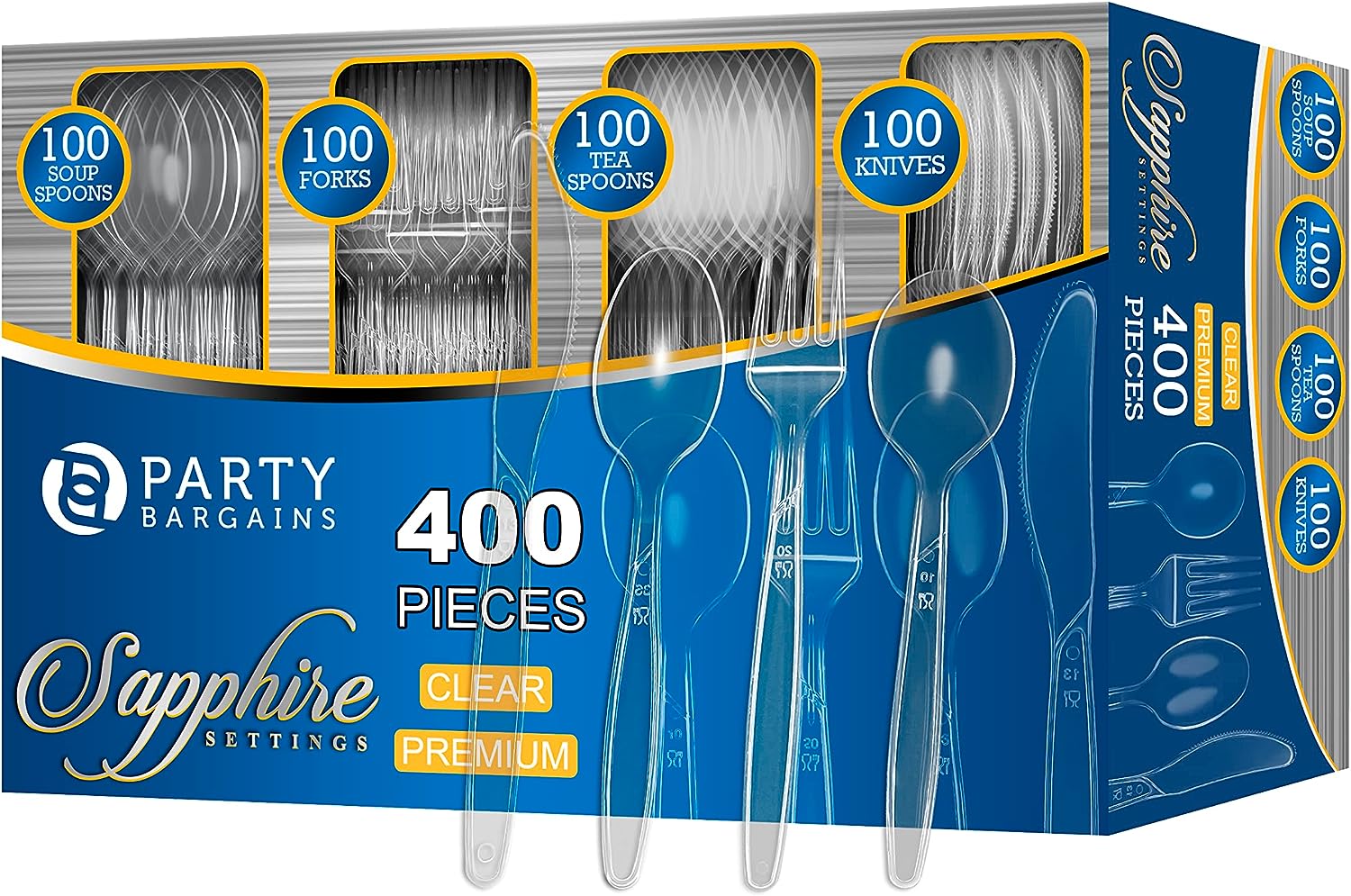 • Party Bargains Disposable Cutlery set, SAPPHIRE Design, Clear Color, 360 Pieces: 180 Forks, 120 Spoons, 60 Knives