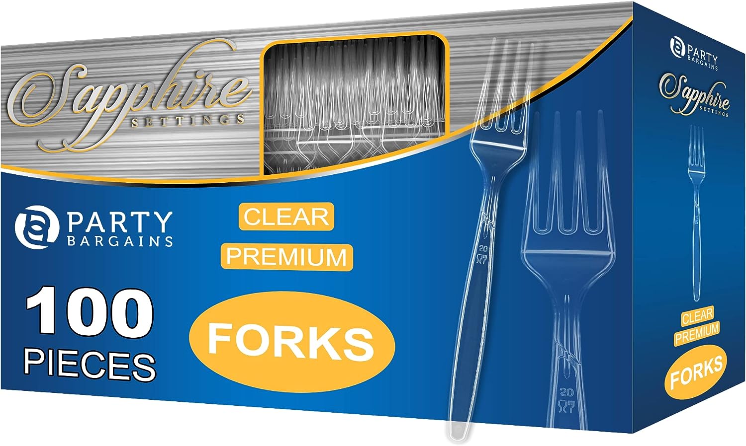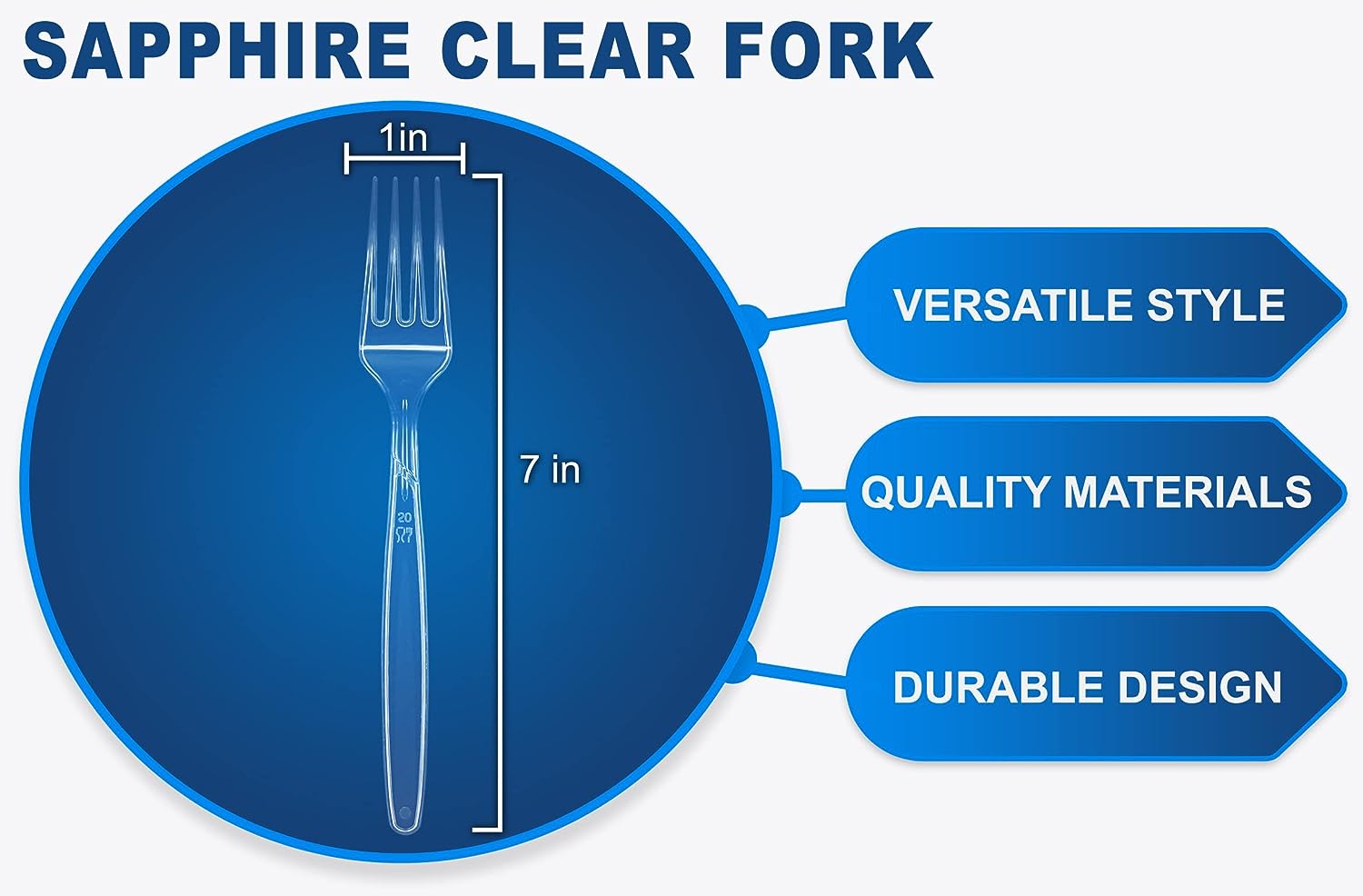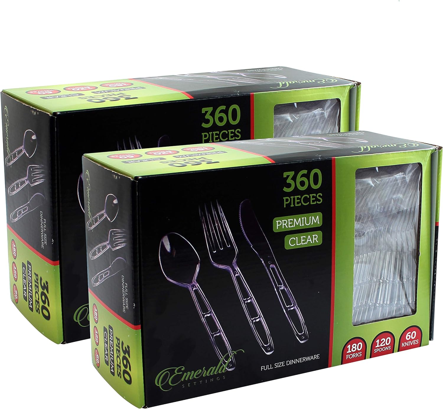 • Party Bargains Disposable Cutlery set, SAPPHIRE Design, Clear Color, 360 Pieces: 180 Forks, 120 Spoons, 60 Knives