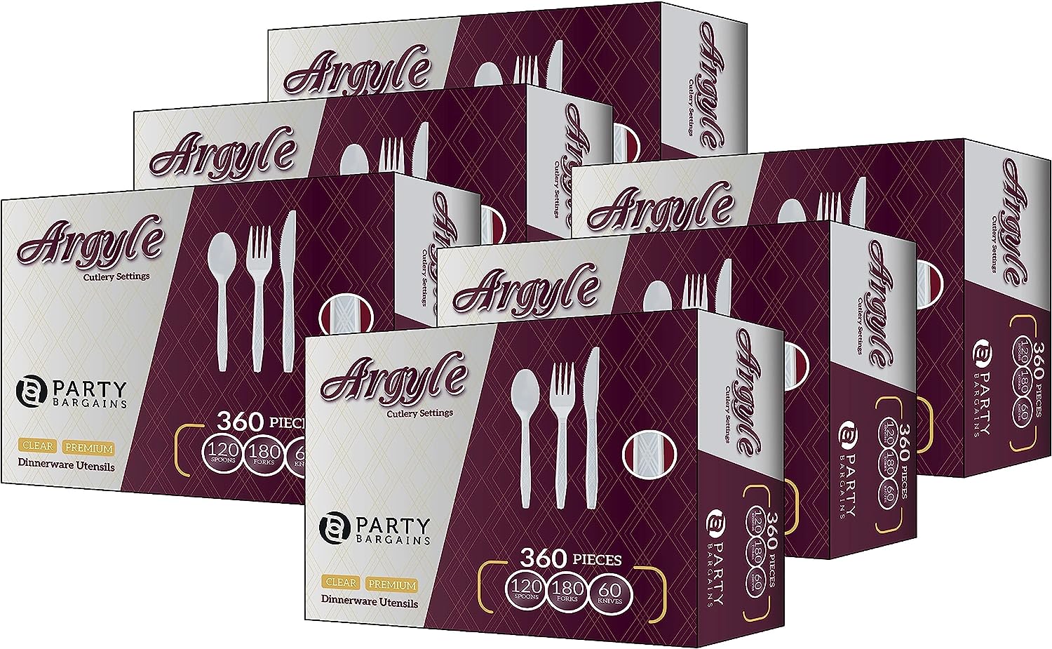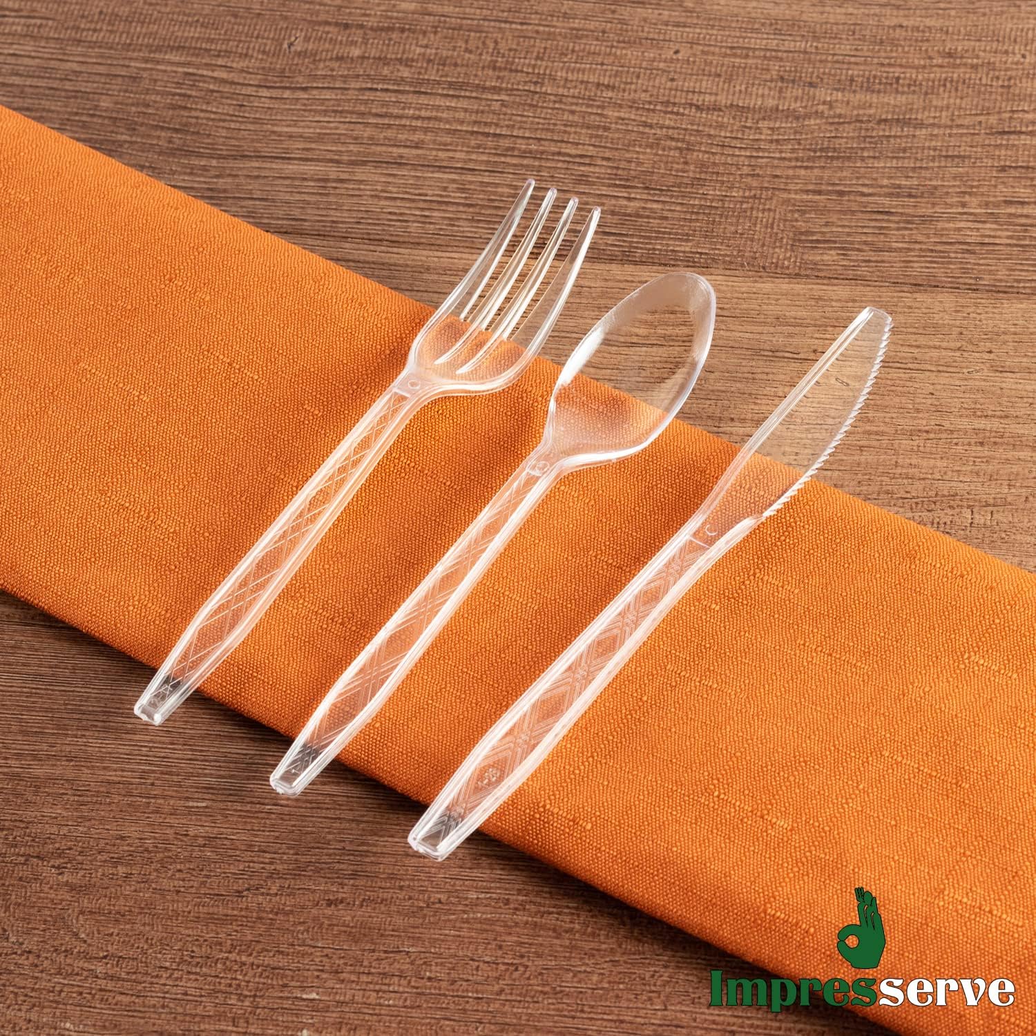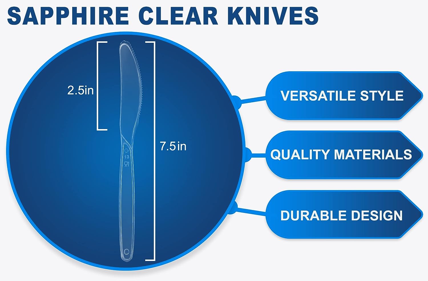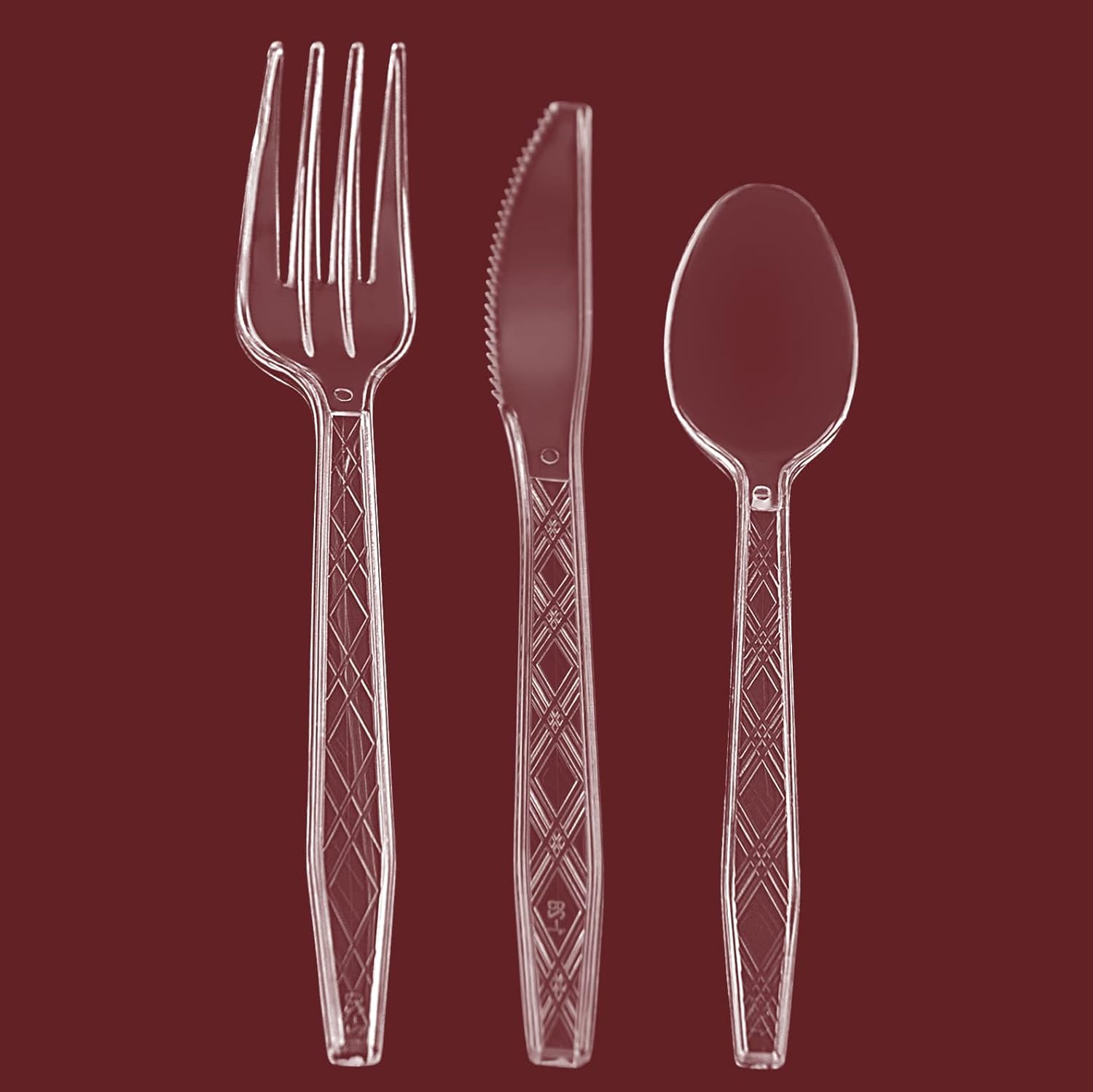 • Party Bargains Disposable Cutlery set, SAPPHIRE Design, Clear Color, 360 Pieces: 180 Forks, 120 Spoons, 60 Knives