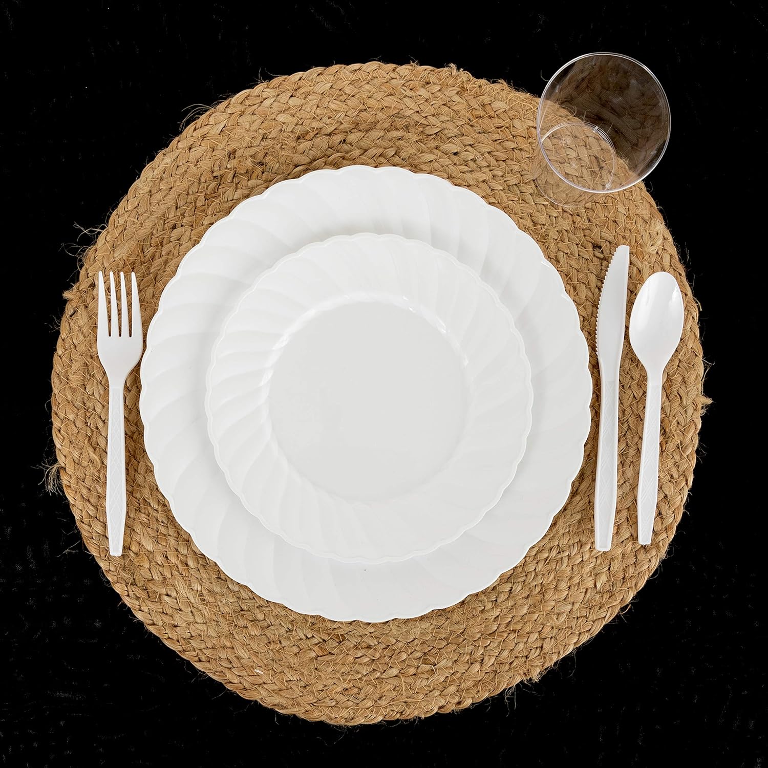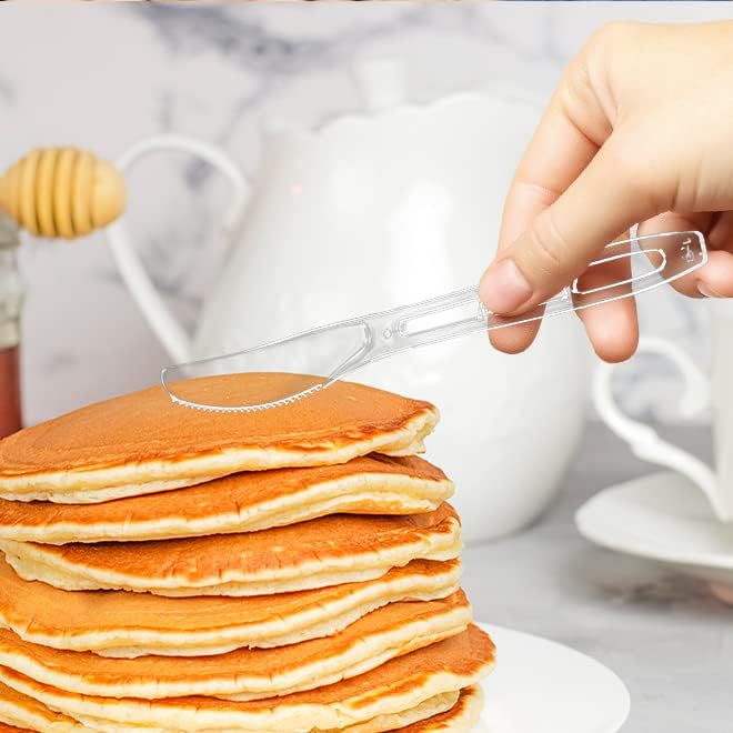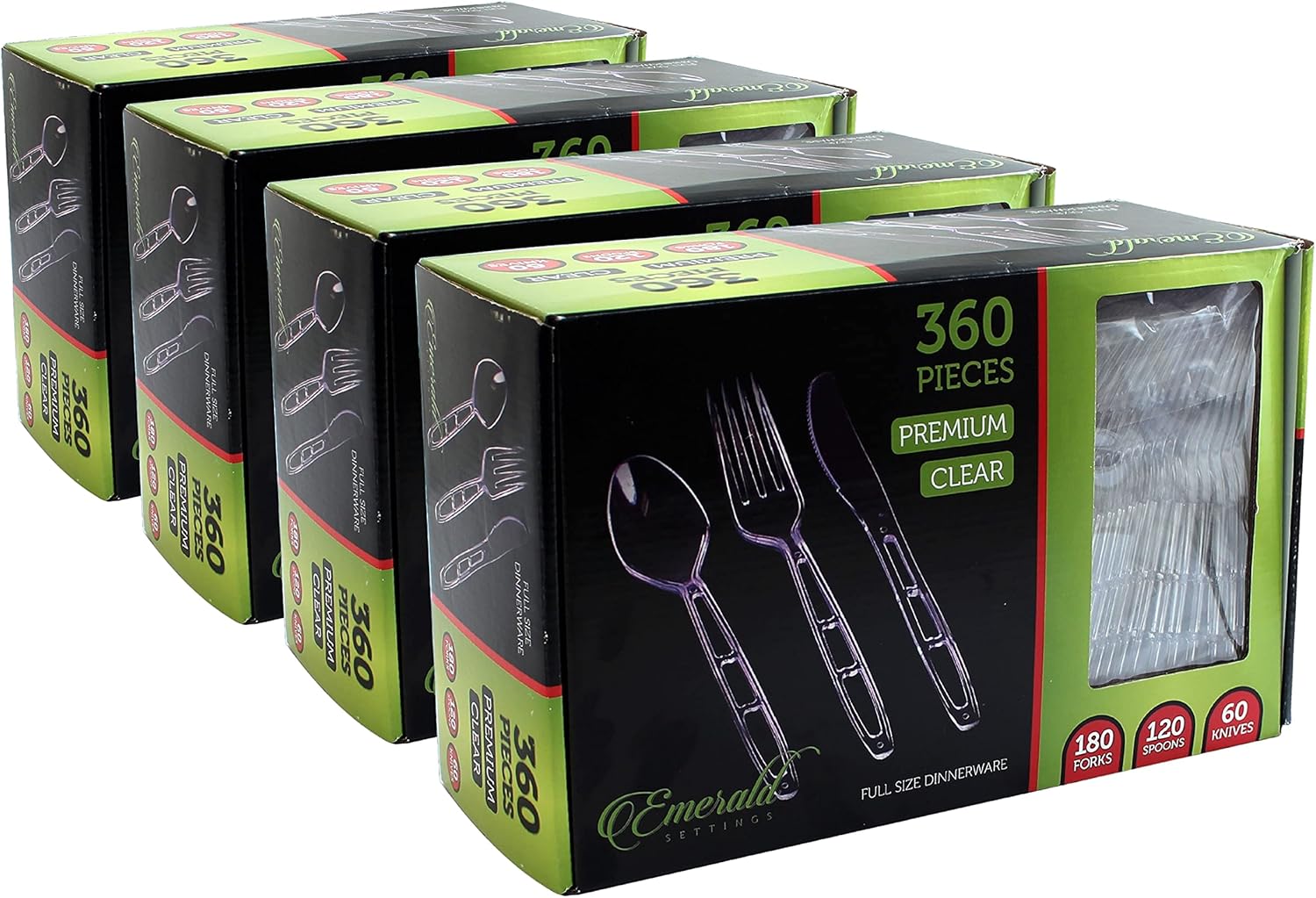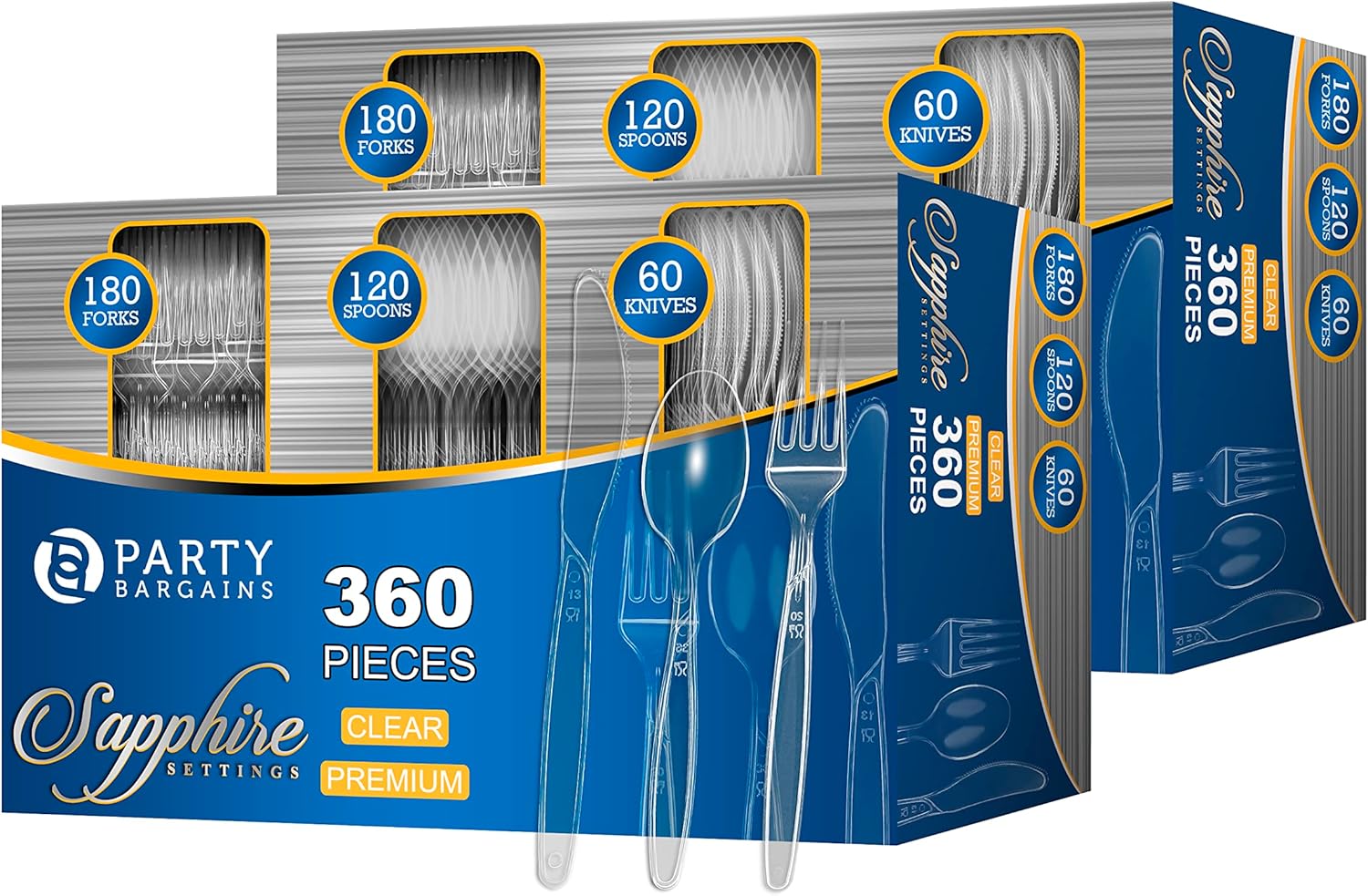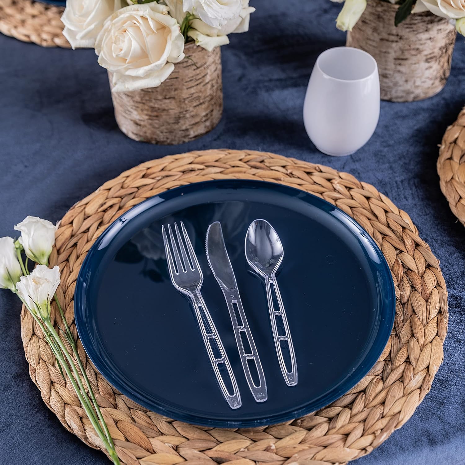 - ✅DURABLE: Heavy duty plasticware. Knives slice without breaking, strong forks spear food, spoons for hot or cold liquids.