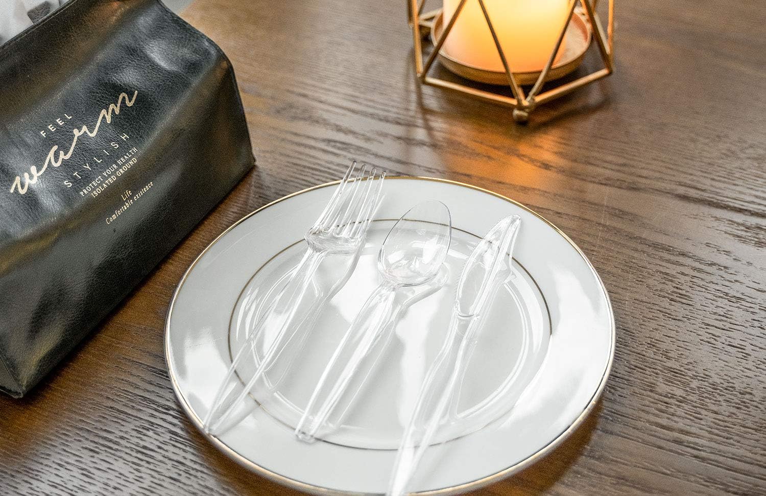 - THOUGHTFUL PACKAGING DESIGN - 100 Count Plastic Clear forks, Packed in high-quality paper boxes, the sides of the boxes have a design for easy ripping and small Windows to see what's inside at a glance. It is convenient for you to take out and keep the rest of the heavyweight cutlery.