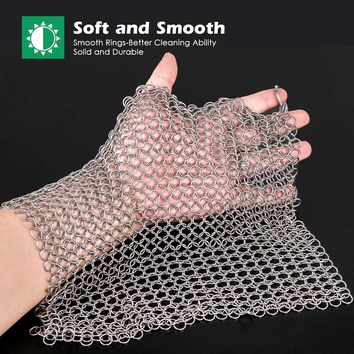- Unmatched Durability: This cast iron skillet cleaner is machine soldered by Premium 316L Stainless steel, It is ideal for cleaning all your cast iron cookware. Boasting unmatched durability and built to last as long as your cast iron products. Each chainmail ring is designed with the highest quality food grade stainless steel in the industry to be smooth enough for pans, scrub any residue with warm water which will release quickly and easily