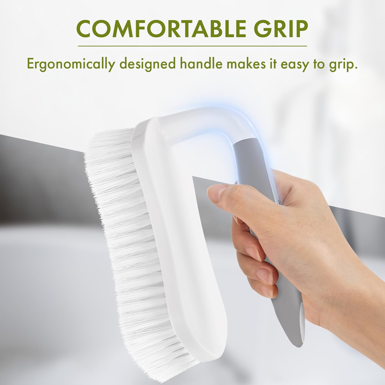 - Comfortable grip tub scrubber: The ergonomically shaped handle makes it easy to apply pressure as you scrub without straining your body. The dual tone design features rubber grooves that make it more comfortable to hold