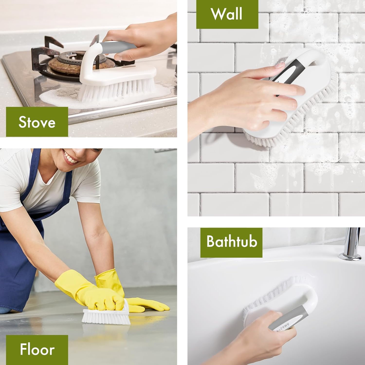 - Quality & sturdy bristles: Amazer scrub brush boasts extra-tough fibers for easy scrubbing of large areas. Efficiently clean hard-to-clean dirt around your bathroom or kitchen
