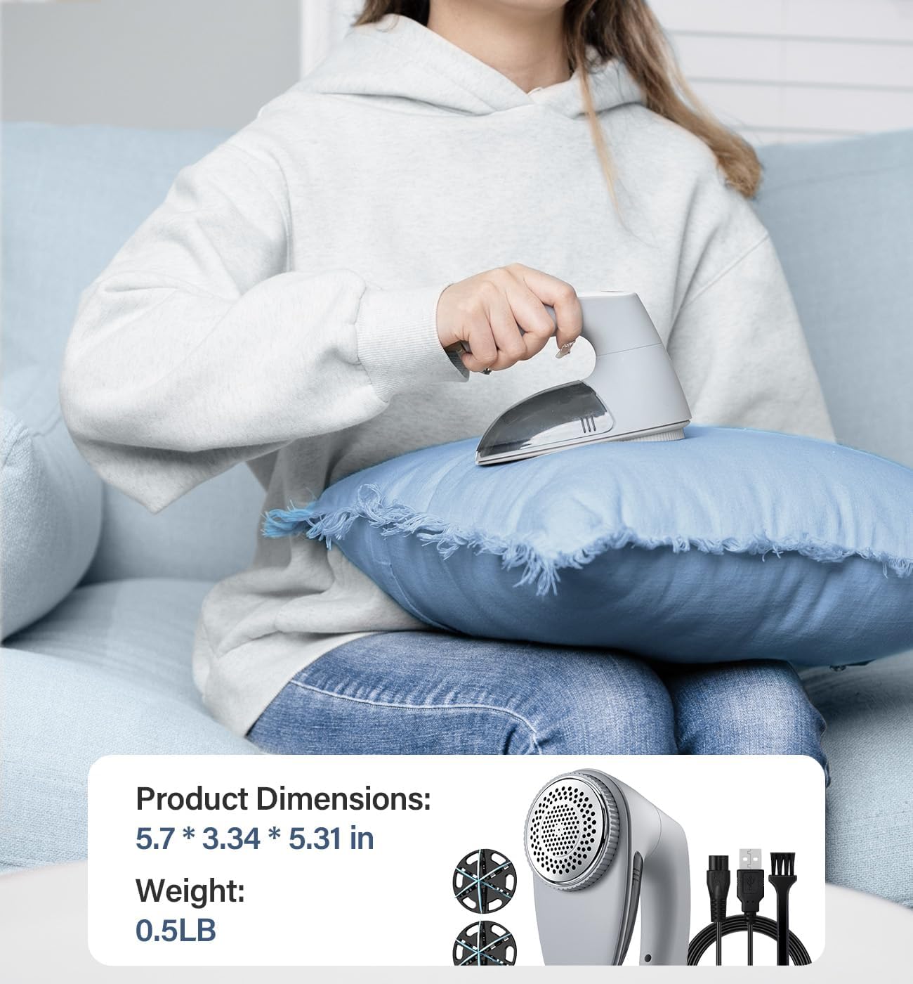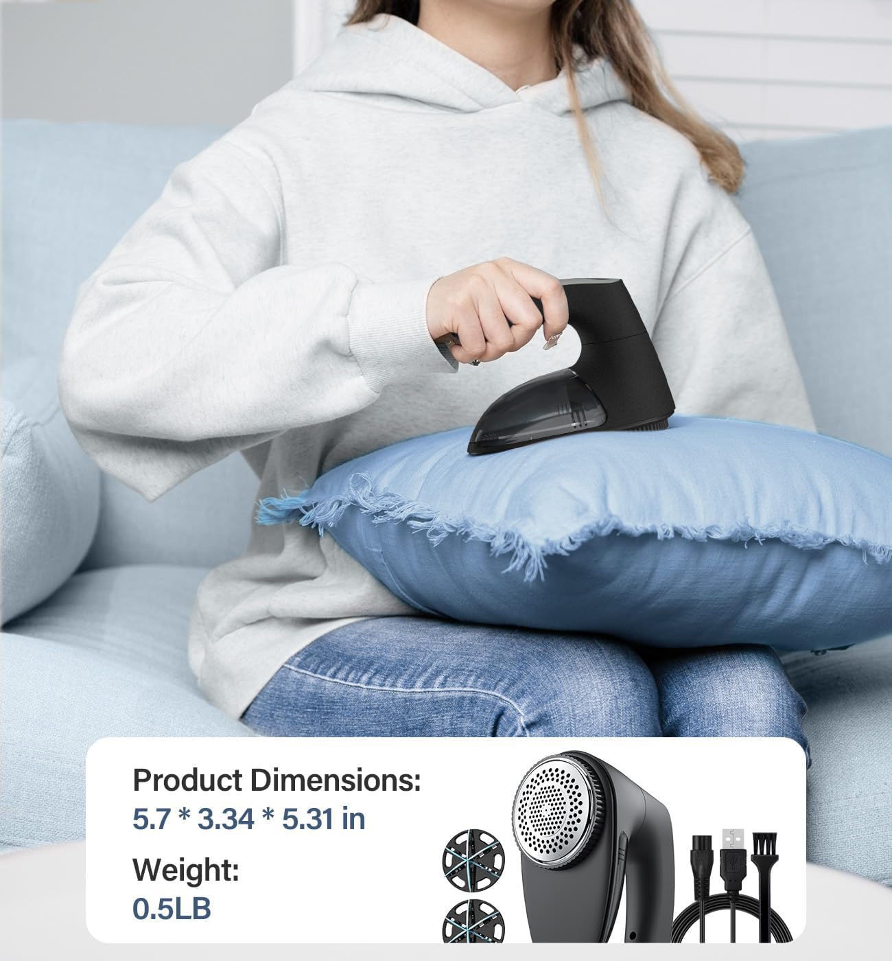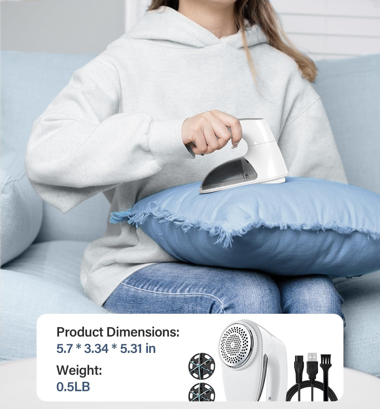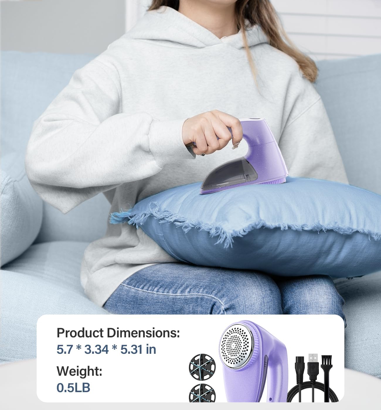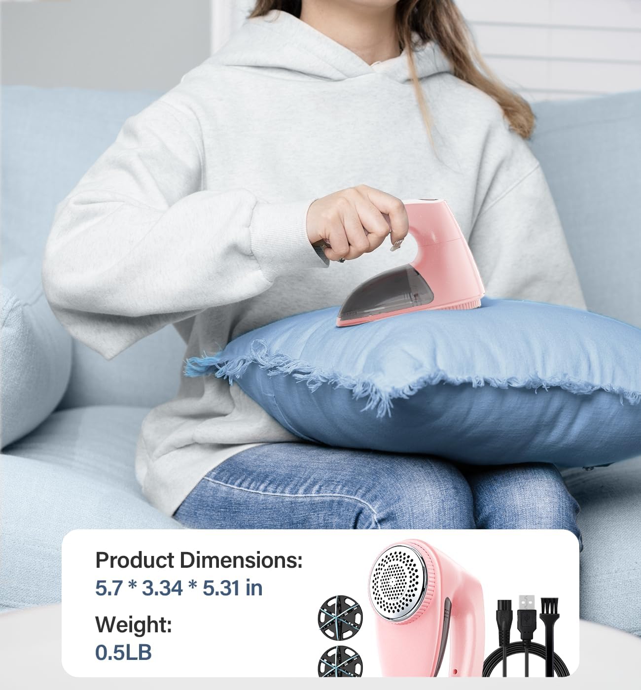 - TAKE CARE THE FABRIC METICULOUSLY: When the cover is loosened or removed, the Sweater Shaver will stop automatic to prevent hazards or damage to the material; The tailor made blades add extra protection to ensure the space of the unwanted fabric while trimming; Non deformable Stainless steel honeycomb mesh effectively reduces the friction of clothes; Made of non flammable material with smart IC chip to ensure safety use