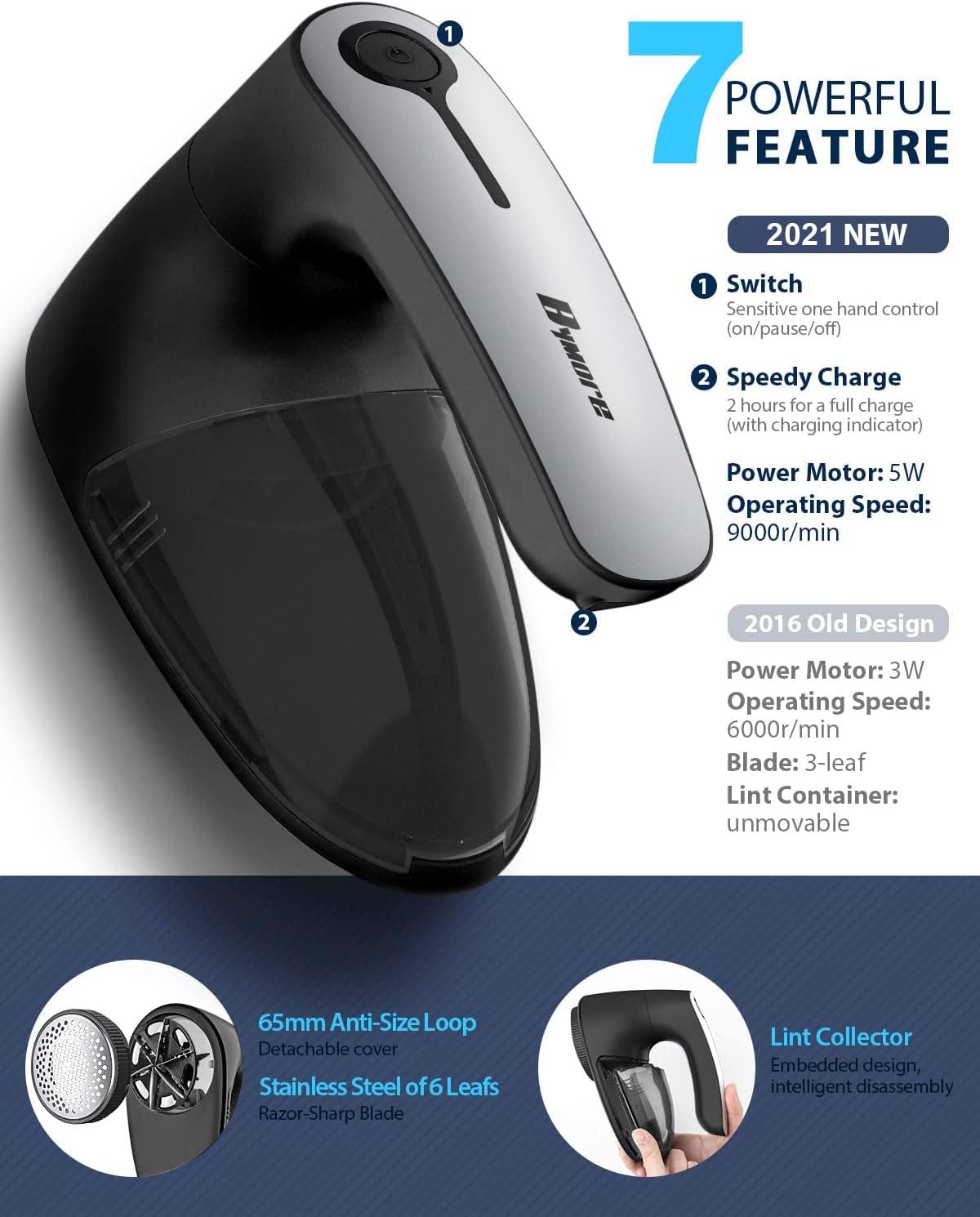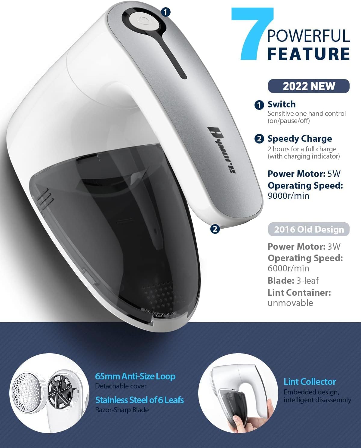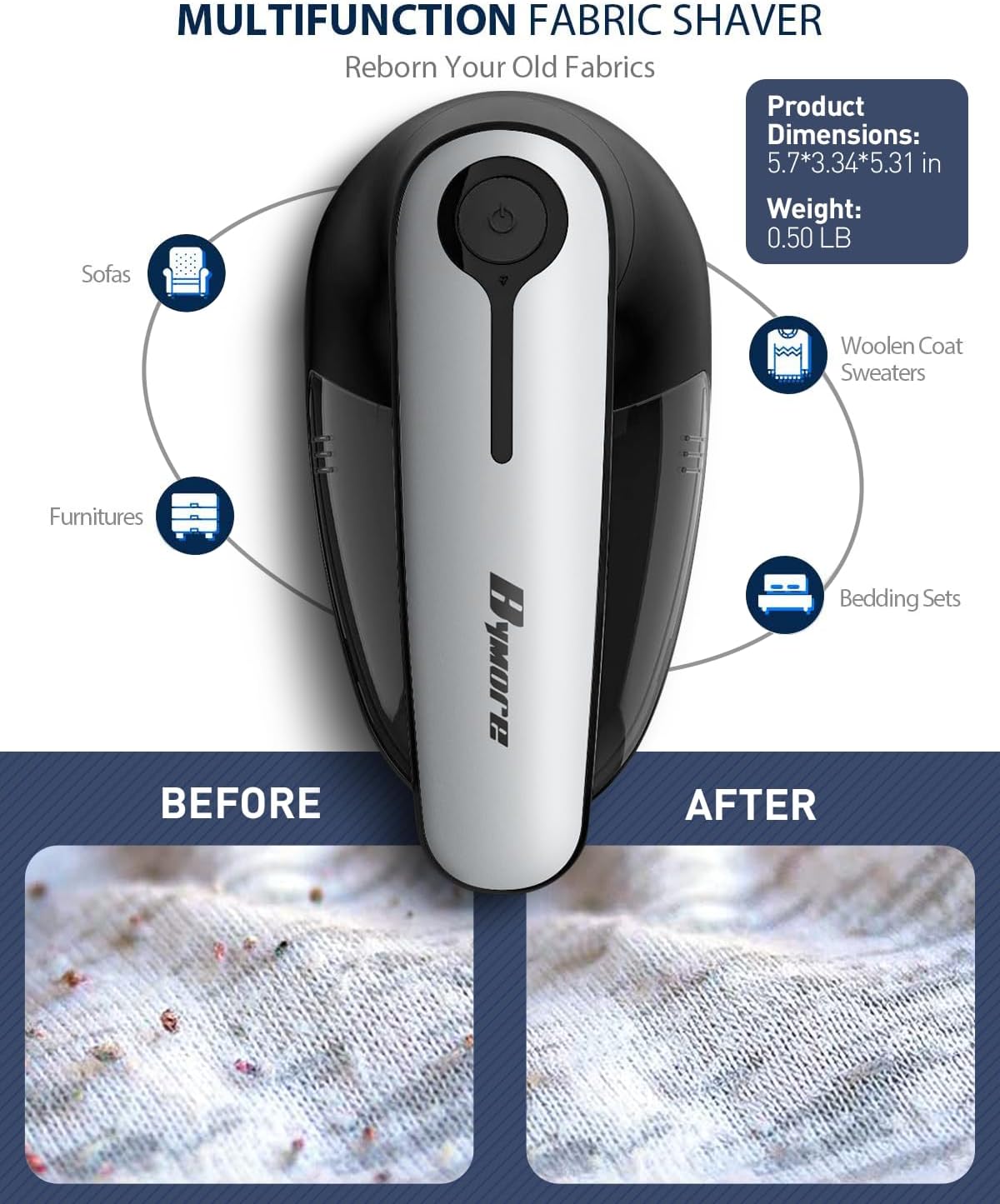 - EFFICIENT INNOVATION: In a Hurry to rejuvenate your clothes? Bymore Sweat Shaver has combine 6 Pieces of Stainless Steel Sharp Blades and extra larger shaving head for wider angle to removal from all fabrics with 9000 RPM high speed rotary in no time