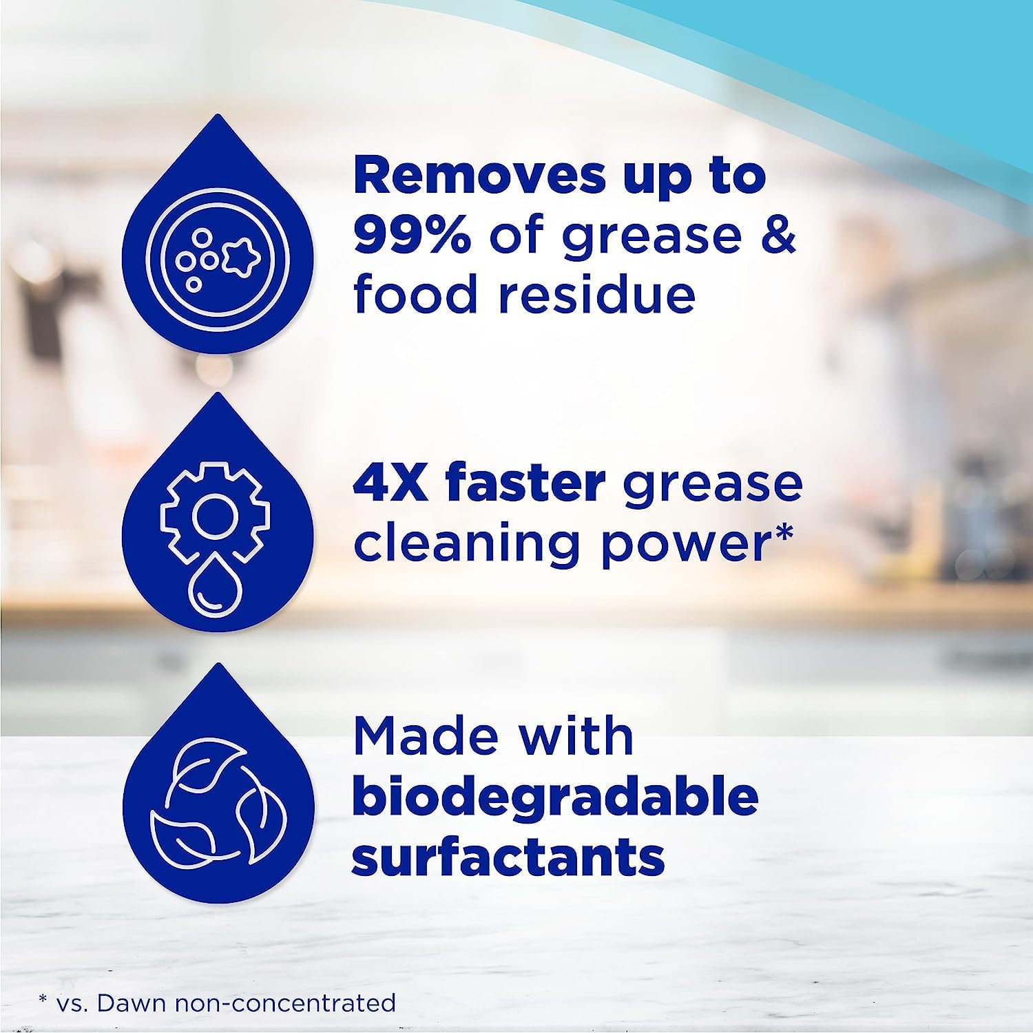 - Contains 4X Faster Grease Cleaning Power (cleaning ingredients per drop vs. Dawn Non-Concentrated)