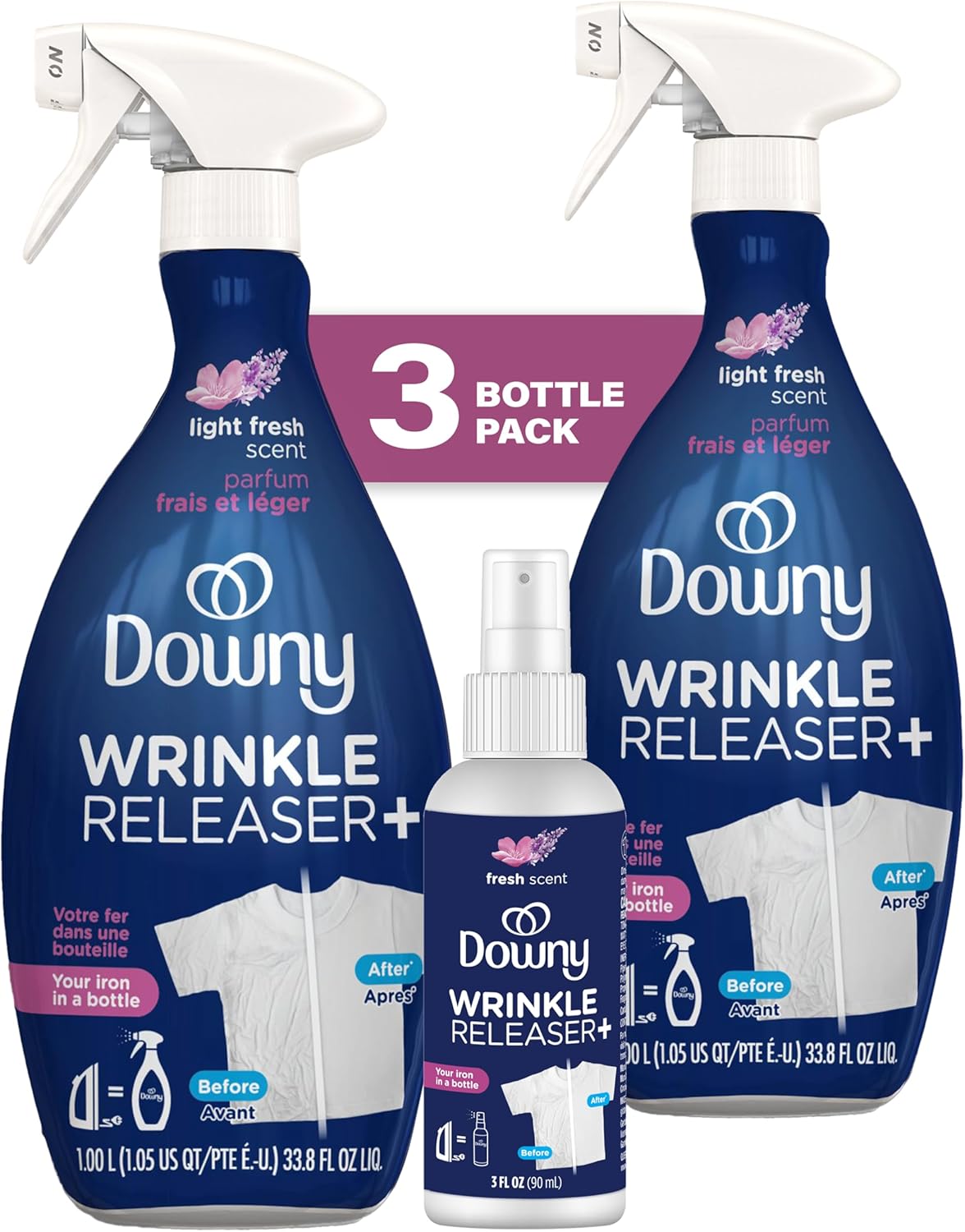 - Fight Wrinkles & Static On-the-Go: Downy wrinkle release spray is ideal for busy lifestyles. Spray, tug, and smooth to eliminate wrinkles without ironing. This all-in-one anti wrinkle spray for clothing fights static cling, making it a must-have for travel and everyday use - keeping your fabrics looking fresh and crisp.