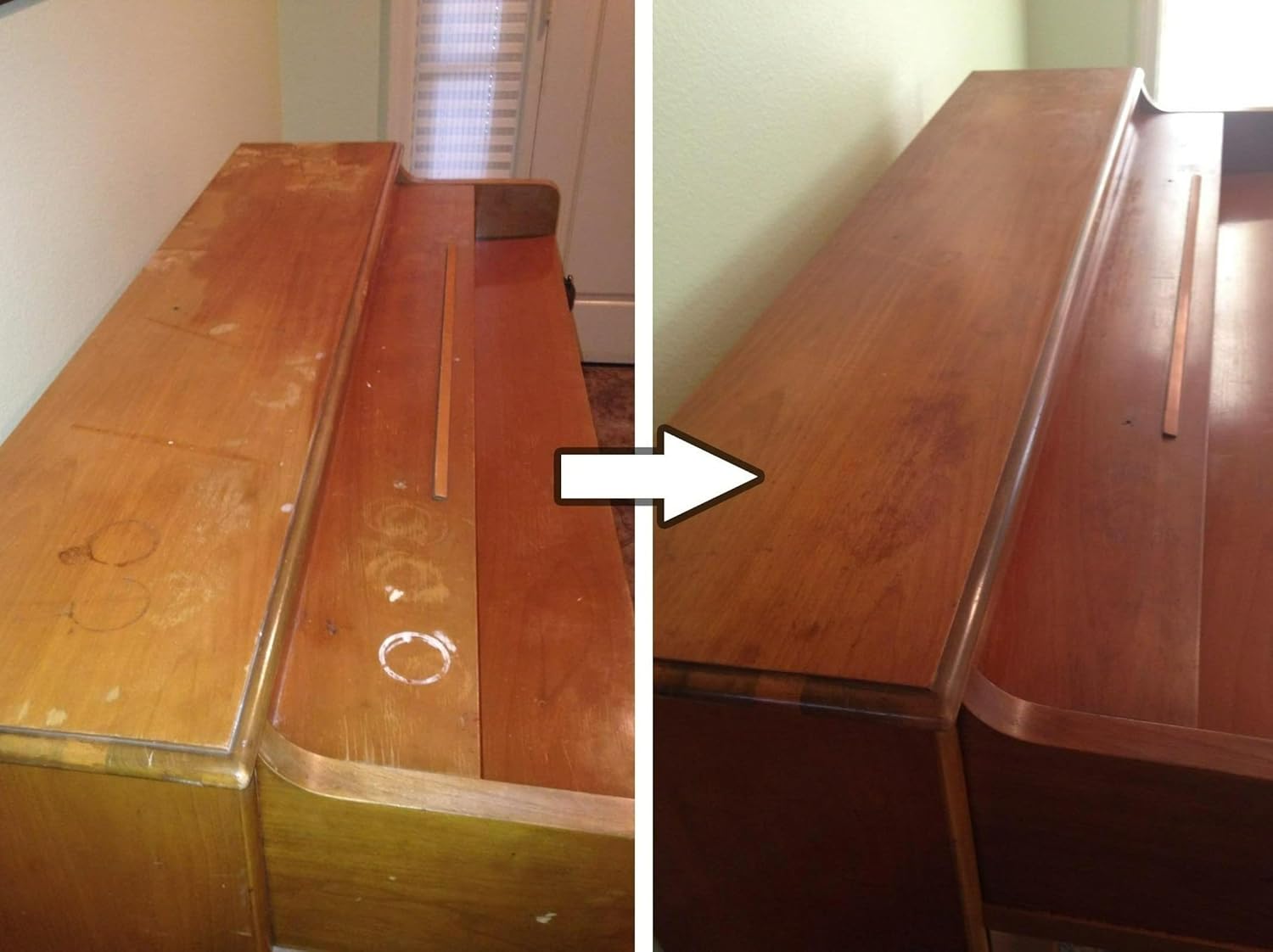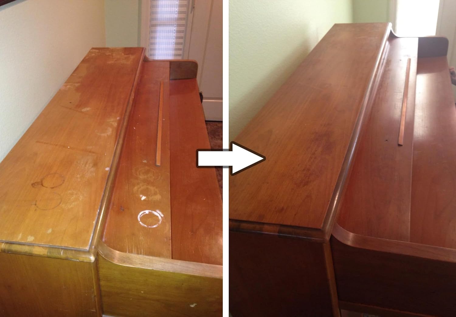 - With a simple wipe-on, wipe-off process, most finished wood surfaces that seem to need a complete refinishing job can be restored in a few minutes