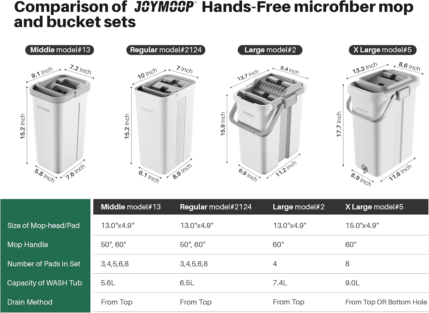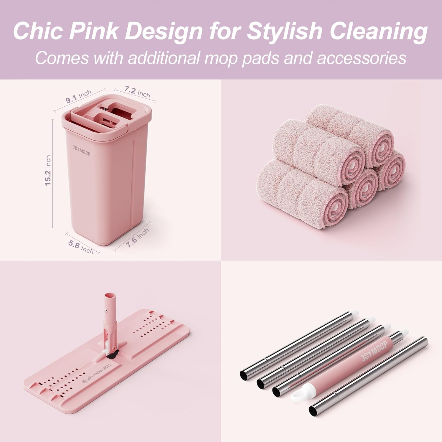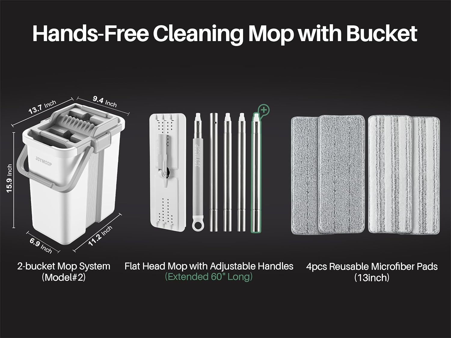 | Included Components | 1 Mop-head with 1 Pad, 5 Mop Handle Rods, 1 Instruction Manual, 3 Extra Pads, 1 Bucket#2124 |