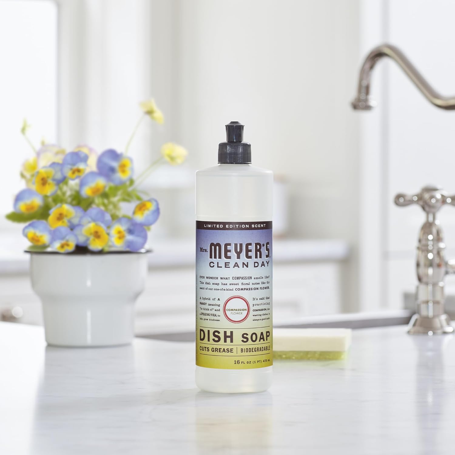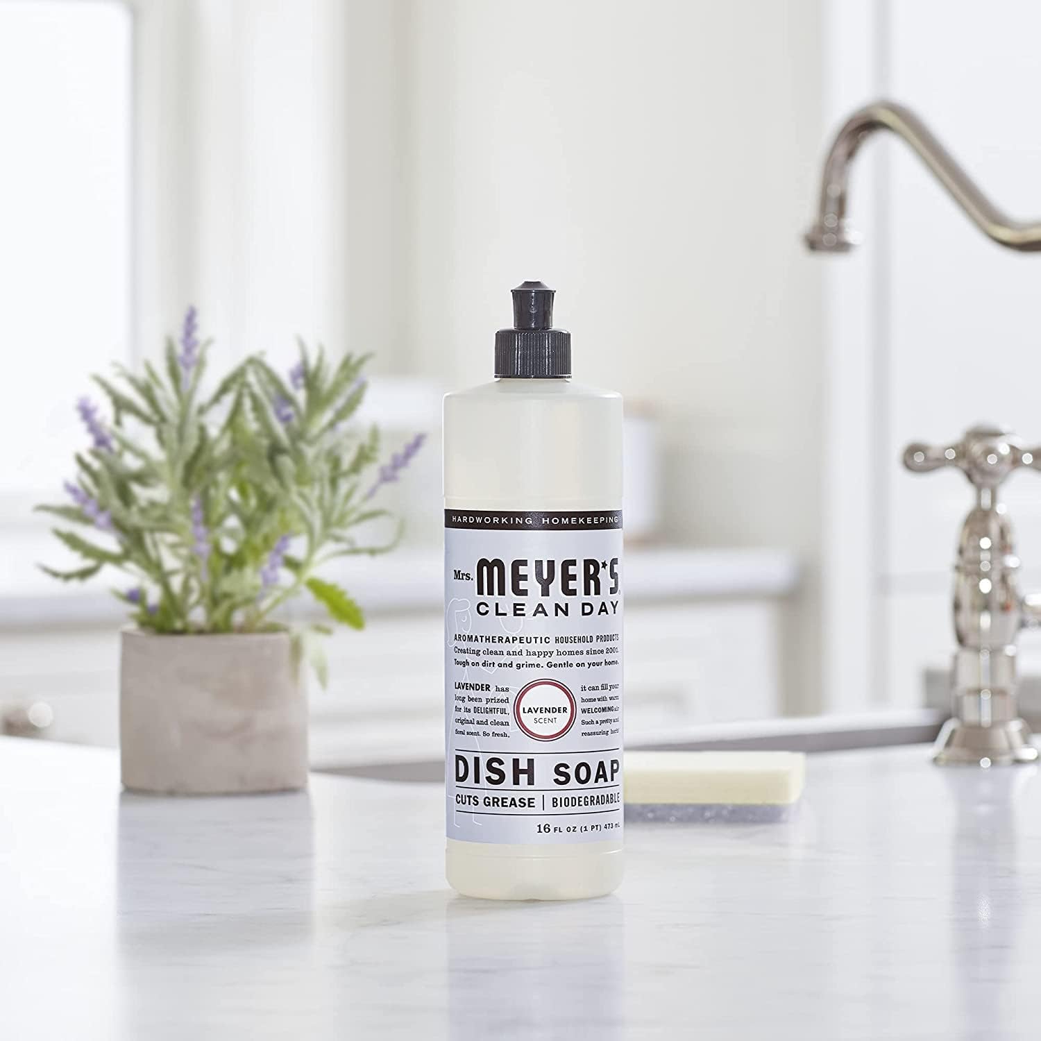 • MRS. MEYER'S CLEAN DAY Liquid Dish Soap, Biodegradable Formula, Basil, 16 fl. oz - Pack of 3