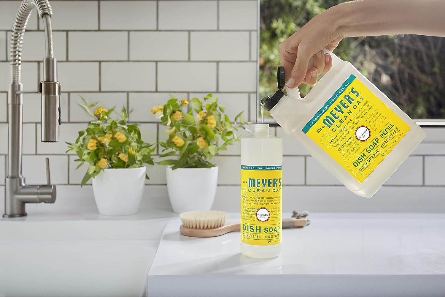 • MRS. MEYER'S CLEAN DAY Liquid Dish Soap Refill, Biodegradable Formula, Honeysuckle, 48 fl. oz