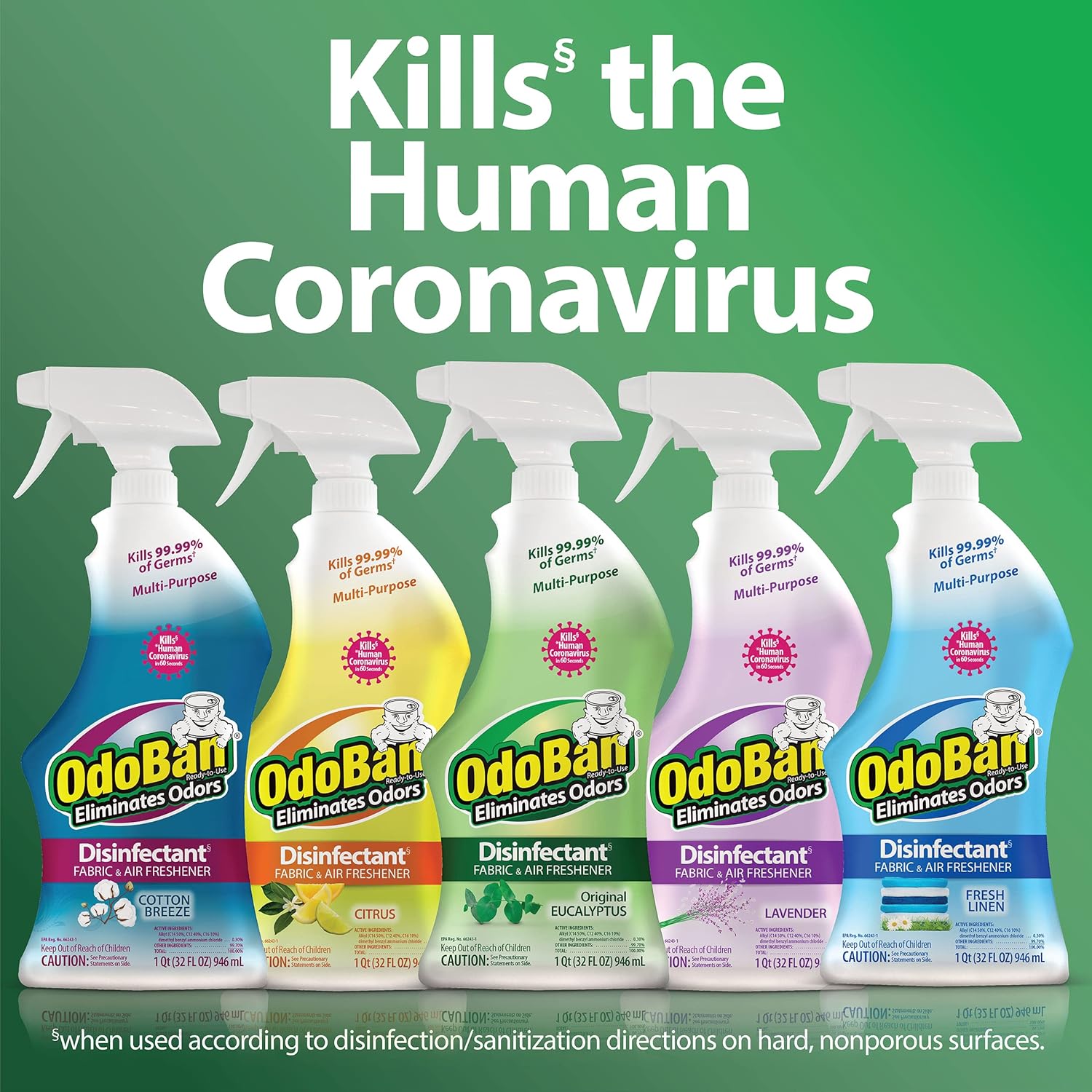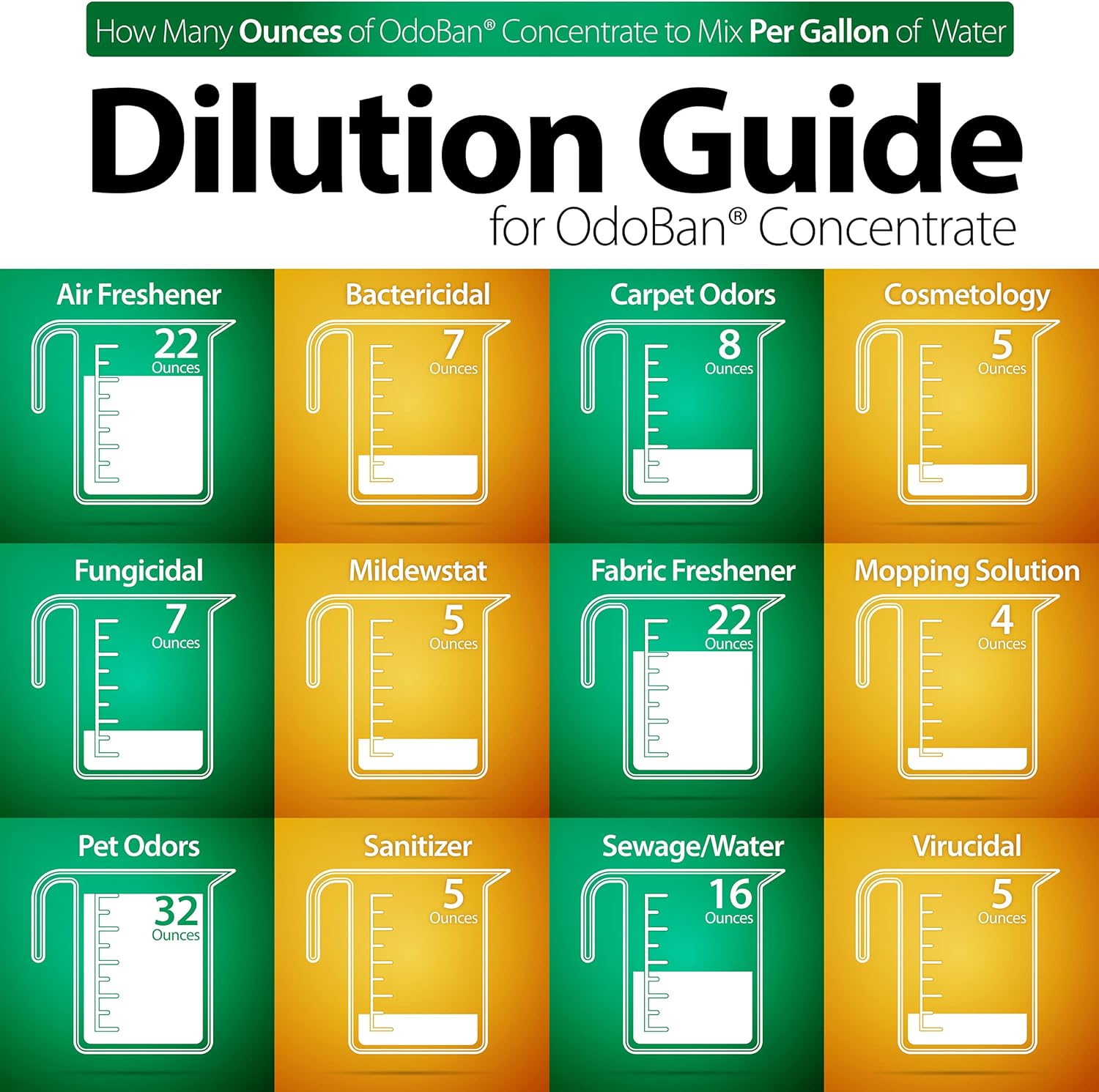 OdoBan multi-purpose concentrate formula does the job of many products in one. Each of our one-gallon bottles of concentrate makes up to 32 gallons of cleaner and is great to have on hand for refills when you need them. It's an effective cleaner and sanitizer that leaves no residue, and works effortlessly to disinfect hard, nonporous household surfaces. Kills the Human Coronavirus in 60 seconds when used according to disinfection directions on hard, nonporous surfaces; meets the criteria for inclusion on EPA List N (EPA Reg. No 66243-2). It's also an effective eliminator of harsh aromas and stenches including pet urine aftermath in carpet, upholstery, and more. It can even stand up to the smell of smoke and can be used in sinks, tubs, and for mopping floors and washing walls. Not only is it an exceptional cleaner, but it's a great air freshener and will remove harsh smells from any room. It's also a great way to refresh laundry and fabrics. OdoBan products can be used in both households and business facilities of all types including schools and day cares, hospitals, nursing homes, in ambulances, buses, and trains, in airplanes and taxis, in restaurants and cafeterias; pretty much any place where people commune. When used as directed, OdoBan is safe for use on washable surfaces, including sealed natural stone, stainless steel, ceramic, tile, Formica, fiberglass, rubber, vinyl, terrazzo, and plastic. Safe for use on sealed natural stone countertops and surfaces, like granite, quartz, marble, ceramic, and soapstone. Make Life Fresh with OdoBan. *EPA List N (EPA Reg. No 66243-2)