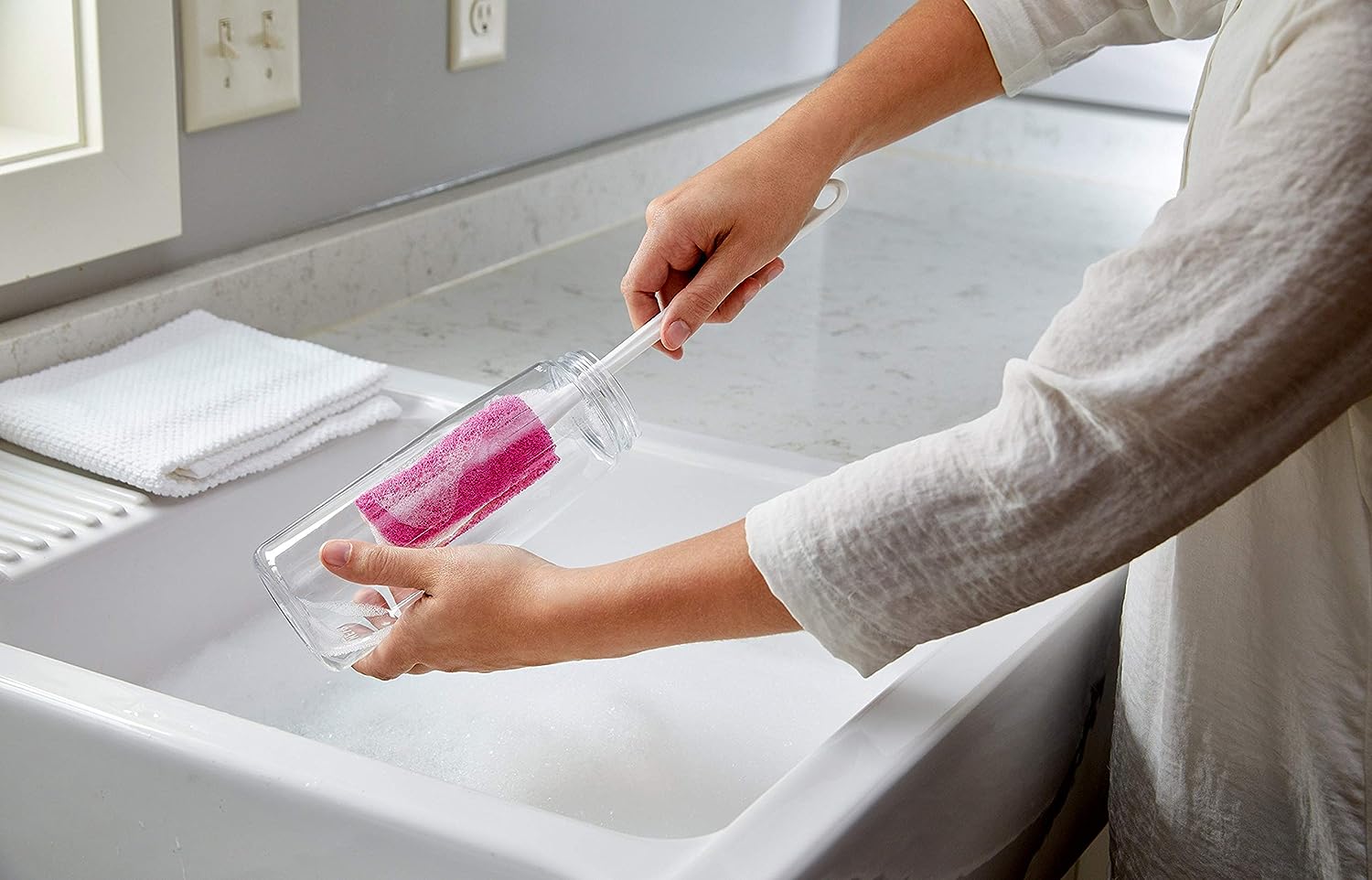 - Valve prevents dish soap from leaking, no matter how the dishwand is stored