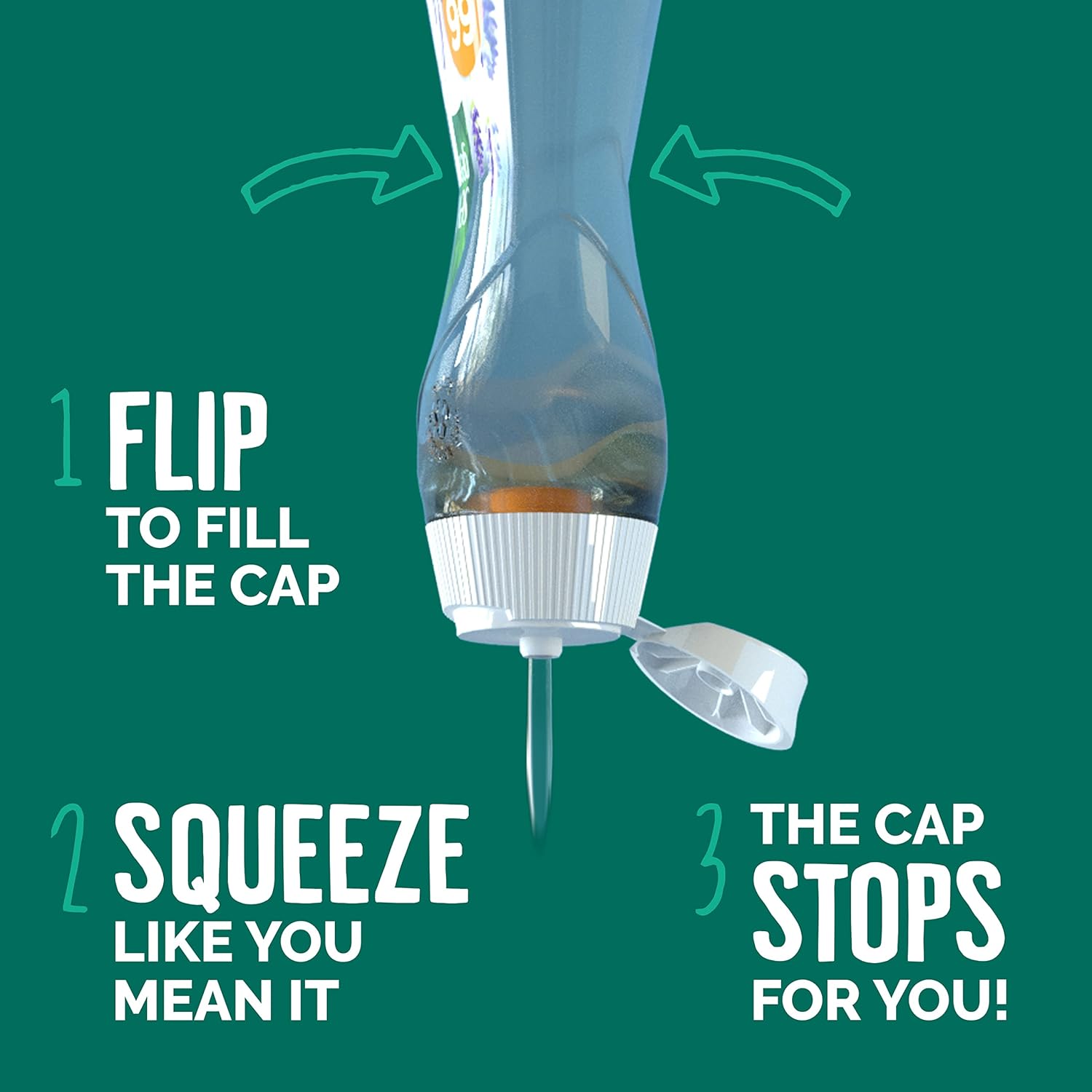 • Our Easy Dose Auto Dosing Technology measures the right amount-every time. Just flip the bottle, give a firm squeeze, and you're done. One squeeze is all you need!