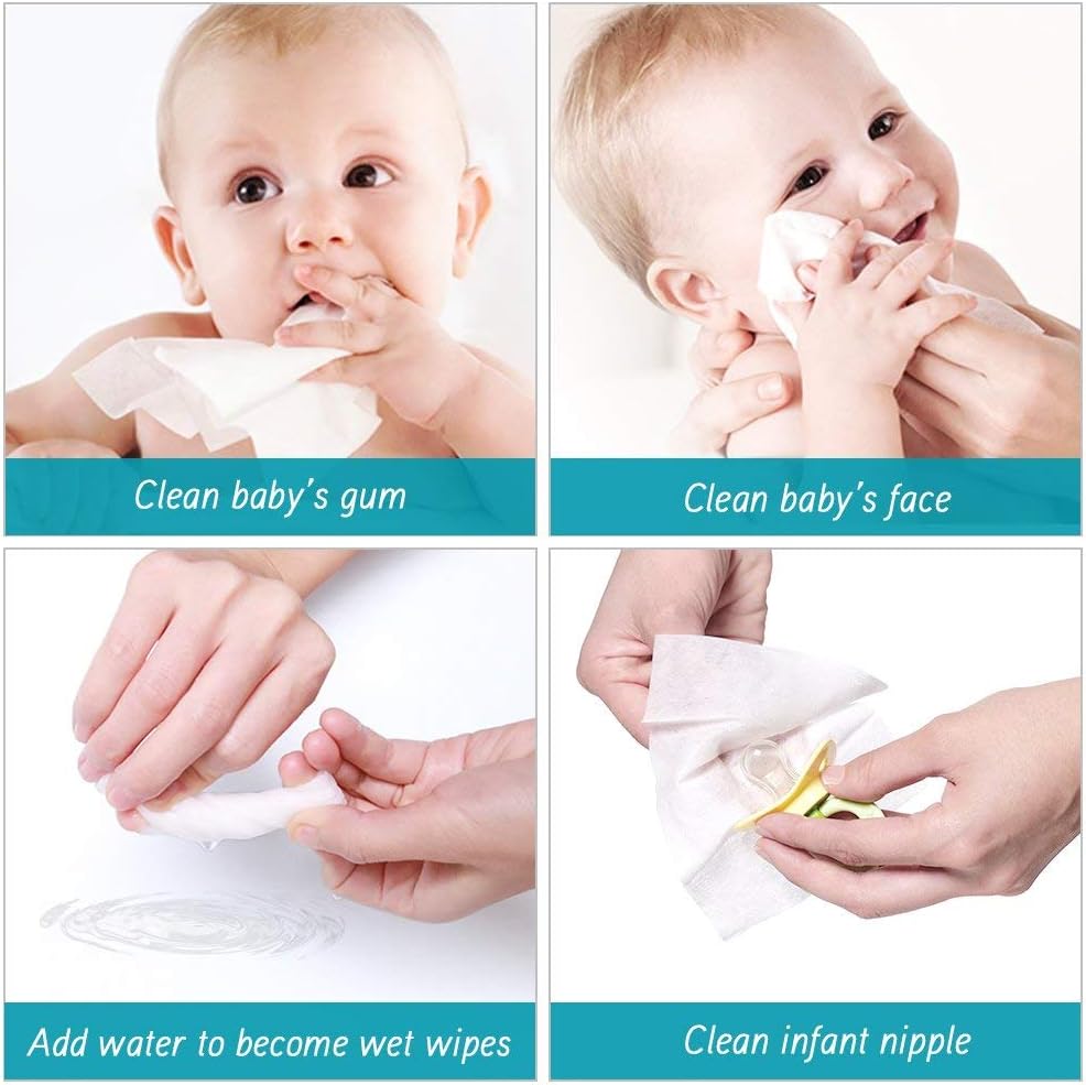 - Dry and Wet Use Wipes: Uniquely versatile, these wipes act as both an absorbent small towel and a convenient wrap. They can be soaked in water to create handmade wet wipes, avoiding the harsh chemicals found in regular wet wipes. The wipes won't tear after soaking and leave no broken tissue residue. With the ability to be used dry or wet, one piece of our cotton tissue is equivalent to the function of three traditional paper tissues, offering softness and strength.