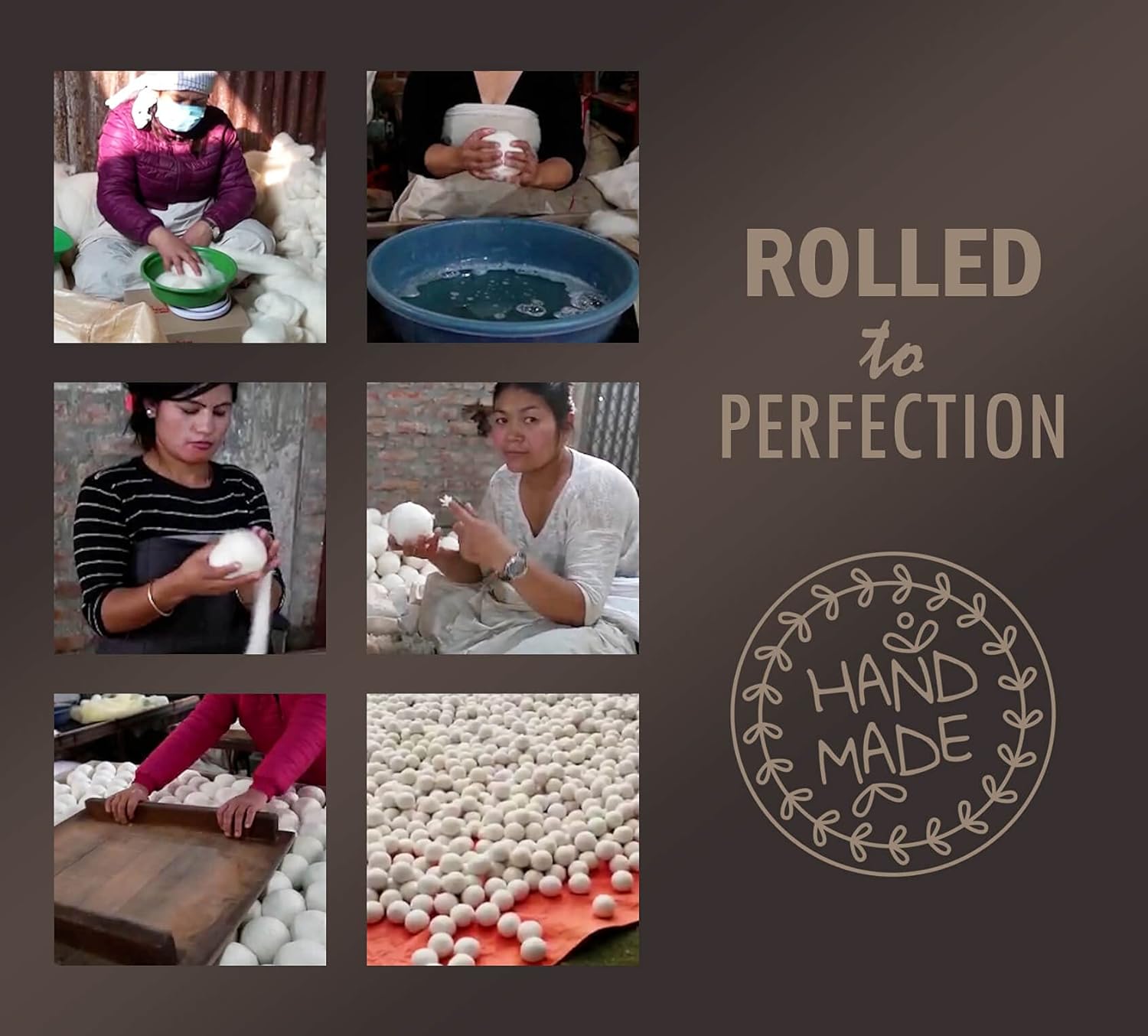 Wool Dryer Balls - Natural Fabric Softener, Reusable, Reduces Clothing Wrinkles and Saves Drying Time. The Large Dryer Ball is a Better Alternative to Plastic Balls and Liquid Softener. (Pack of 6)