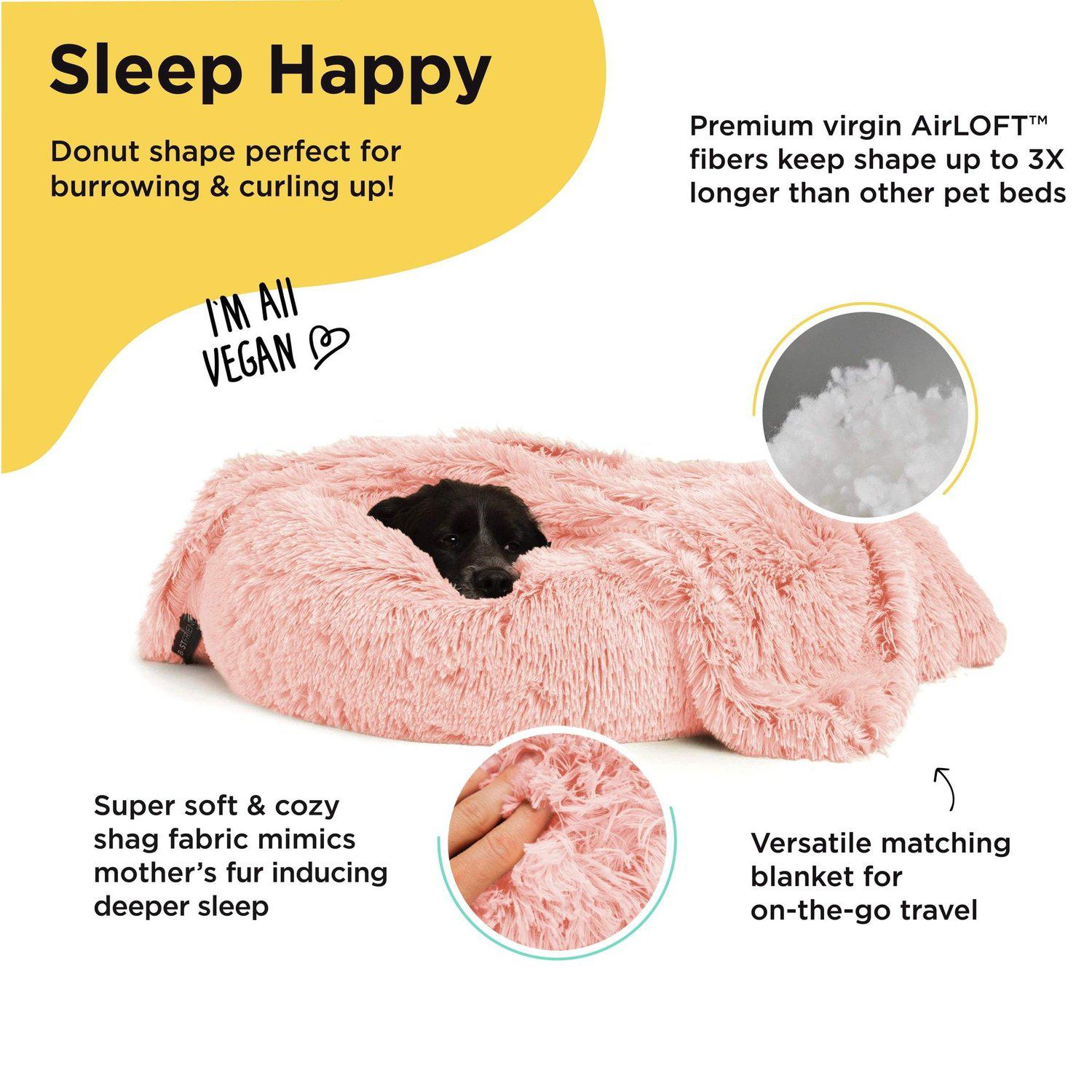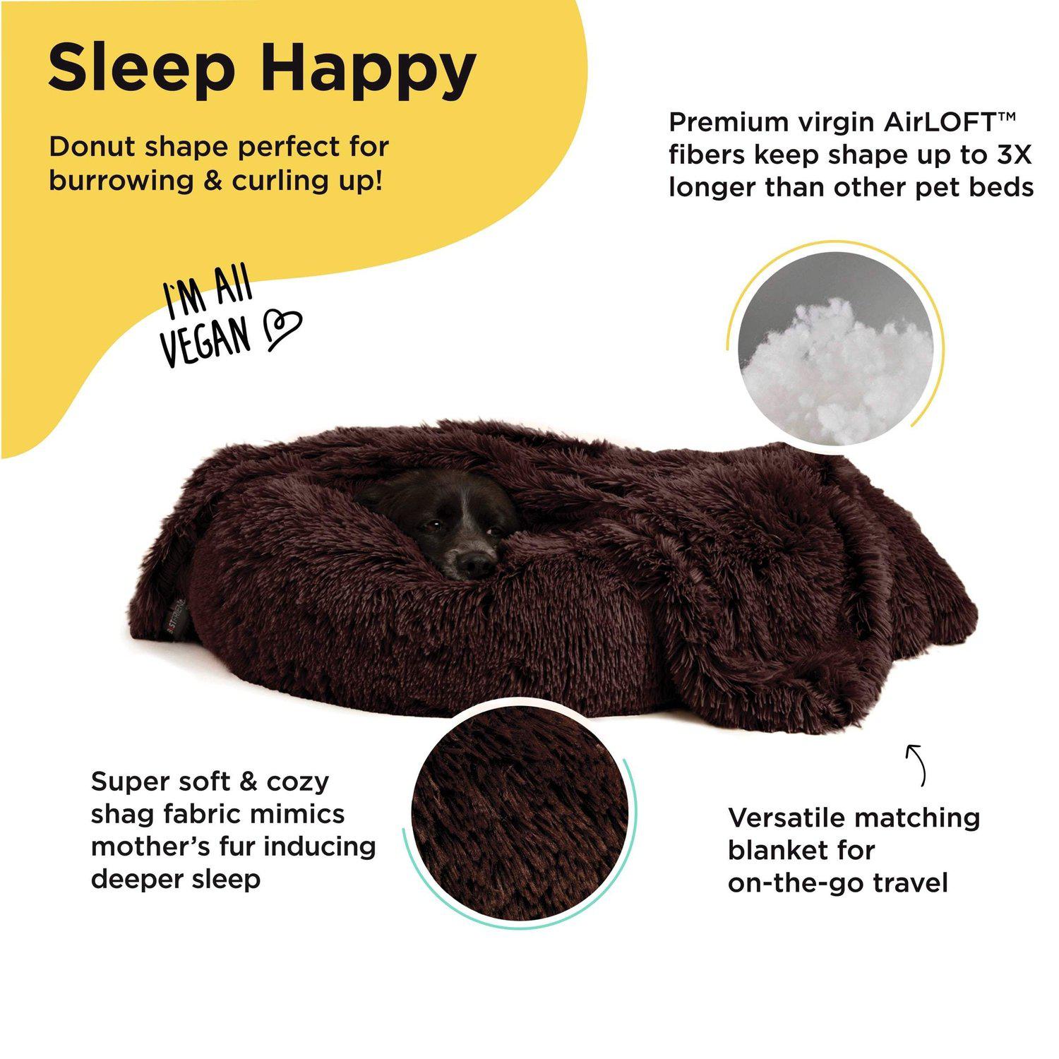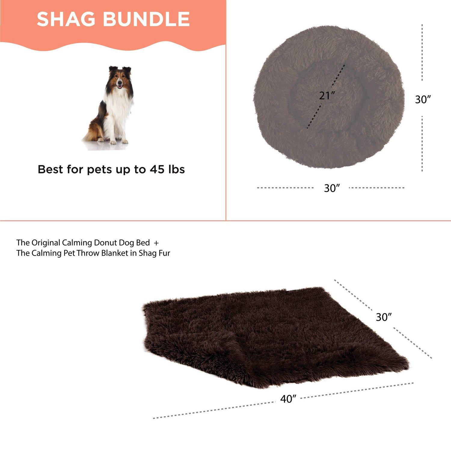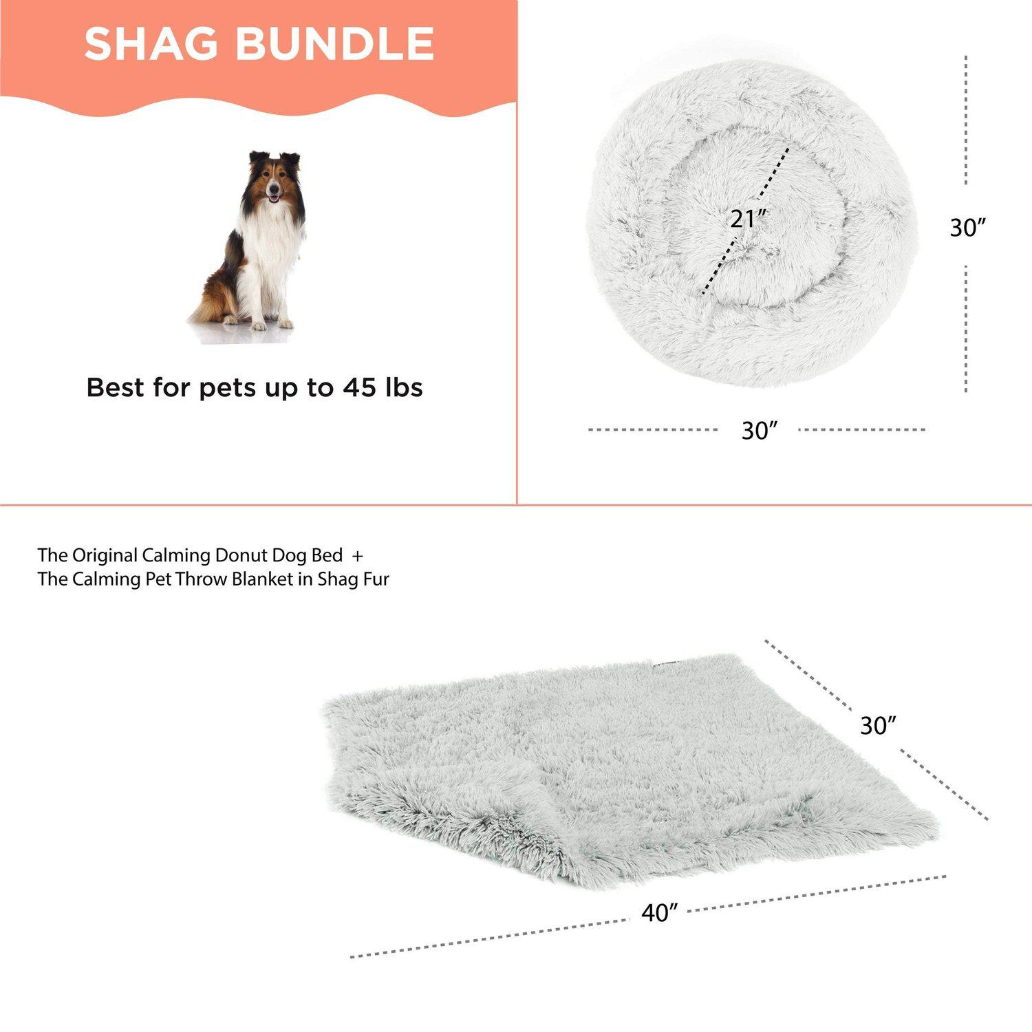 BUNDLE SAVINGS - You’ll love the bargain; your pets will love the bundle. Introducing an all-time favorite, The Original Calming Shag Donut Cuddler bed is now offered as a bundle with a matching pet blanket!