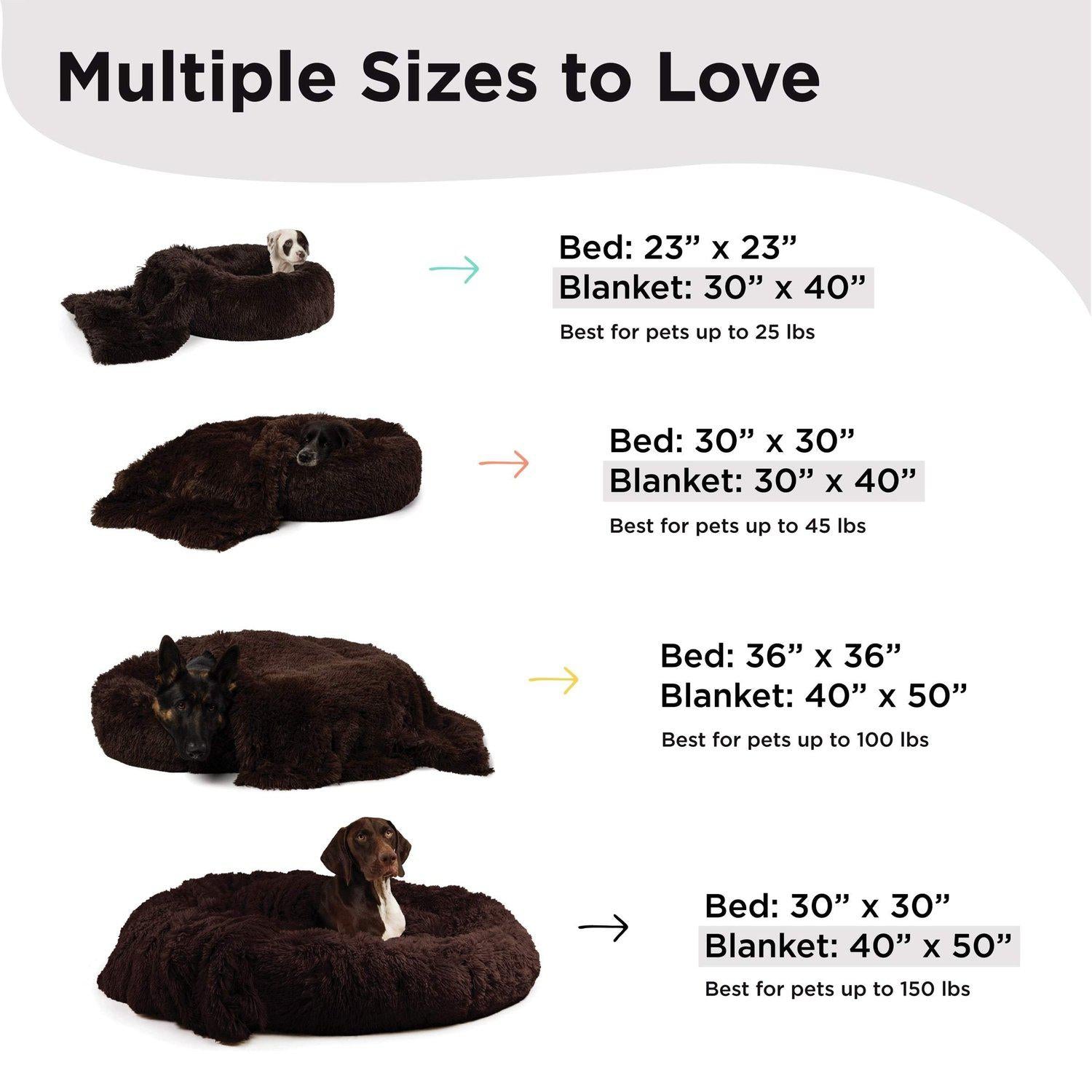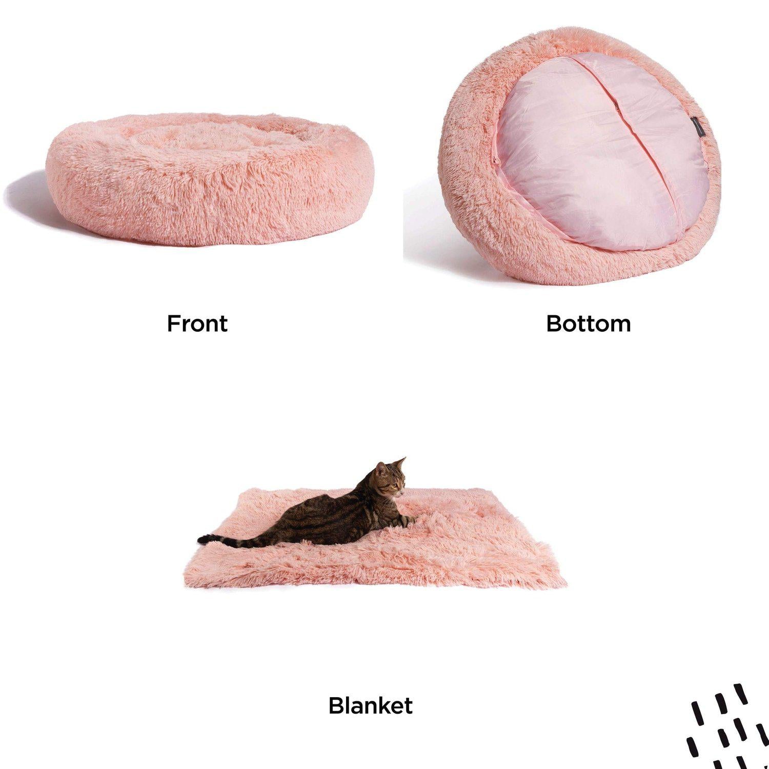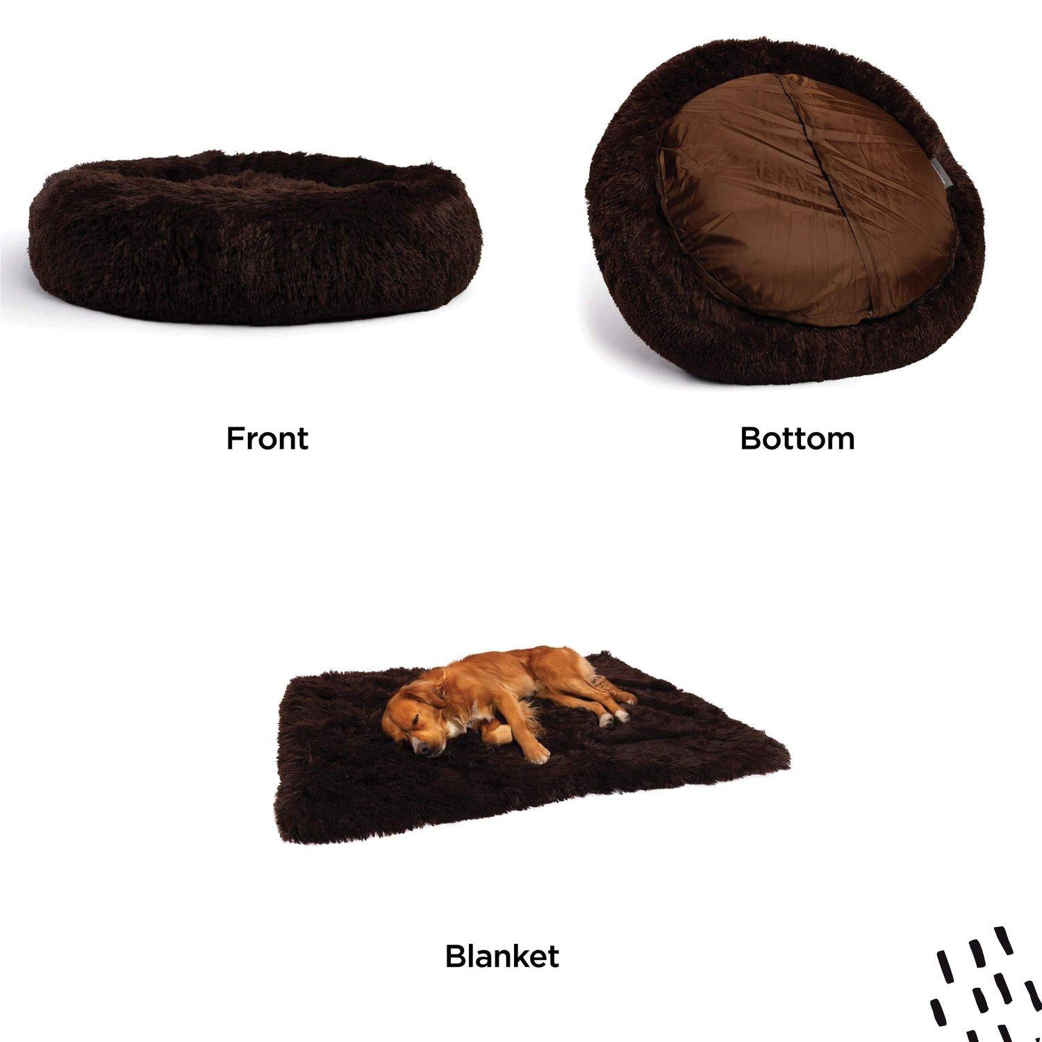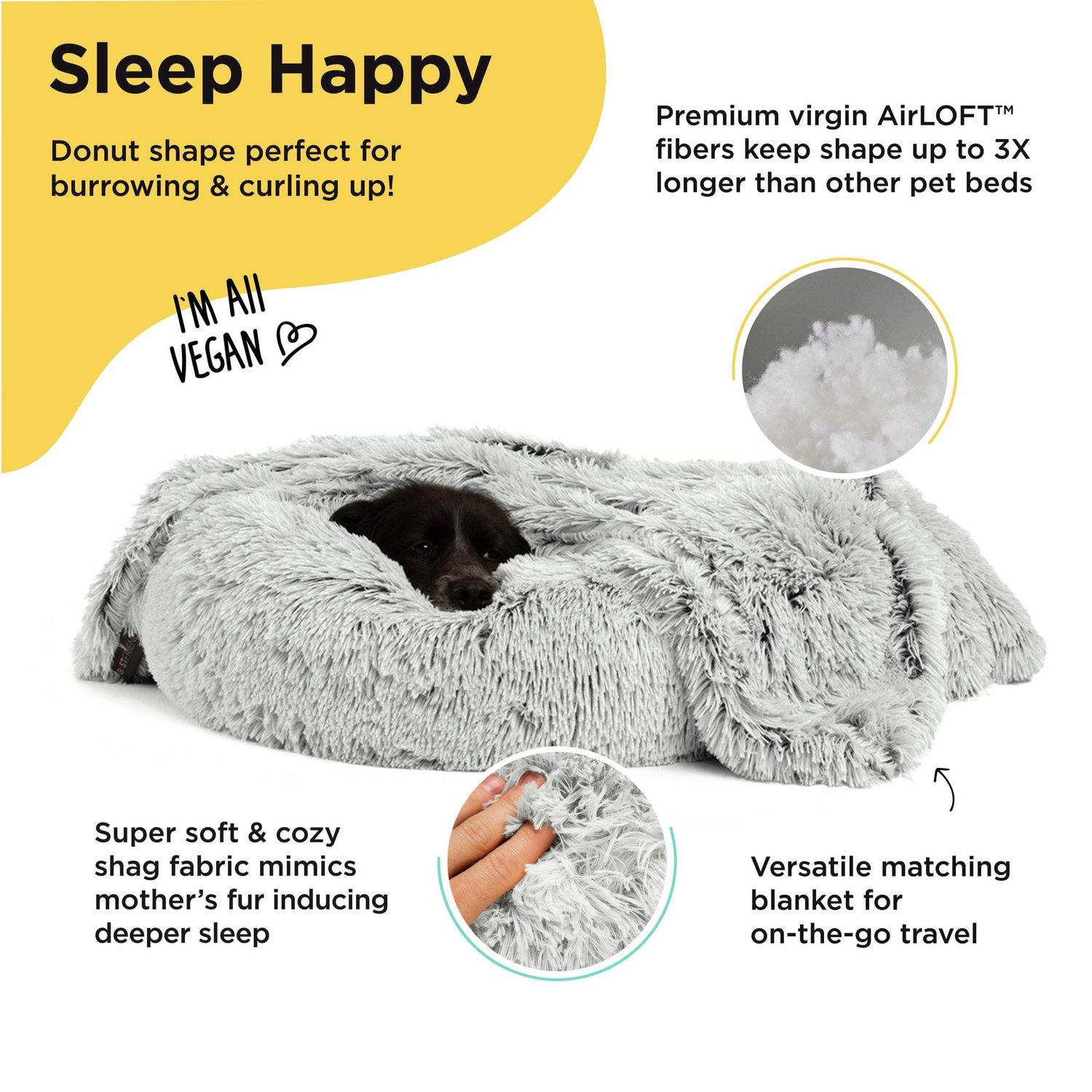 BUNDLE SAVINGS - You’ll love the bargain; your pets will love the bundle. Introducing an all-time favorite, The Original Calming Shag Donut Cuddler bed is now offered as a bundle with a matching pet blanket!