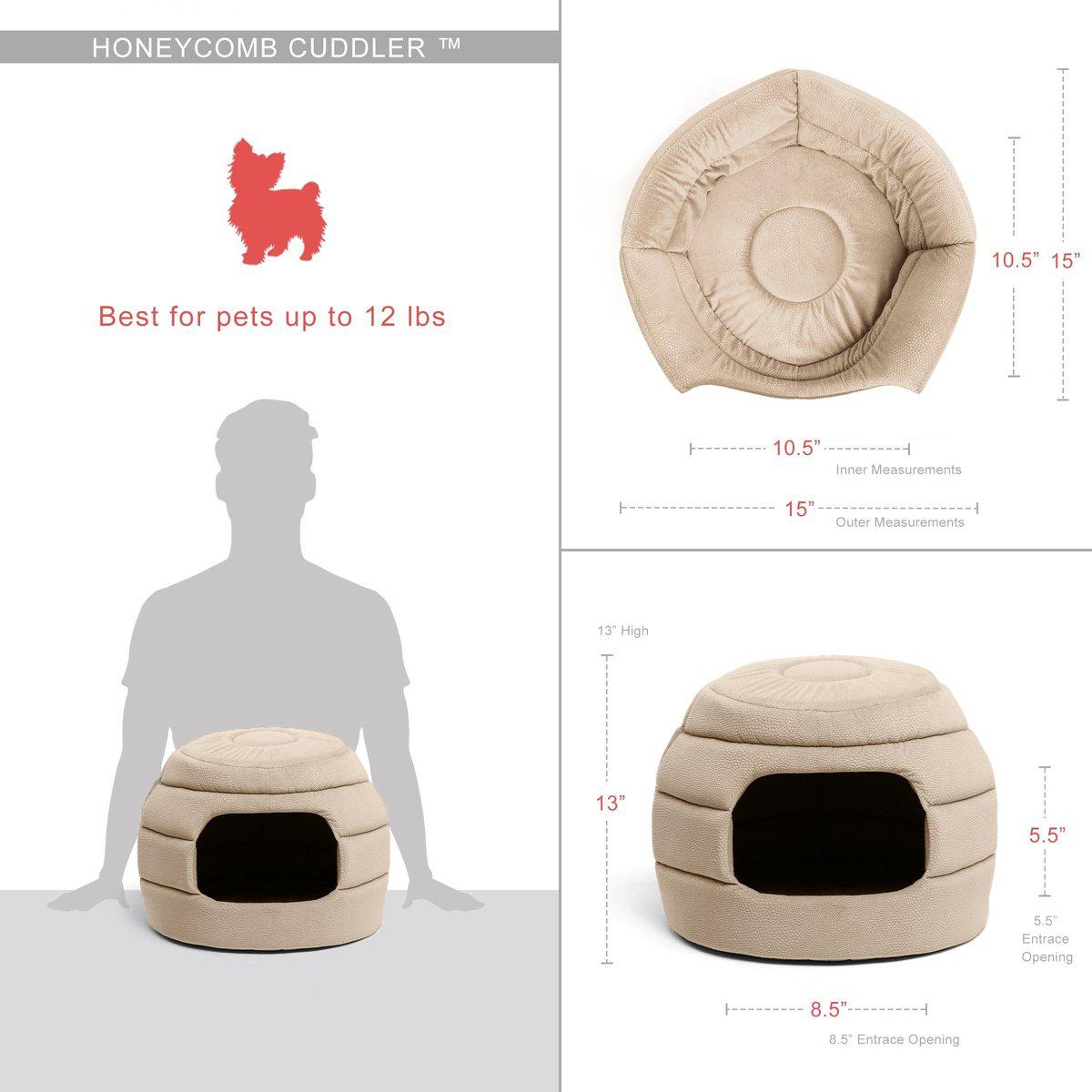 Whether your furry friend is feeling reserved or social, the innovative Best Friends by Sheri 2-in-1 Honeycomb Hut-Cuddler can meet his/her preferences. It is a pet hut that can be transformed into a Cuddler in seconds! In its hut form your furry friend can find privacy and warmth, and while in its Cuddler form, he/she can get the benefit of a comfortable place to relax while still being able to socialize and stay cool.