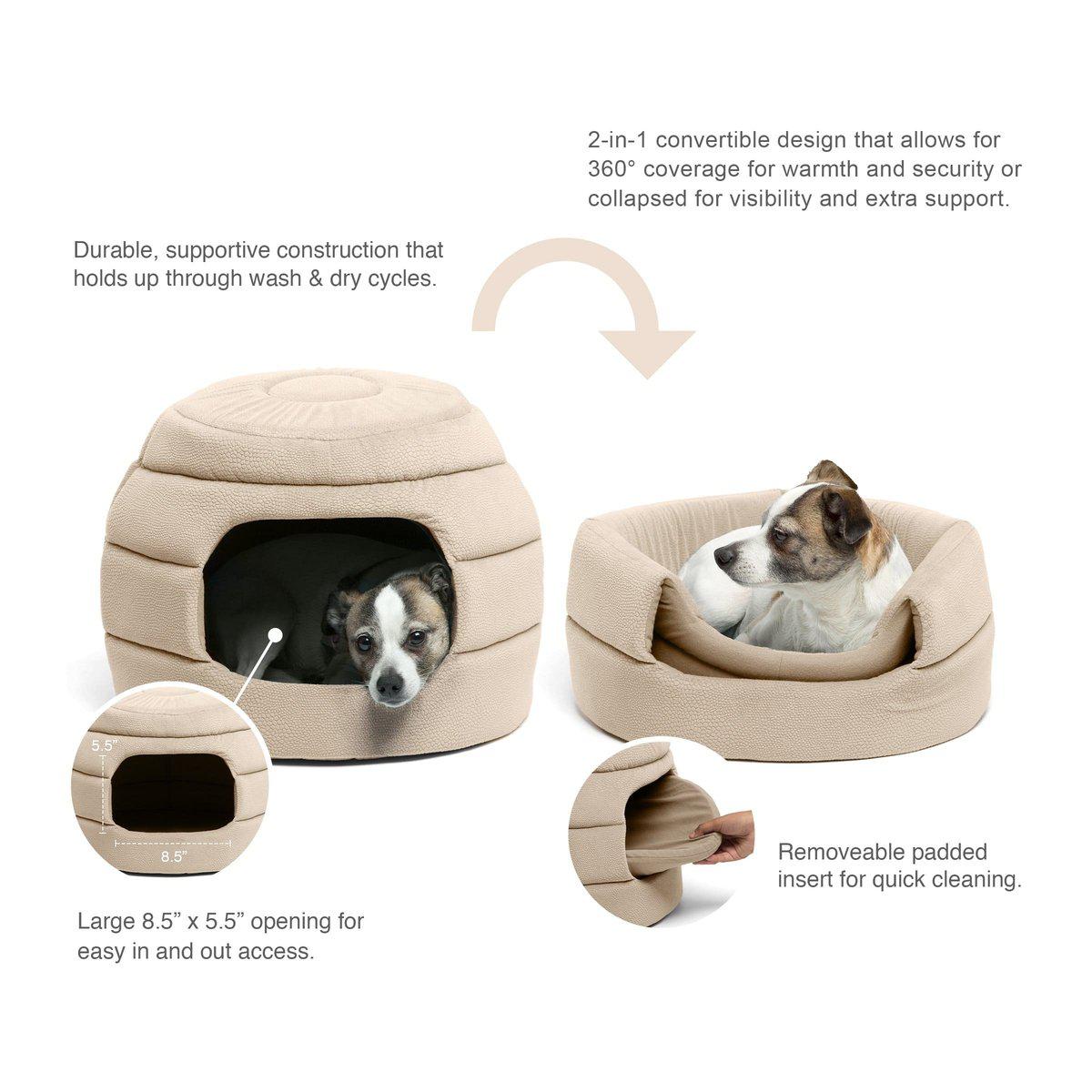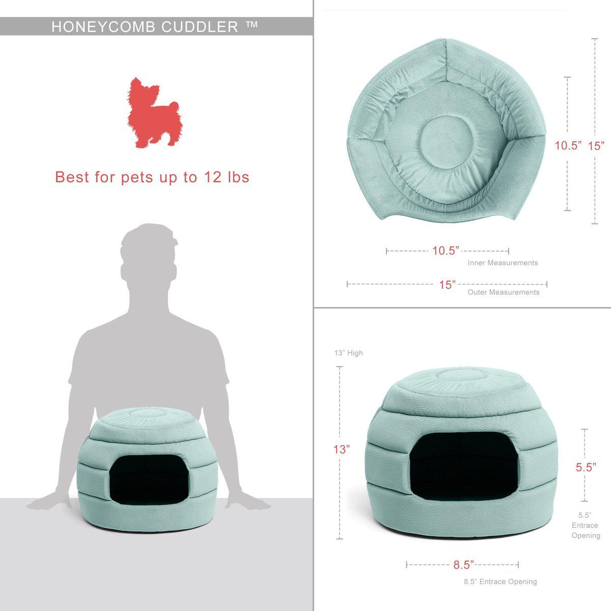 Whether your furry friend is feeling reserved or social, the innovative Best Friends by Sheri 2-in-1 Honeycomb Hut-Cuddler can meet his/her preferences. It is a pet hut that can be transformed into a Cuddler in seconds! In its hut form your furry friend can find privacy and warmth, and while in its Cuddler form, he/she can get the benefit of a comfortable place to relax while still being able to socialize and stay cool.