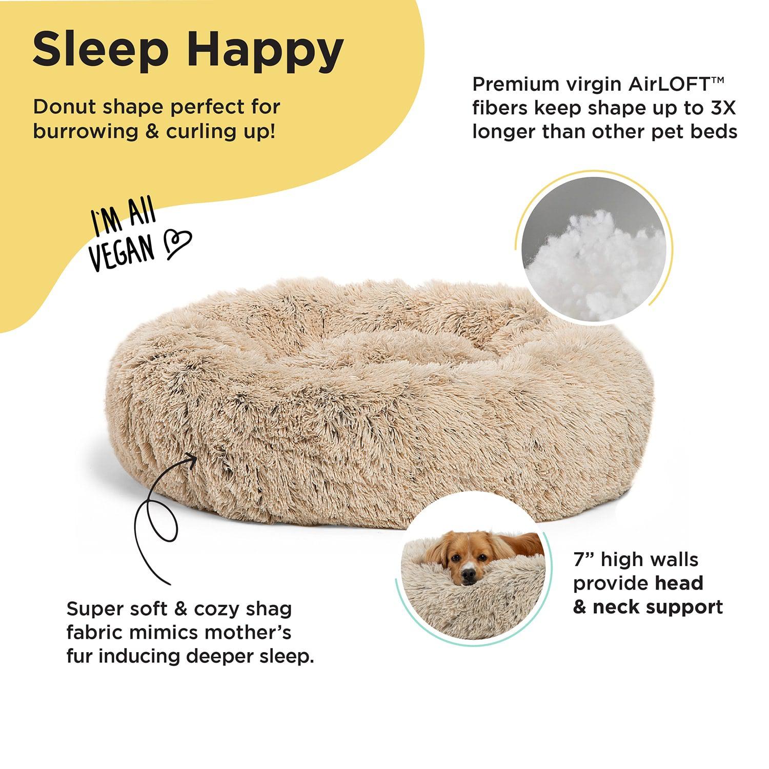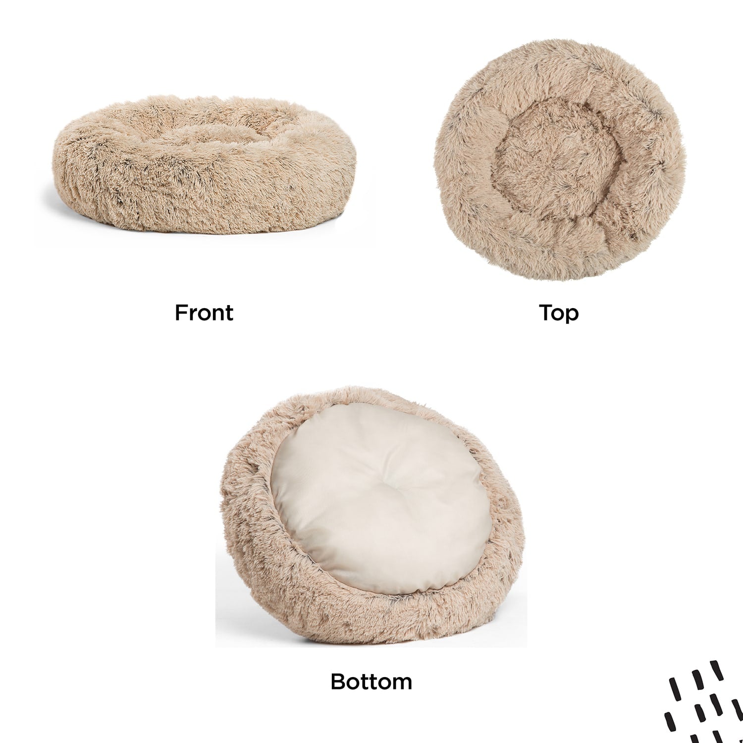 SUPPORTS BETTER SLEEP: Thanks to its round shape, our high-quality Donut Cuddler dog and cat bed is ideal for pets who love to curl up! The raised rim of this fluffy dog bed creates a sense of security and provides head and neck support, while the super-soft filling offers joint and muscle pain relief.
