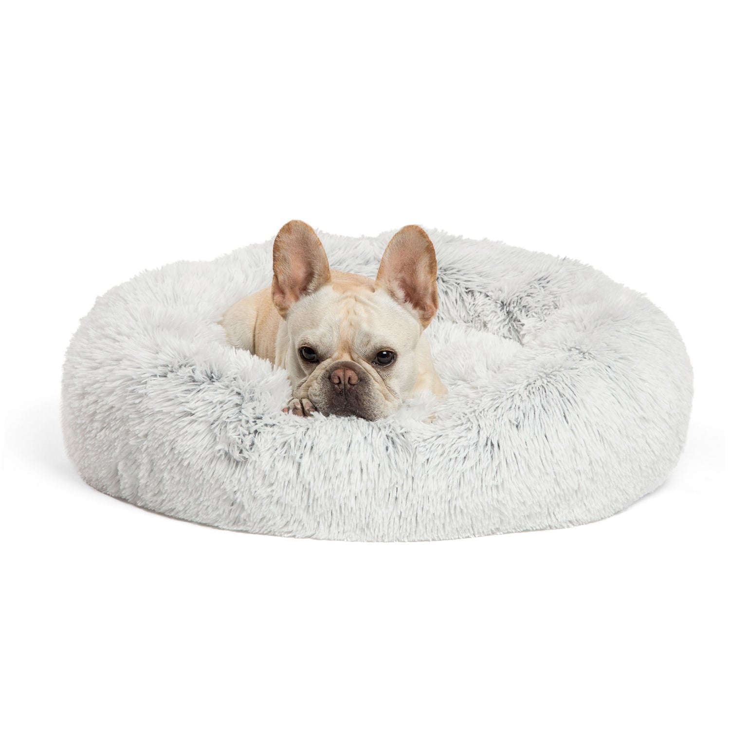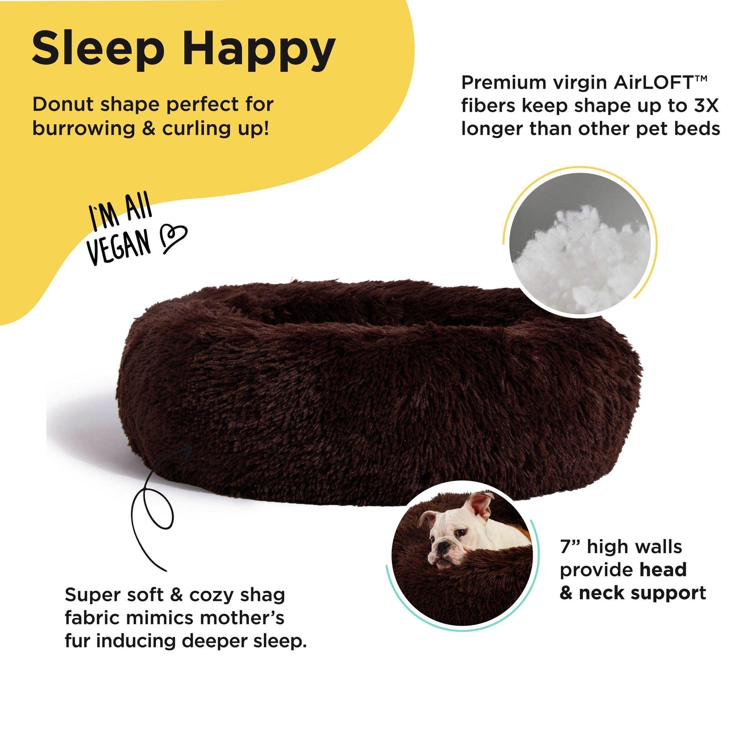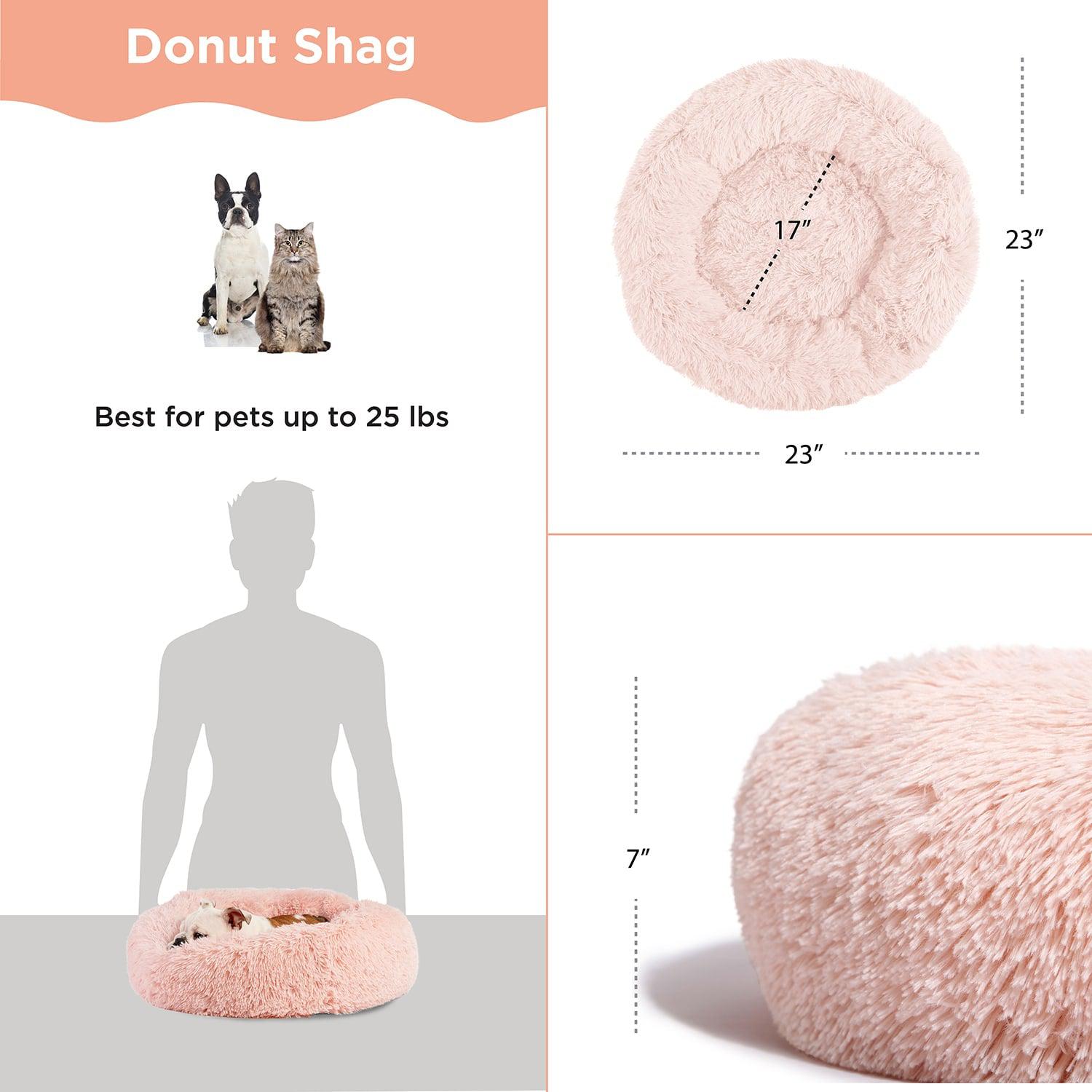 SUPPORTS BETTER SLEEP: Thanks to its round shape, our high-quality Donut Cuddler dog and cat bed is ideal for pets who love to curl up! The raised rim of this fluffy dog bed creates a sense of security and provides head and neck support, while the super-soft filling offers joint and muscle pain relief.