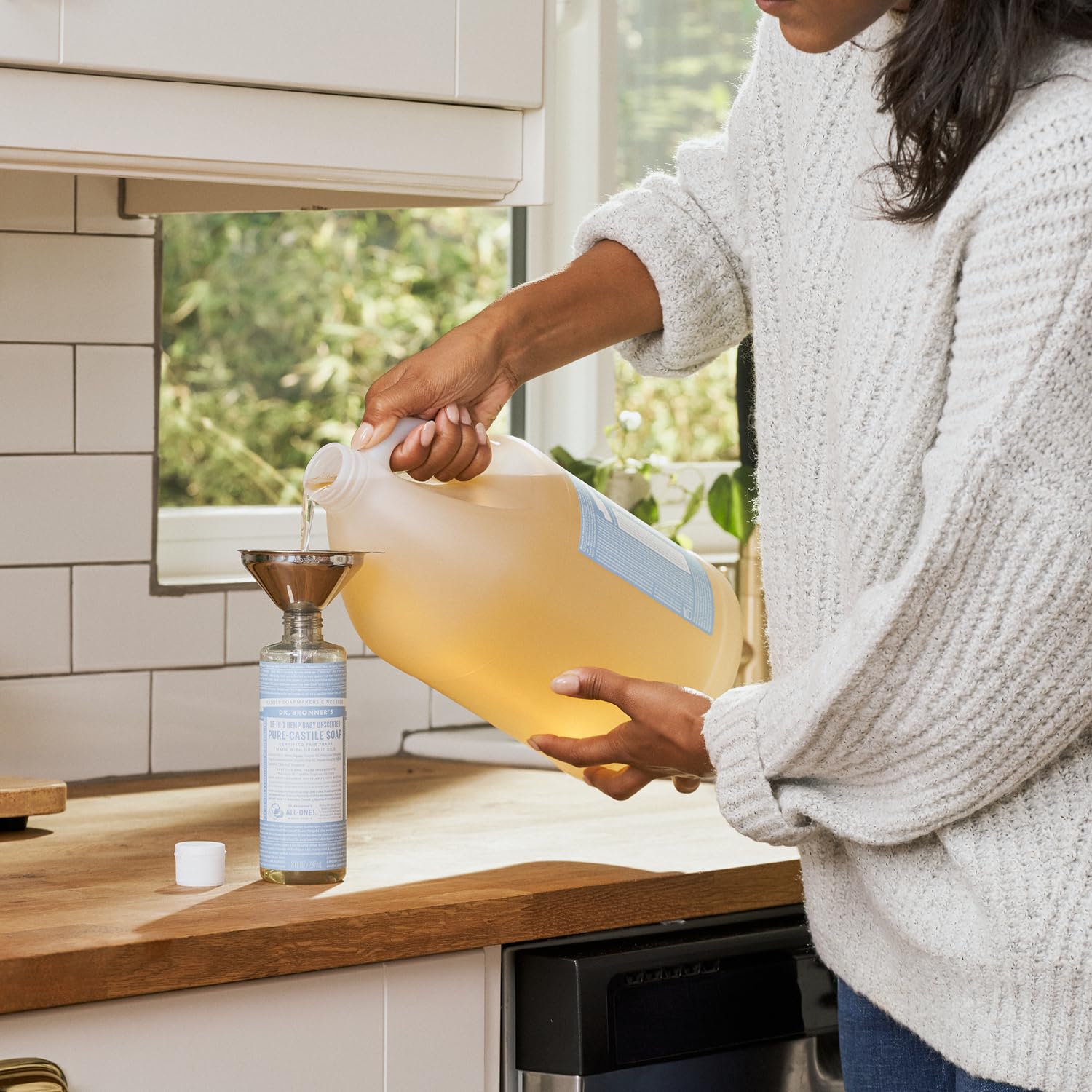 With no added fragrance and double the olive oil, our Baby Unscented Pure-Castile Liquid Soap is good for sensitive skin & babies too (though not tear-free!). Dr. Bronner's soap is concentrated, biodegradable, versatile and effective. With 18-in-1 uses, these soaps are perfect for your face, body, and hair, but can also be used for rinsing food, cleaning dishes, mopping, and doing laundry. With no synthetic preservatives, detergents, or foaming agents, they are even safe enough for your pets! Our Pure-Castile soaps are never tested on animals and completely cruelty-free. Made with organic and certified fair trade ingredients, packaged in a 100% post-consumer recycled bottle. All-One!