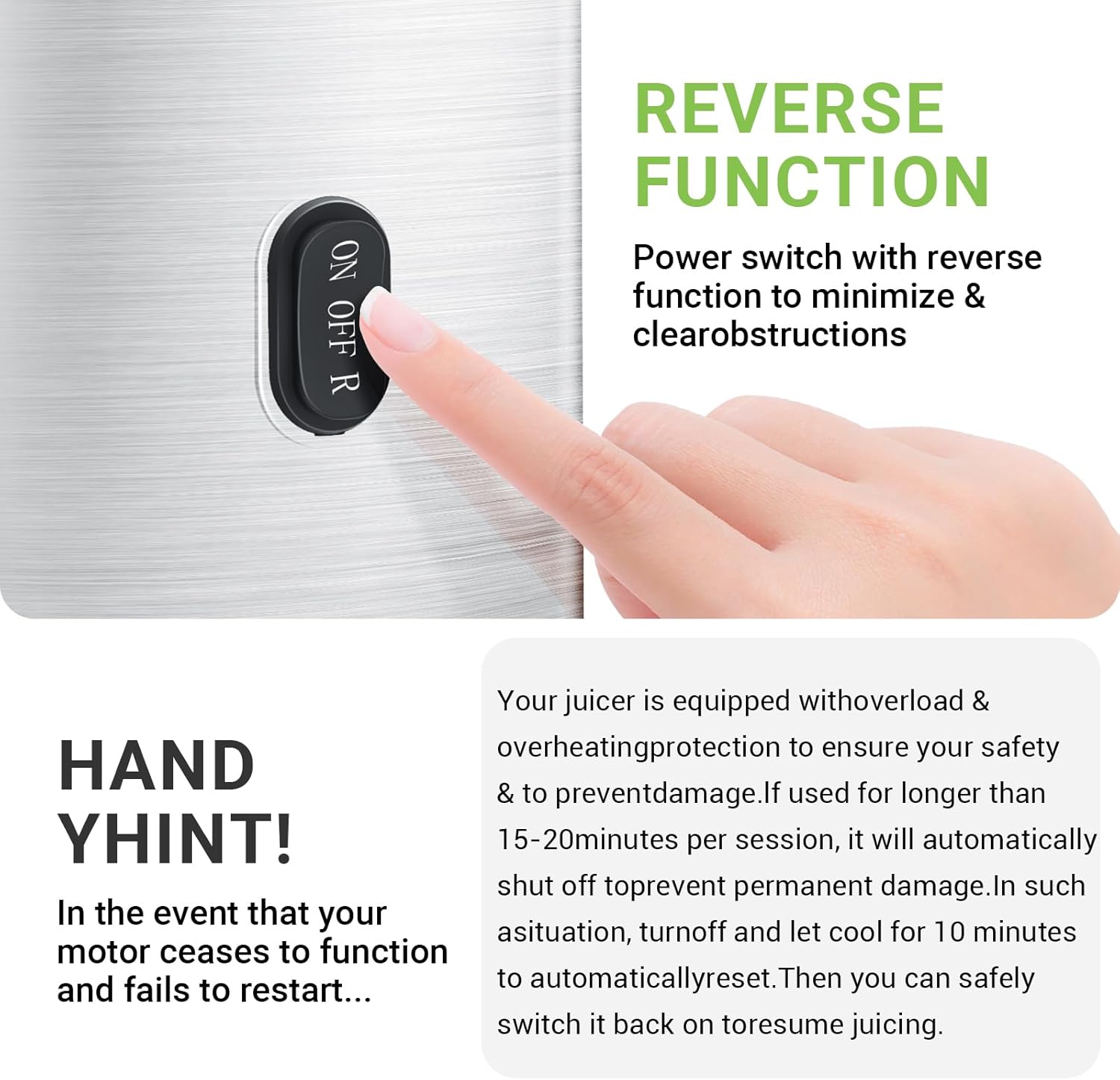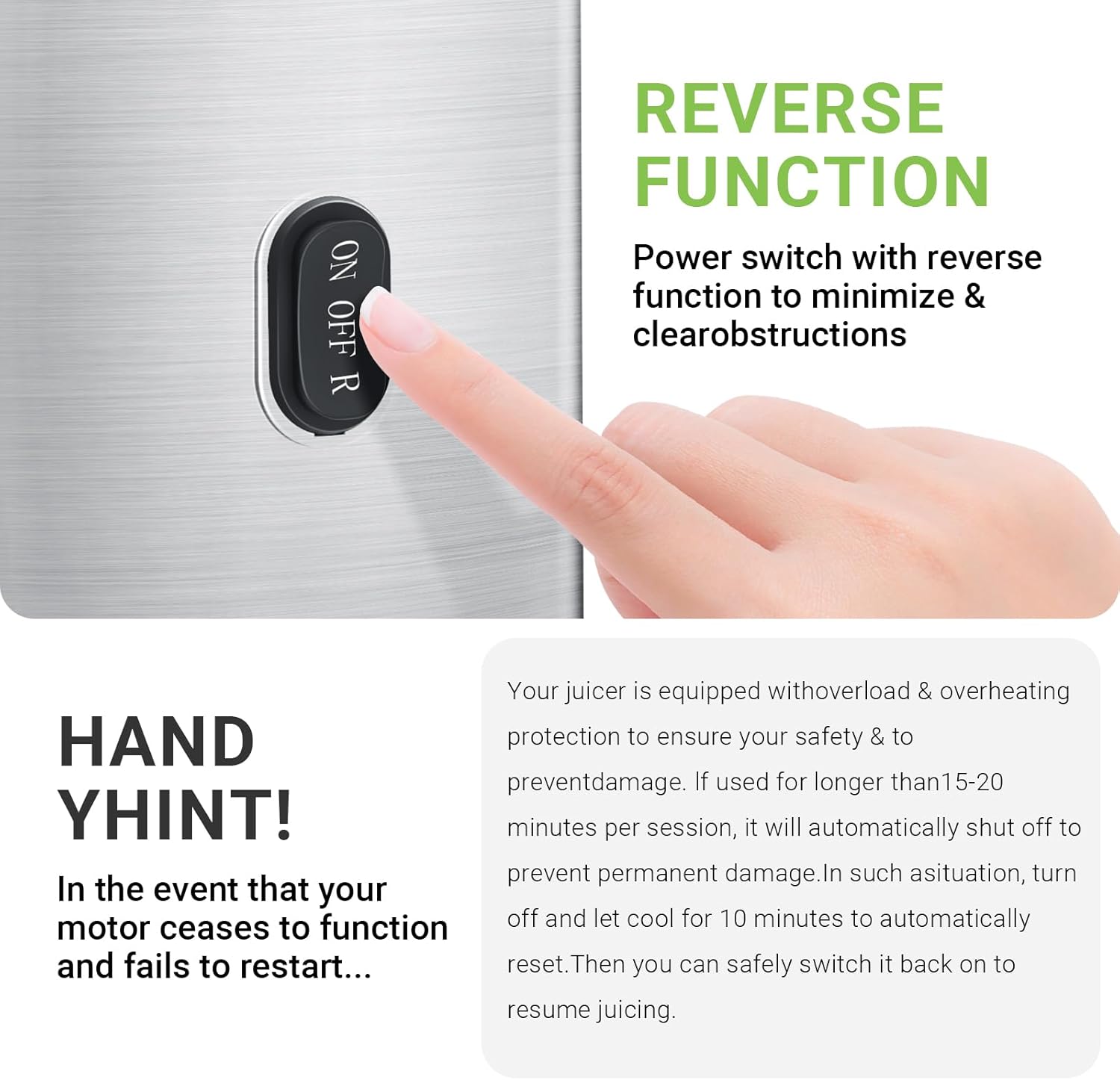 - [Precision-Crafted for Quality]: Built with a durable stainless steel shell, our electric juicer is designed for longevity and ease of cleaning. The strategically placed side ventilation openings help prevent overheating, enhancing durability. Every detail is crafted with precision to deliver a product that reflects our commitment to quality and customer care.