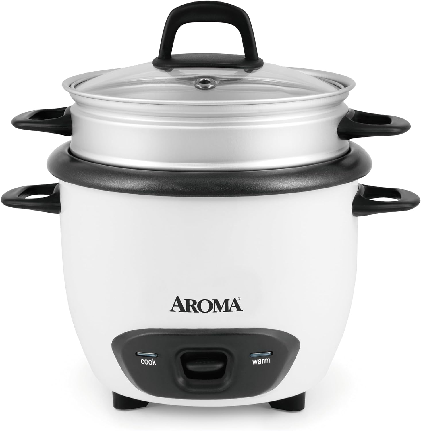 • Aroma Housewares 6-Cup (Cooked) (3-Cup Uncooked) Pot Style Rice Cooker and Food Steamer (ARC-743-1NG), White