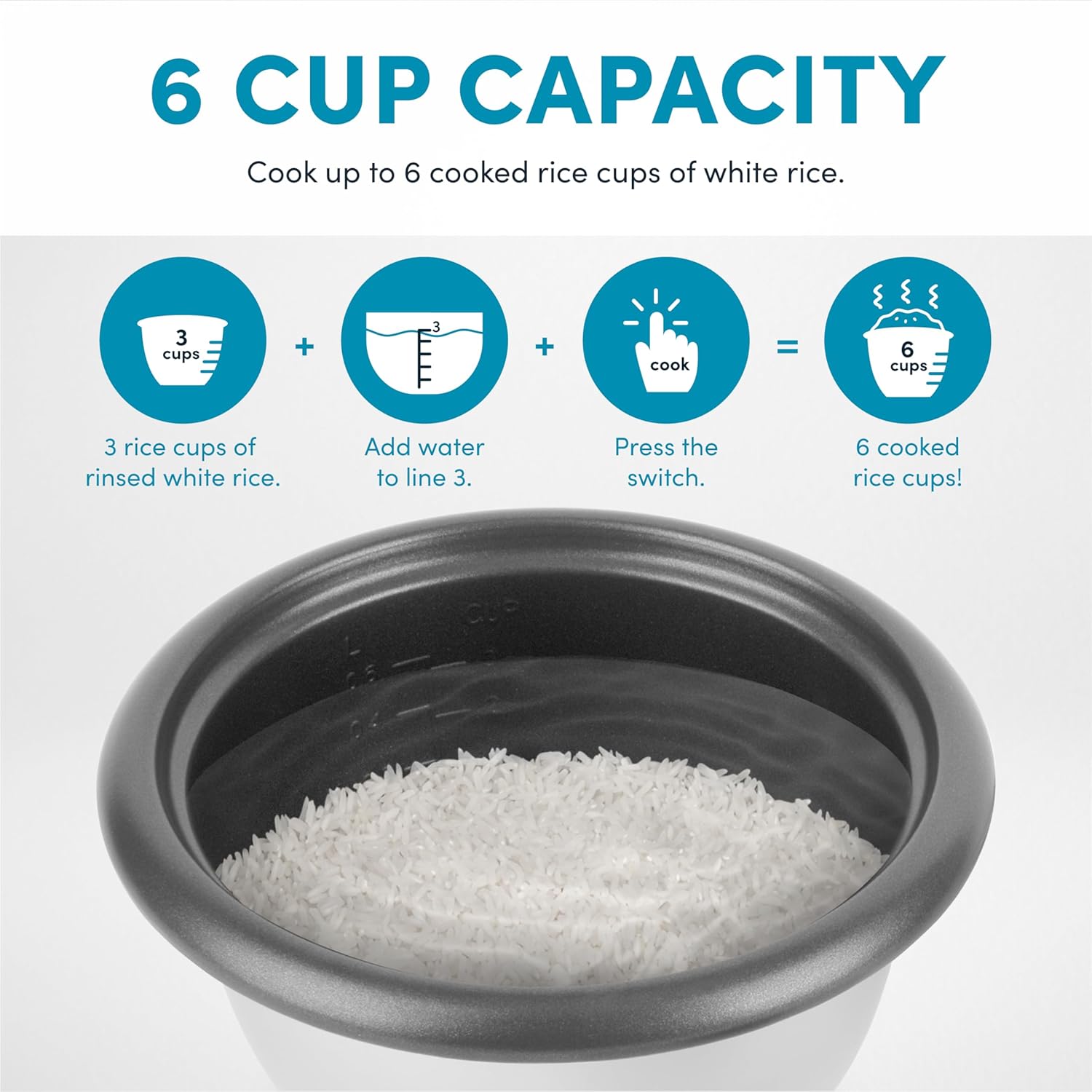 • Perfectly prepares 2 to 6 cups of any variety of cooked rice