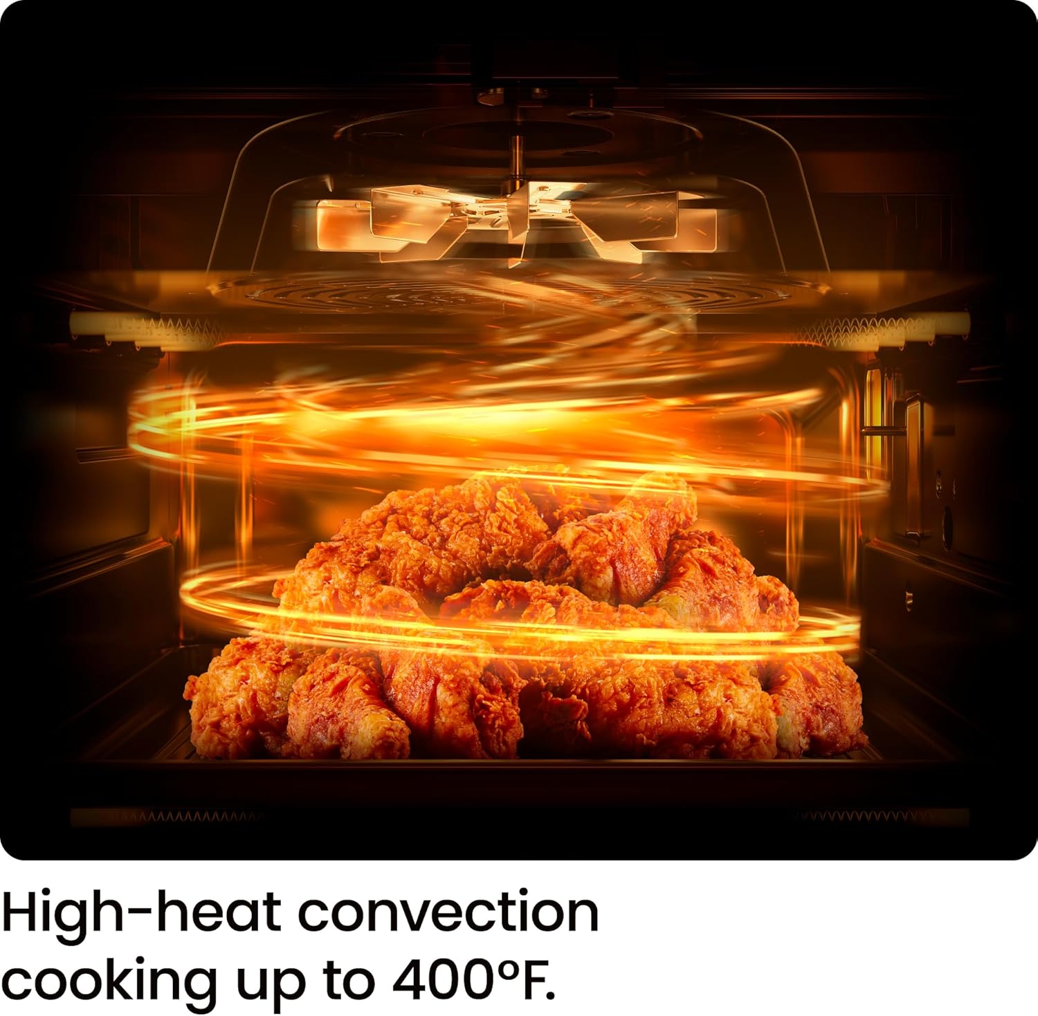• FAST AND EASY: This small air fryer comes prepared for any culinary challenge. The capacitive touch screen display can customize your cooking time and temperature up to a maximum of 400°F! Cook food fast up to three times quicker than an oven.