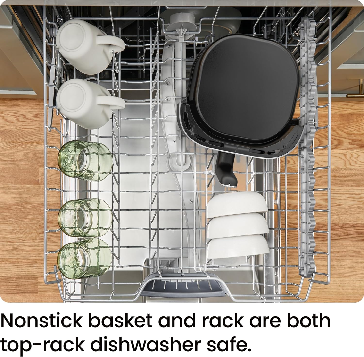 • SIMPLE CLEAN-UP: The nonstick 2-quart basket and rack are both dishwasher safe to keep clean-up fast and simple.