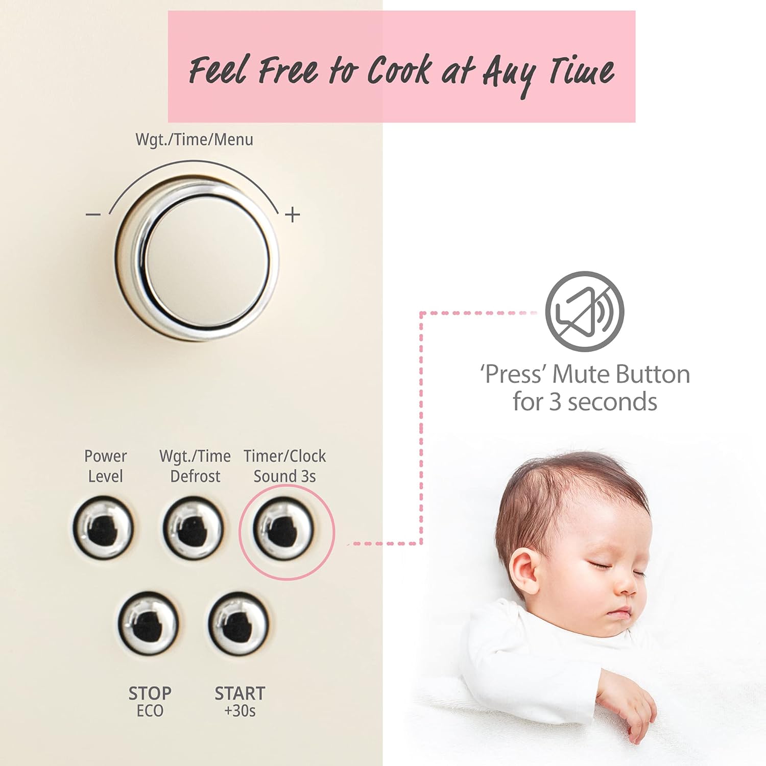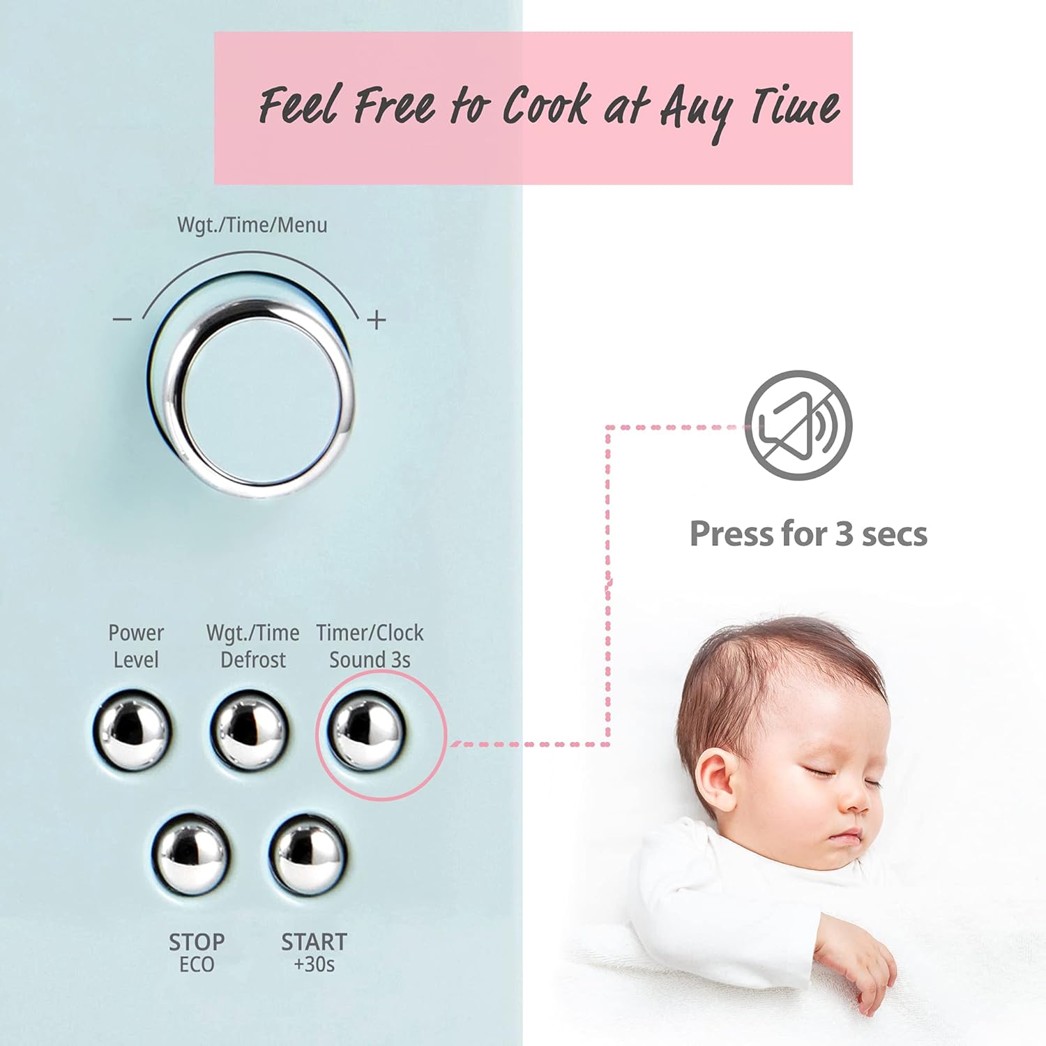 This microwave has many user-friendly features. Turn off all the microwave beeps by pressing the sound on/off button. Child safety lock keeps the microwave away from curious hands. To prevent children or others from using the microwave, use the lock function.