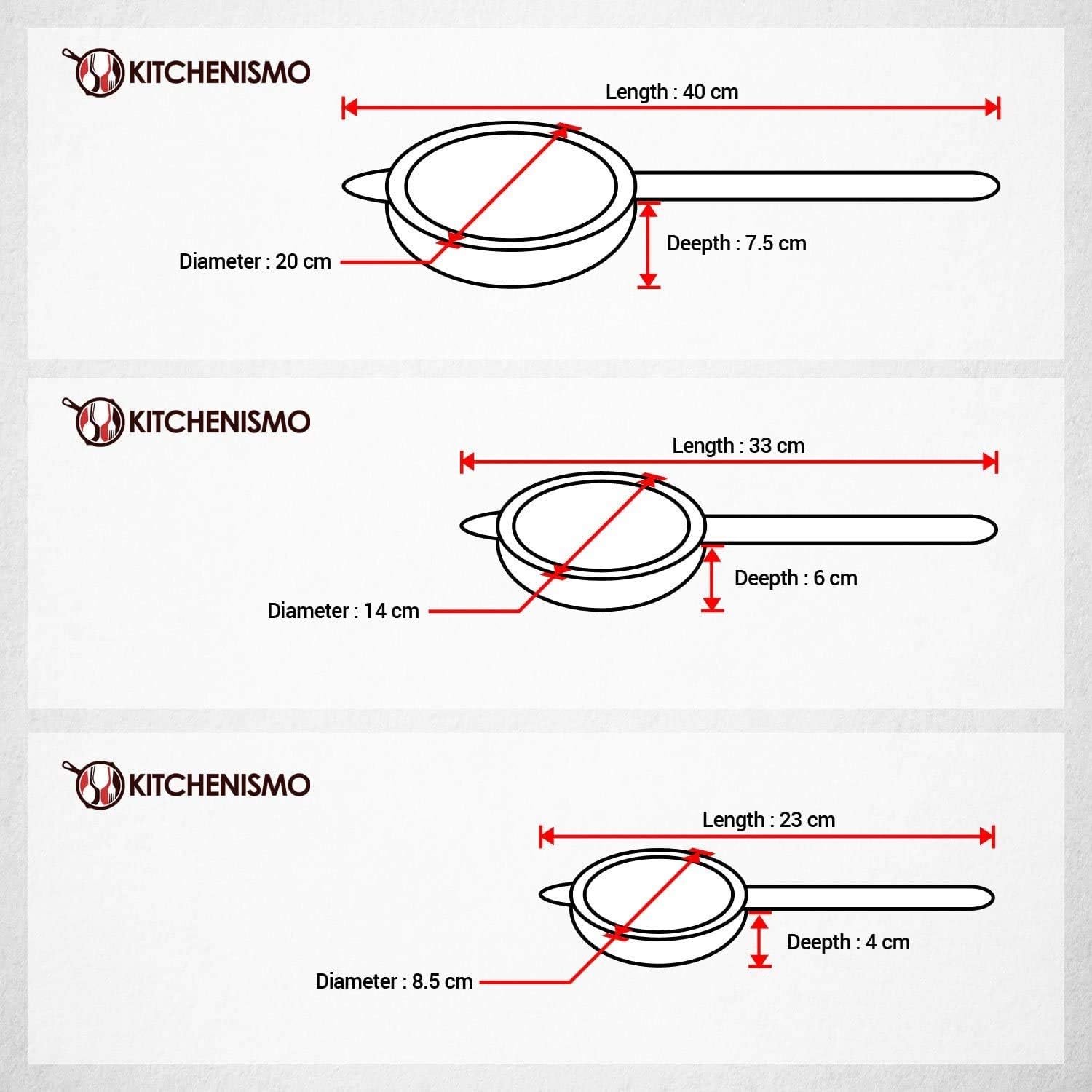 - INCLUDED: The Cuisinart set of strainers comes in 3 sizes from 3-⅛-inch, 5-½-inch and 7-⅞-inch sizes