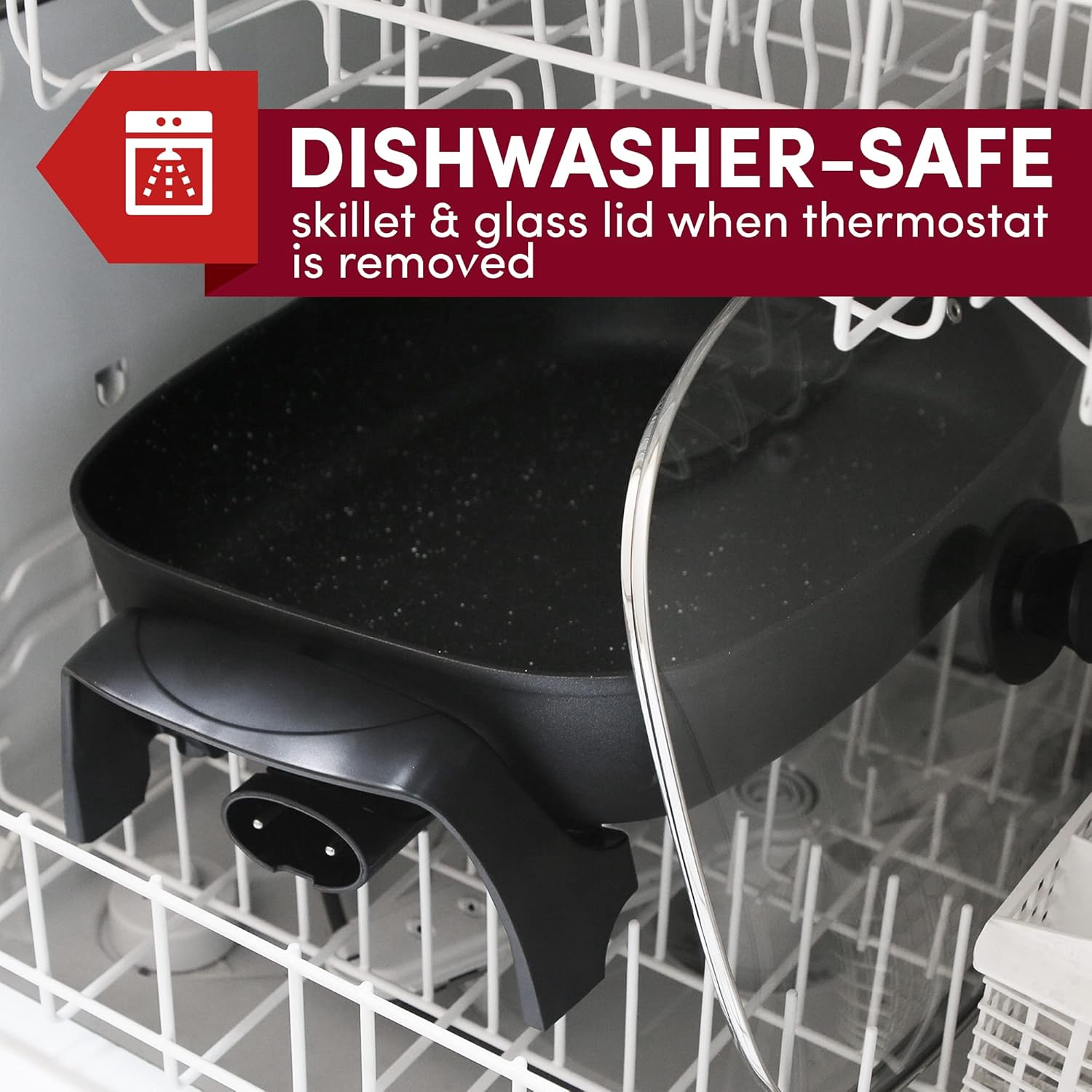 • SAFETY TESTED ETL listed 1500 watt/120V electric skillet is ideal for home kitchen use; 3.15" splatter-proof walls and cool-touch knob and handles make this an essential and thoughtful housewarming or wedding gift