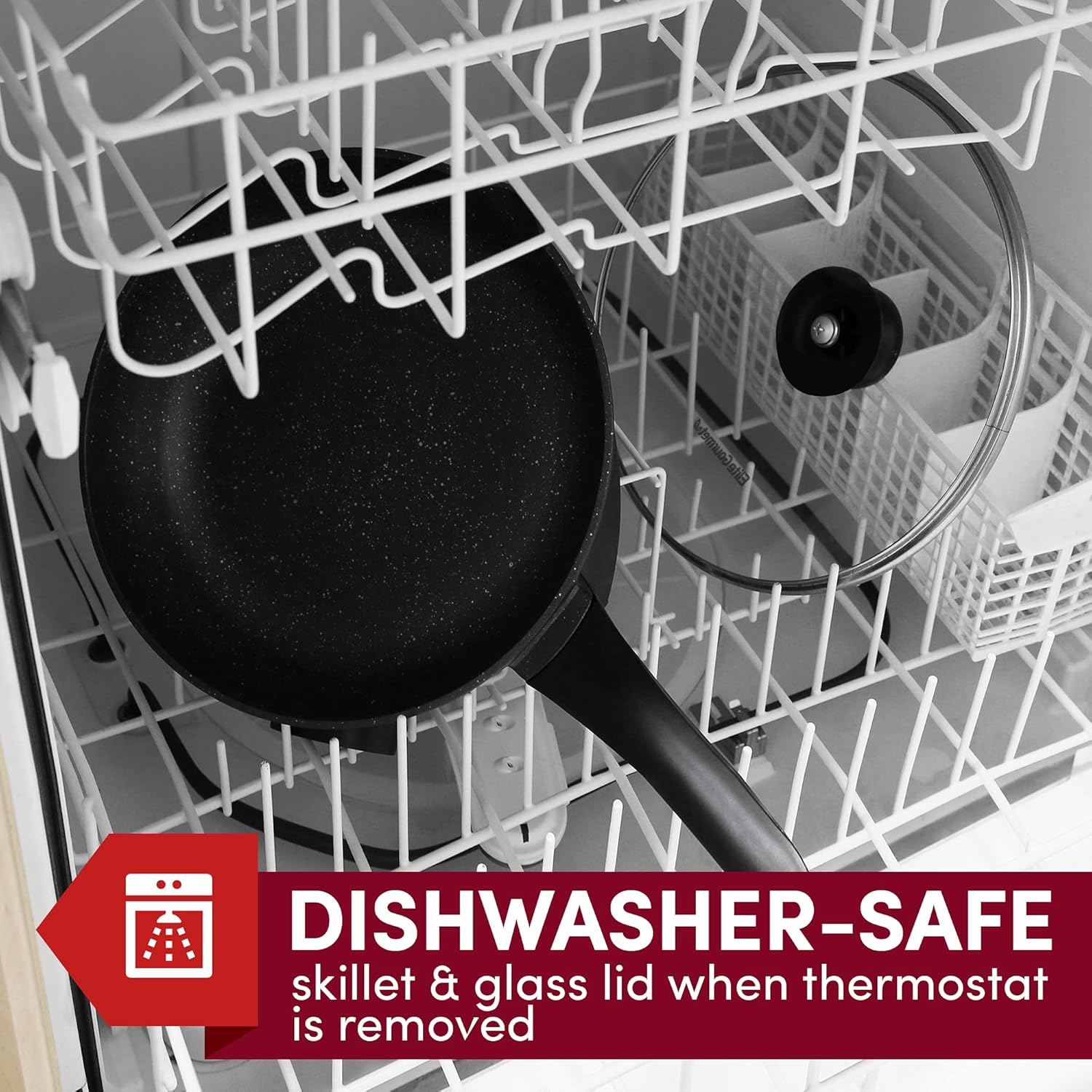 - DISHWASHER SAFE and fully immersible in your sink for fast, easy clean-up upon removal of the temperature control probe. Thick cast aluminum body resists rusting or warping for added resilience.