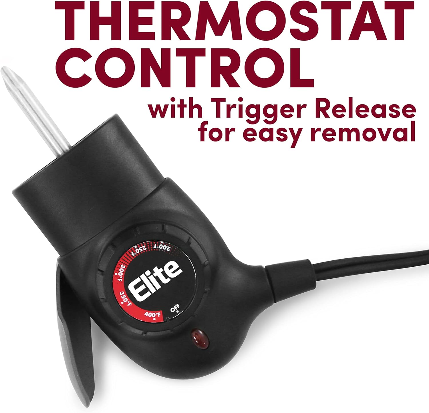 - RAPID + EVEN HEAT from the fully embedded heating element. The Easy-Release control probe can pinpoint precise temperatures of 200-425°F degrees and prevents hot spots and scorched food.