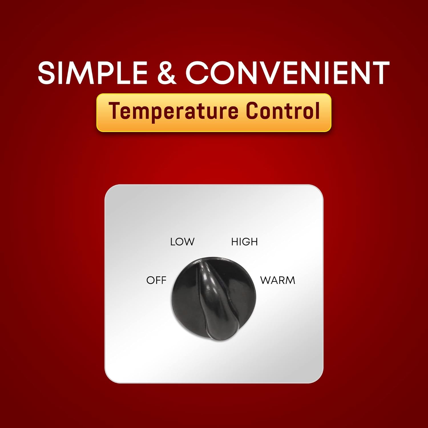 - ADJUSTABLE SETTINGS with versatile Low / High / Keep Warm settings, gives you ultimate control of meal preparation. Simply set it and forget it while you continue on with your busy day, entertain guests or prepare other dishes.